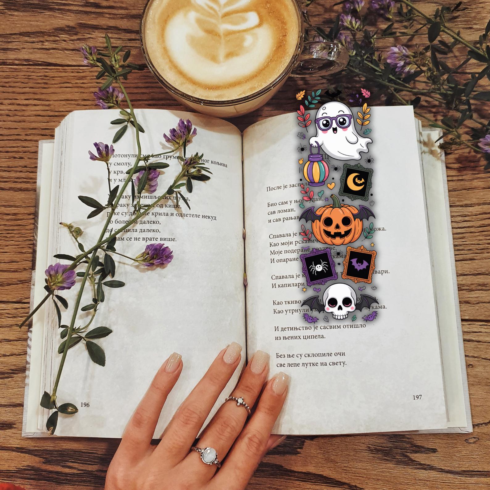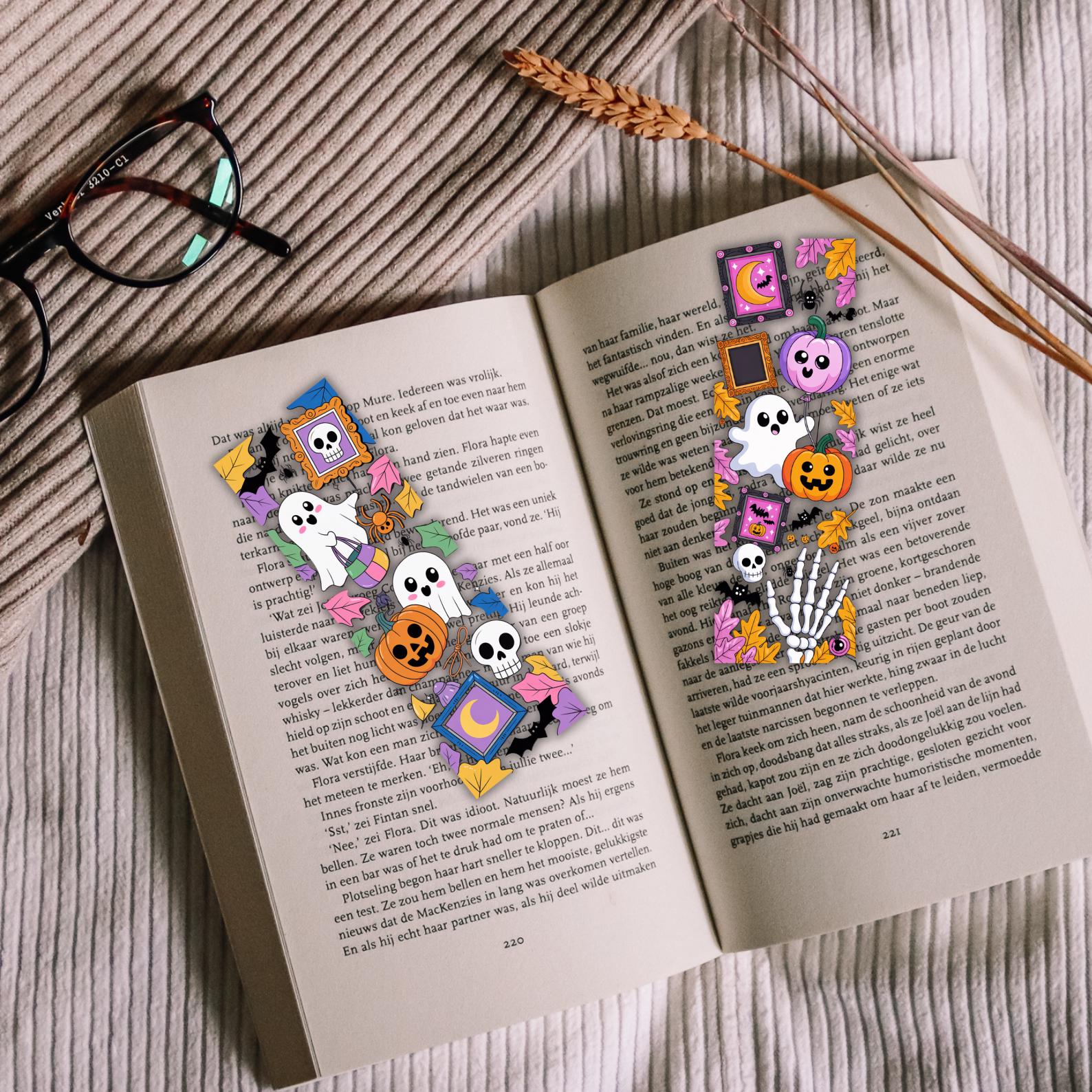 Halloween Bookmark PNG Bundle, Cute Ghost Reading Bookmark, Spooky Fall Printable Bookmark, Book Lover Gift, Halloween PNG for Readers