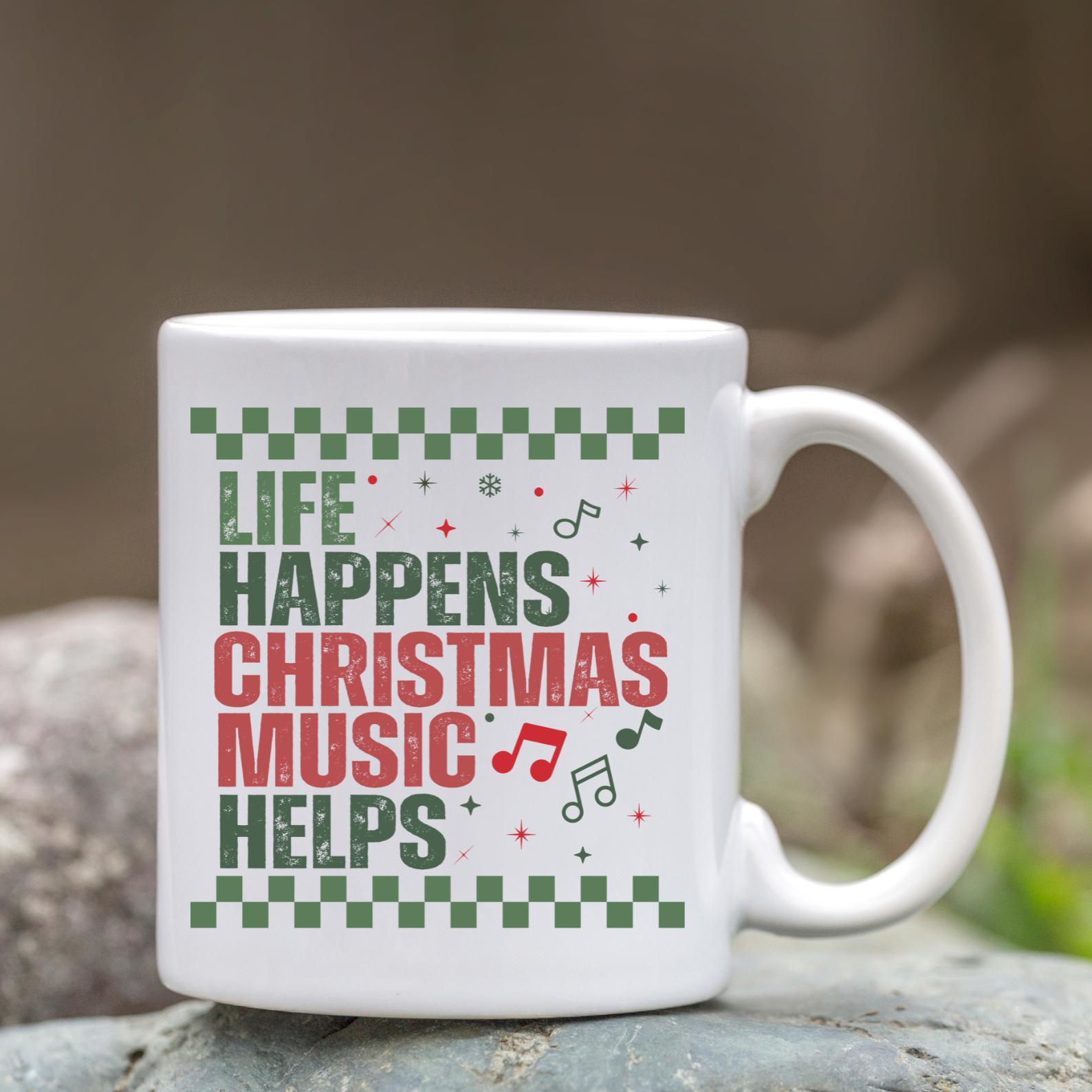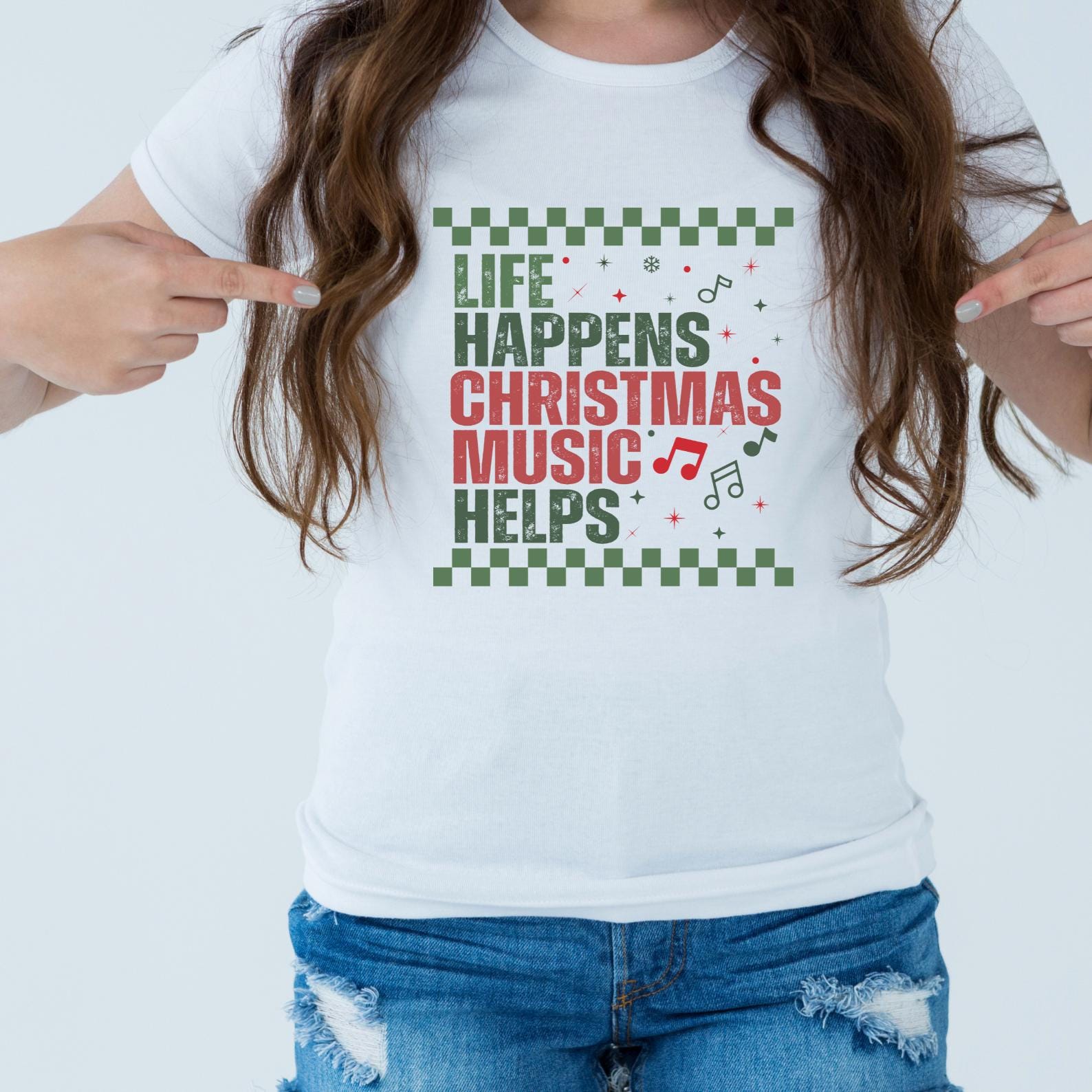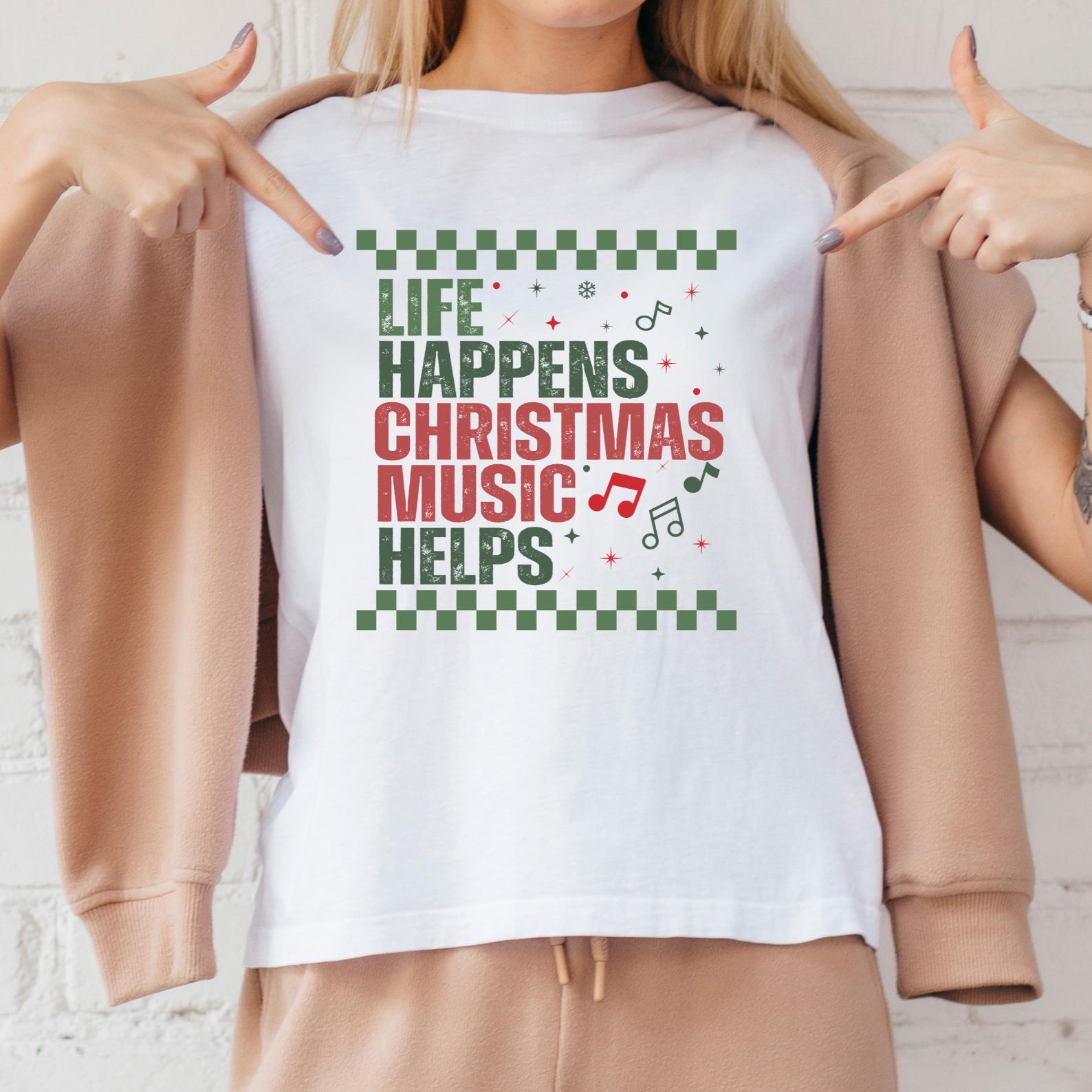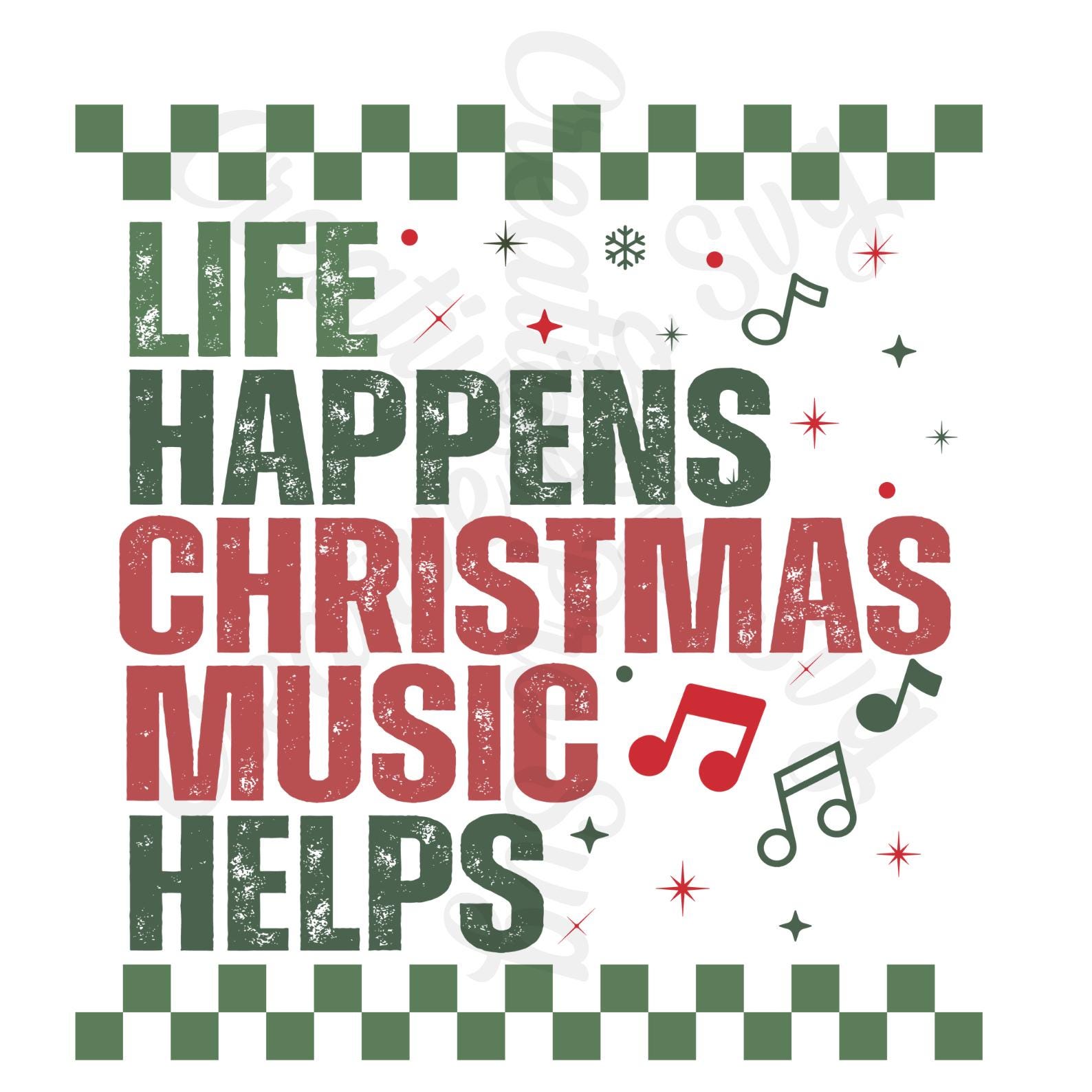 Life happens christmas music helps Png, Funny Retro Trendy Christmas Png, Sweatshirt Sublimation Design, Digital Download