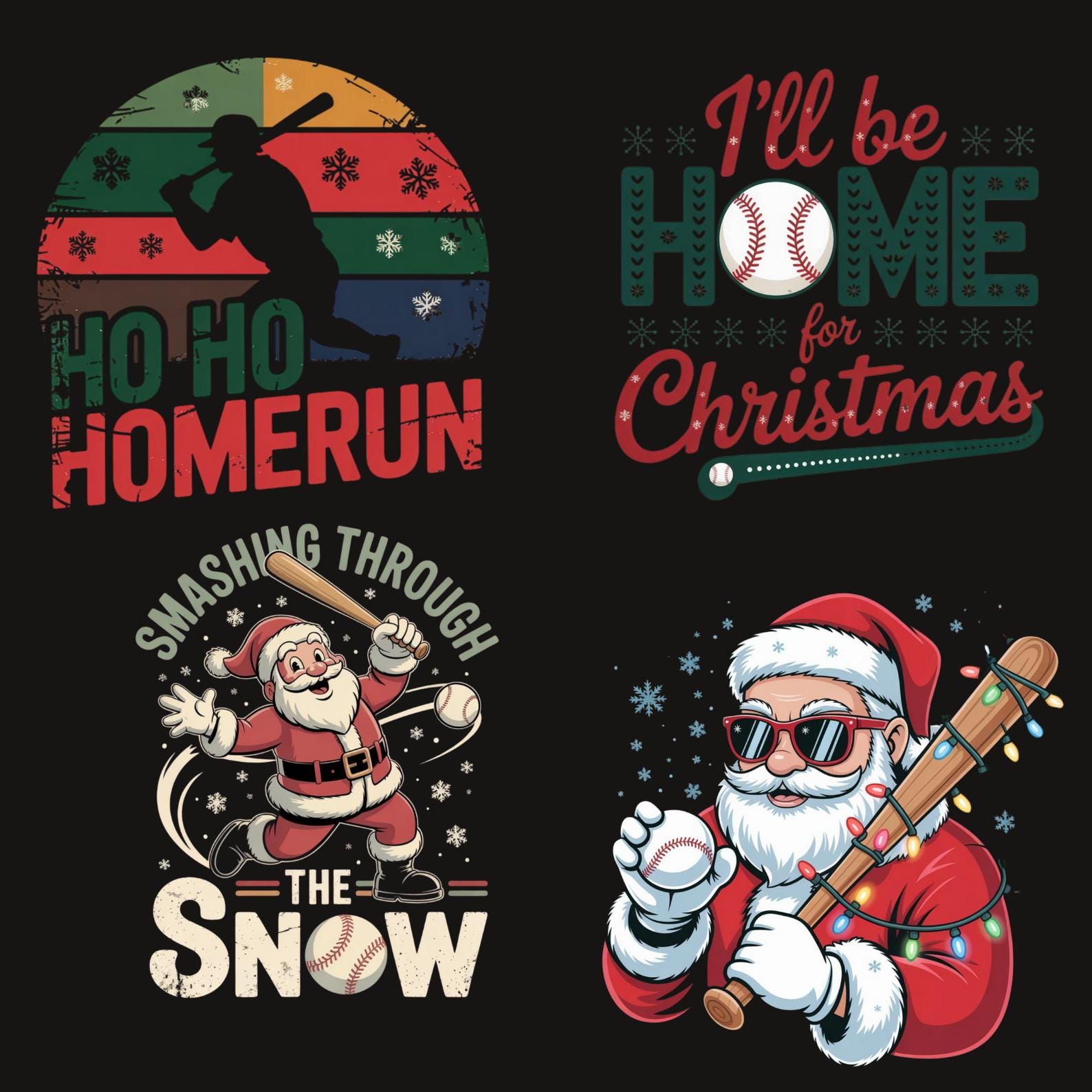 Santa Baseball PNG Bundle, Funny Christmas Baseball Clipart, Holiday Sports Santa Art, Xmas Shirt & Sublimation Design