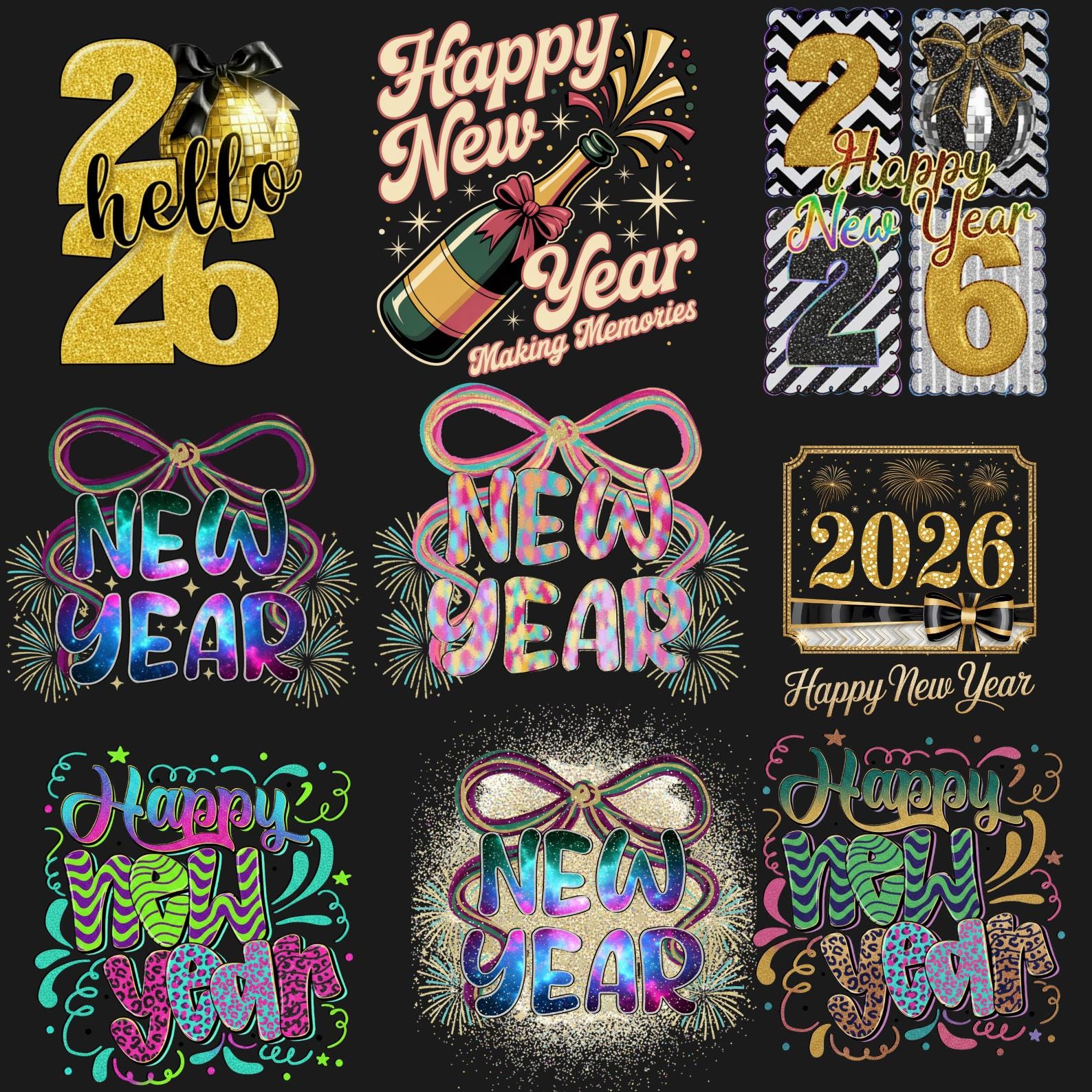 10+ Happy New Year 2026 PNG Bundle, Neon Retro New Year Typography, Glitter 2026 Numbers, Bold Colorful Party Clipart, Celebration Graphics