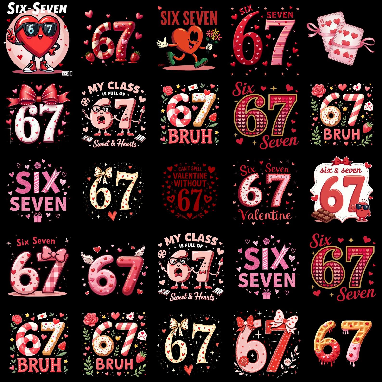 Coquette Valentine 67 PNG Bundle, Preppy Heart Bow Valentine Designs, Funny 6 7 Valentine Meme PNG, Bear Dice Six Seven Clipart, Valentine Sublimation PNG Download