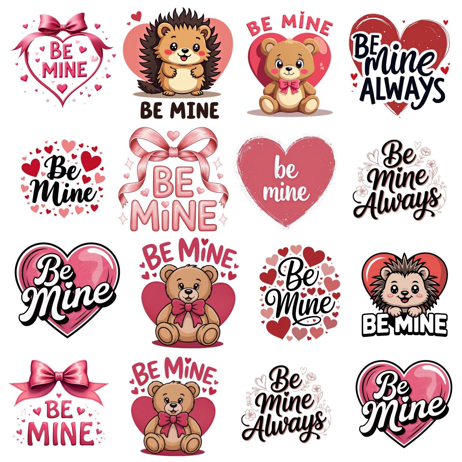15 Valentine Be Mine PNG Bundle, Cute Teddy Bear Heart Designs, Coquette Preppy Valentine Clipart, Be Mine Always Love PNG, Red Pink