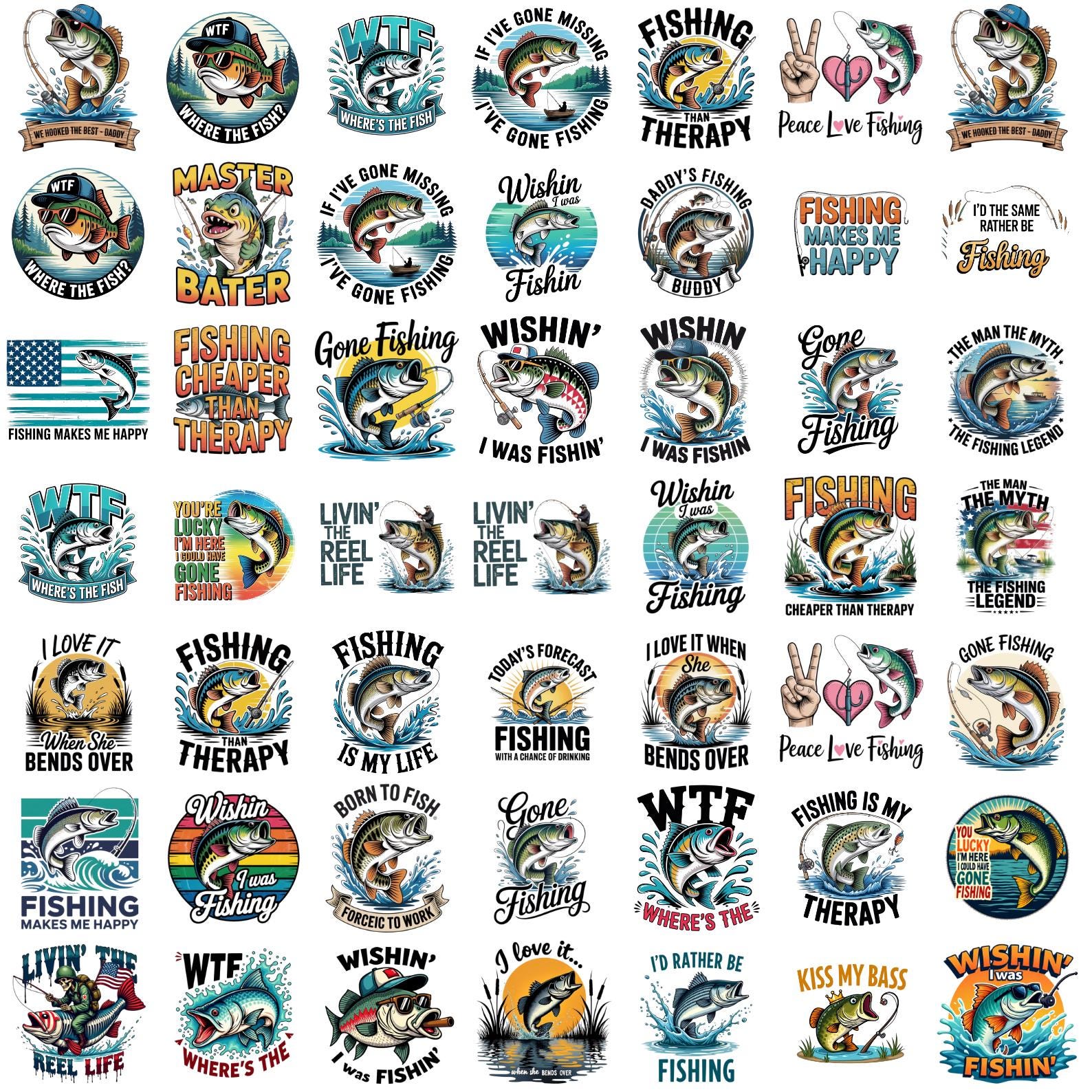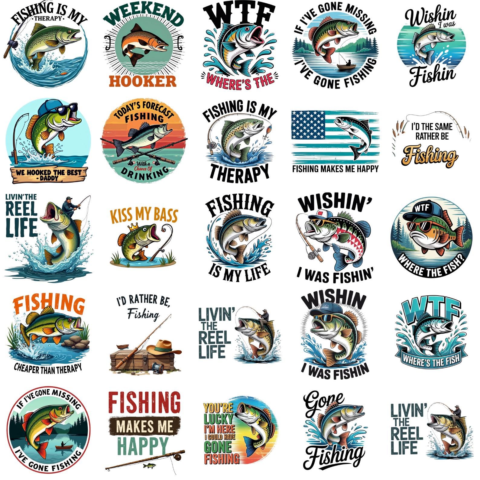 Funny Fishing Quotes PNG Bundle, Fishing Humor Sayings, Fisherman Quote Designs, Bass Trout Art, T-Shirt & Sticker Graphics,Digital Download