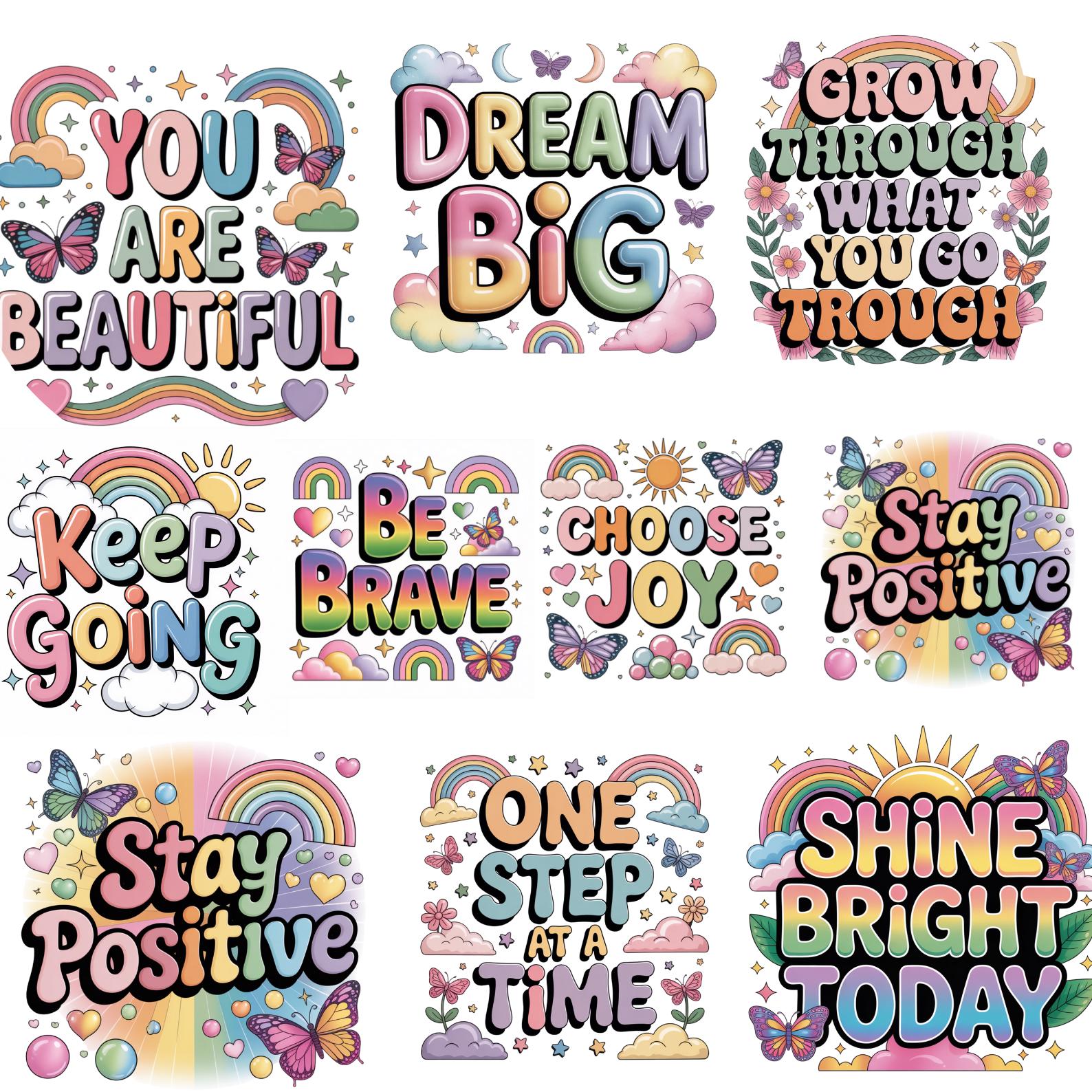 Positive Quotes Clipart PNG Bundle – Motivational Rainbow Sayings, Cute Affirmation Stickers, Happy Inspirational Text Art, Kids Classroom Decor, Transparent PNG, Digital Download