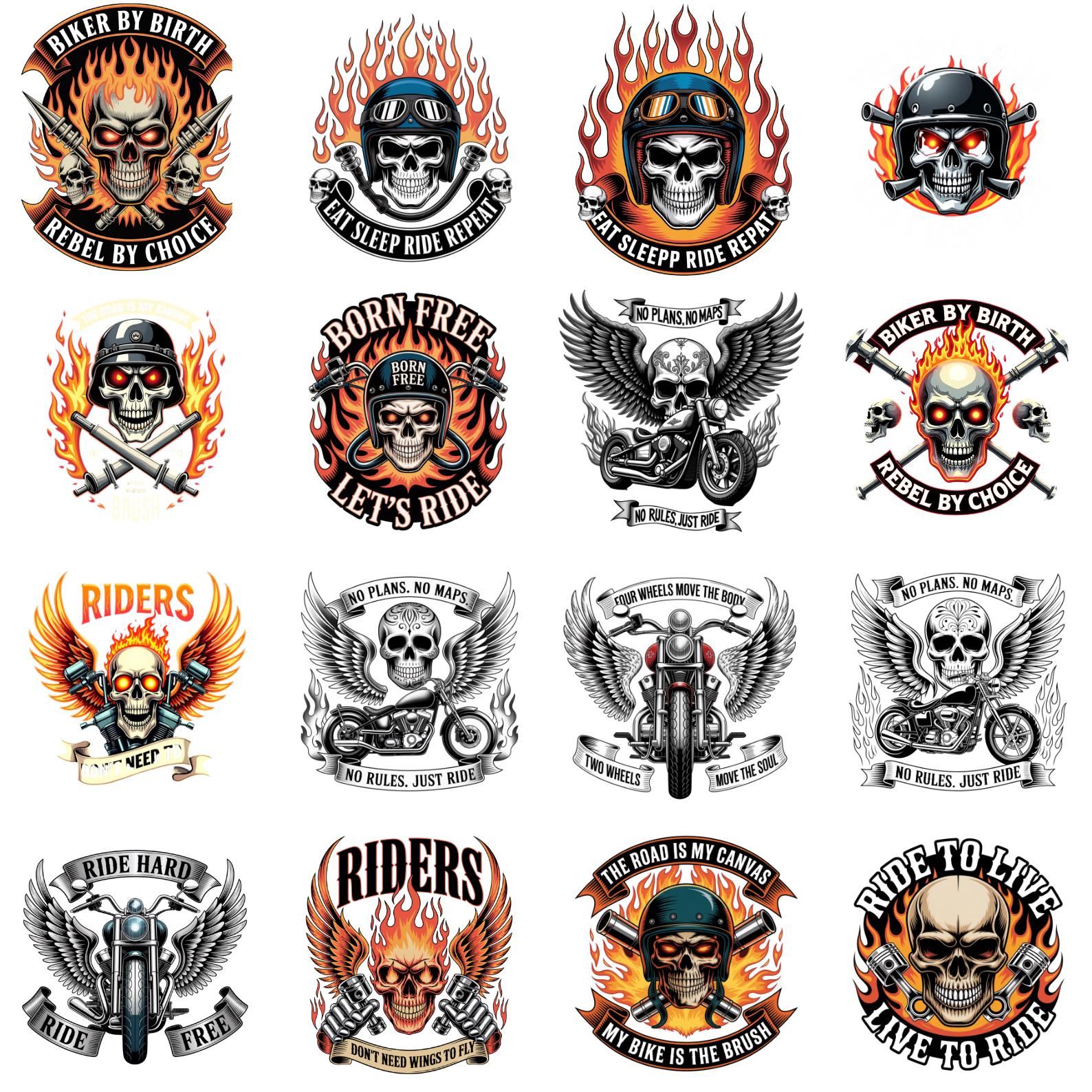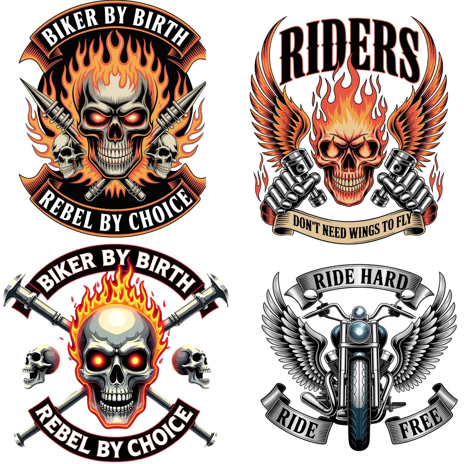 15+ Biker Skull PNG Bundle, Motorcycle Rider, Flaming Skull Badges, Vintage Biker, Motorcycle Quote Designs, Rider Patch Style Art