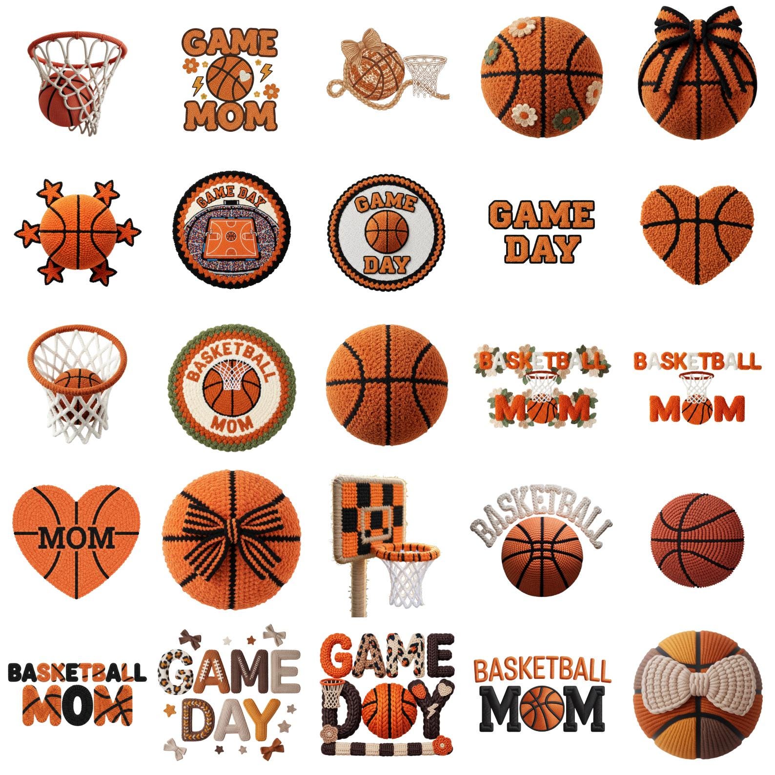 Game Day Faux Yarn Basketball PNG Bundle, Knitted Sports Style Basketball Clipart, Faux Crochet Hoop & Ball Graphics, Sports Team Design, Digital Download