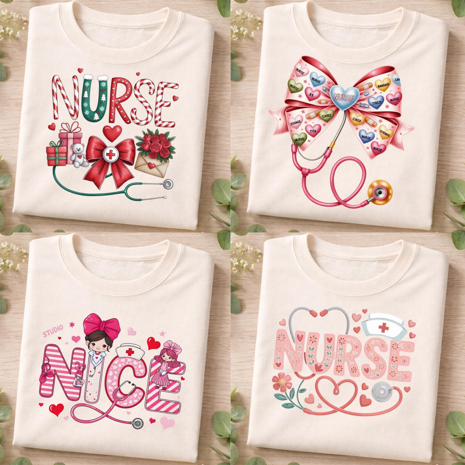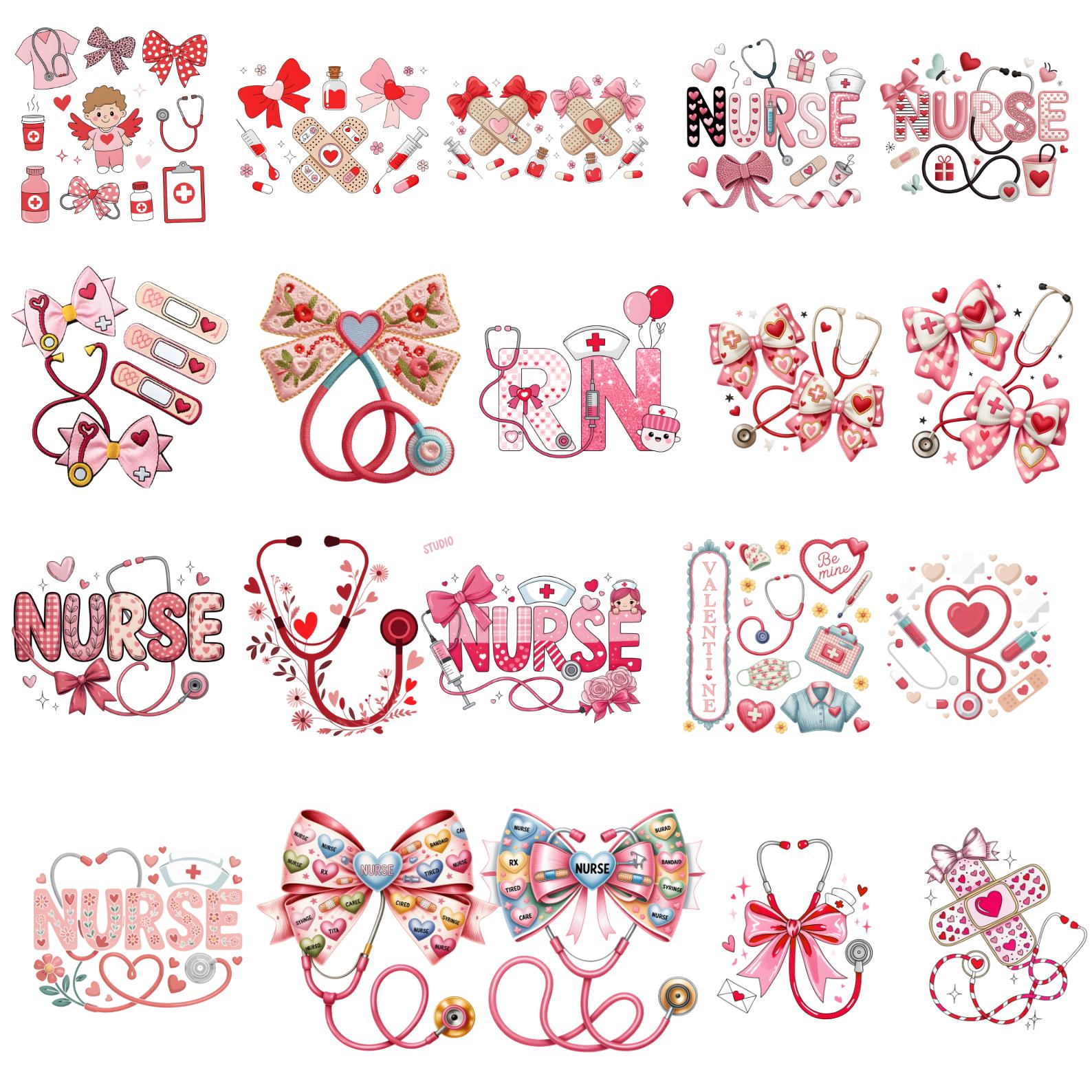 30+ Valentine Nurse Simple Clipart Bundle,Valentine's Day Coquette Clipart, Stethoscope Bow Png,Shirt Png ,Digital Download
