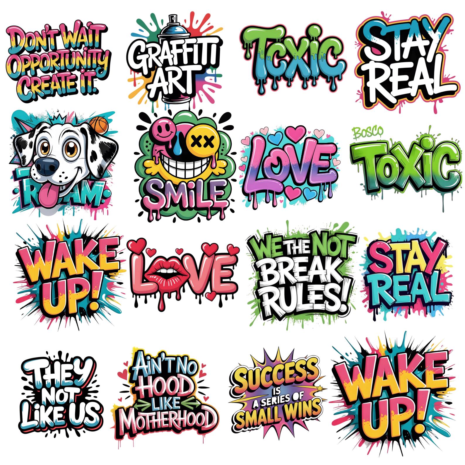 30+ Colorful Graffiti PNG Bundle, Graffiti Clipart, Street Art Graphics , Motivational Quotes, Modern T-Shirt for Men Woman Kids
