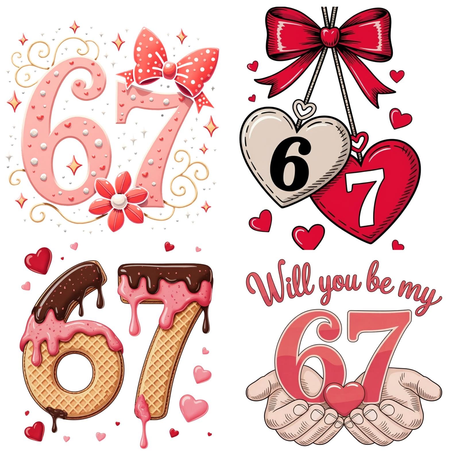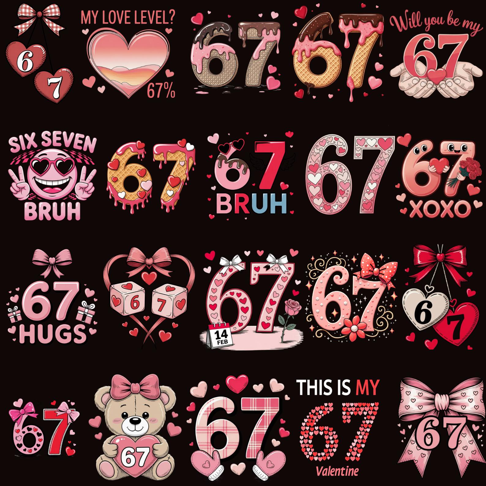 70 Six Seven Valentine Png Bundle, Preppy 67 Valentine Png, Six Seven Heart Valentines Png, Boy Girl Valentine Png, Digital Download