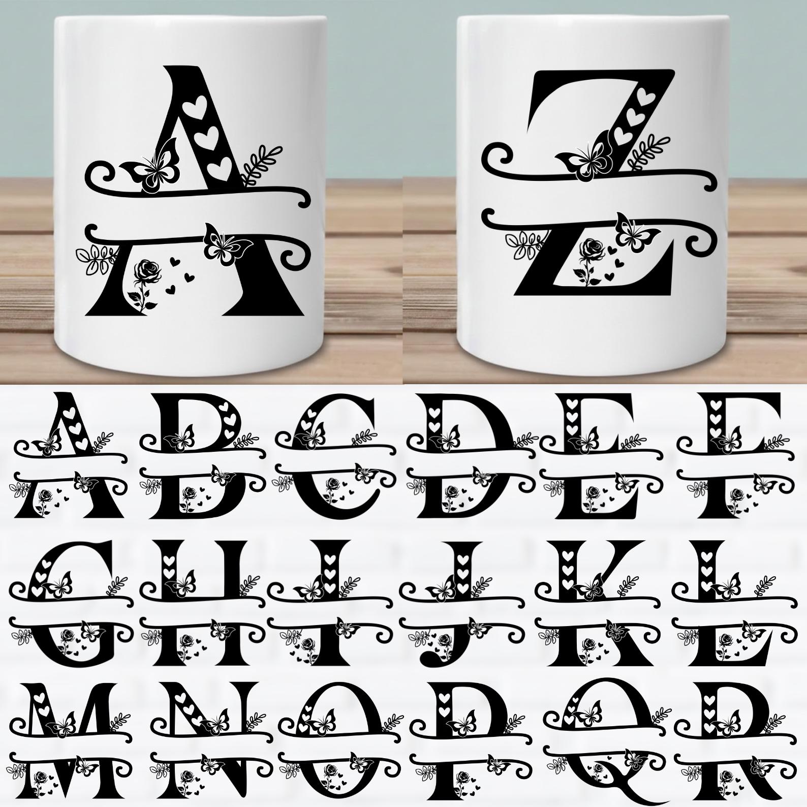 Create beautiful personalized projects with this 26 Floral Alphabet SVG Bundle featuring elegant flower letters from A to Z. These floral monogram designs are perfect for mugs, tumblers, t-shirts, tote bags, wall art, nursery decor, invitations, and custom gifts.