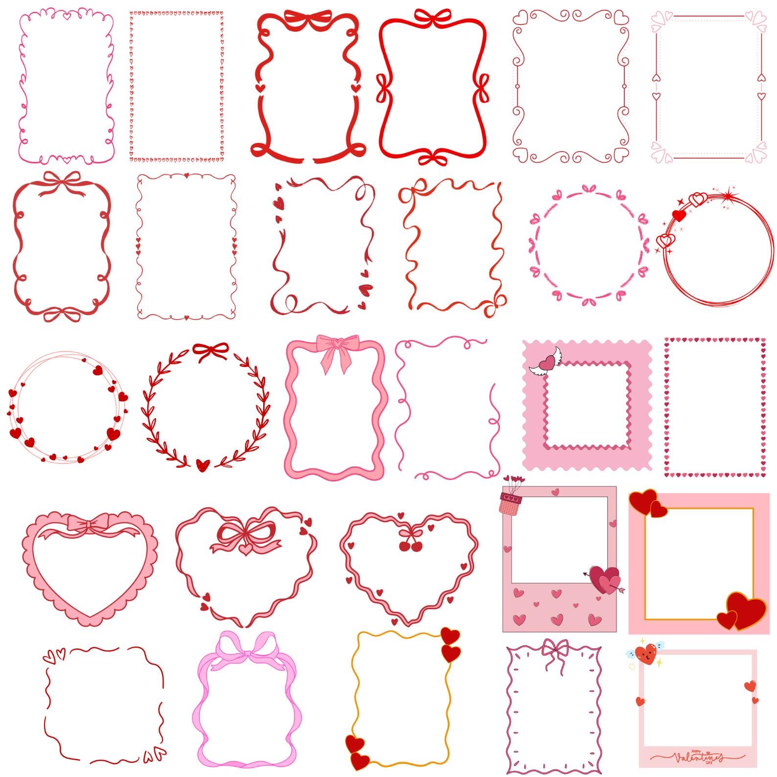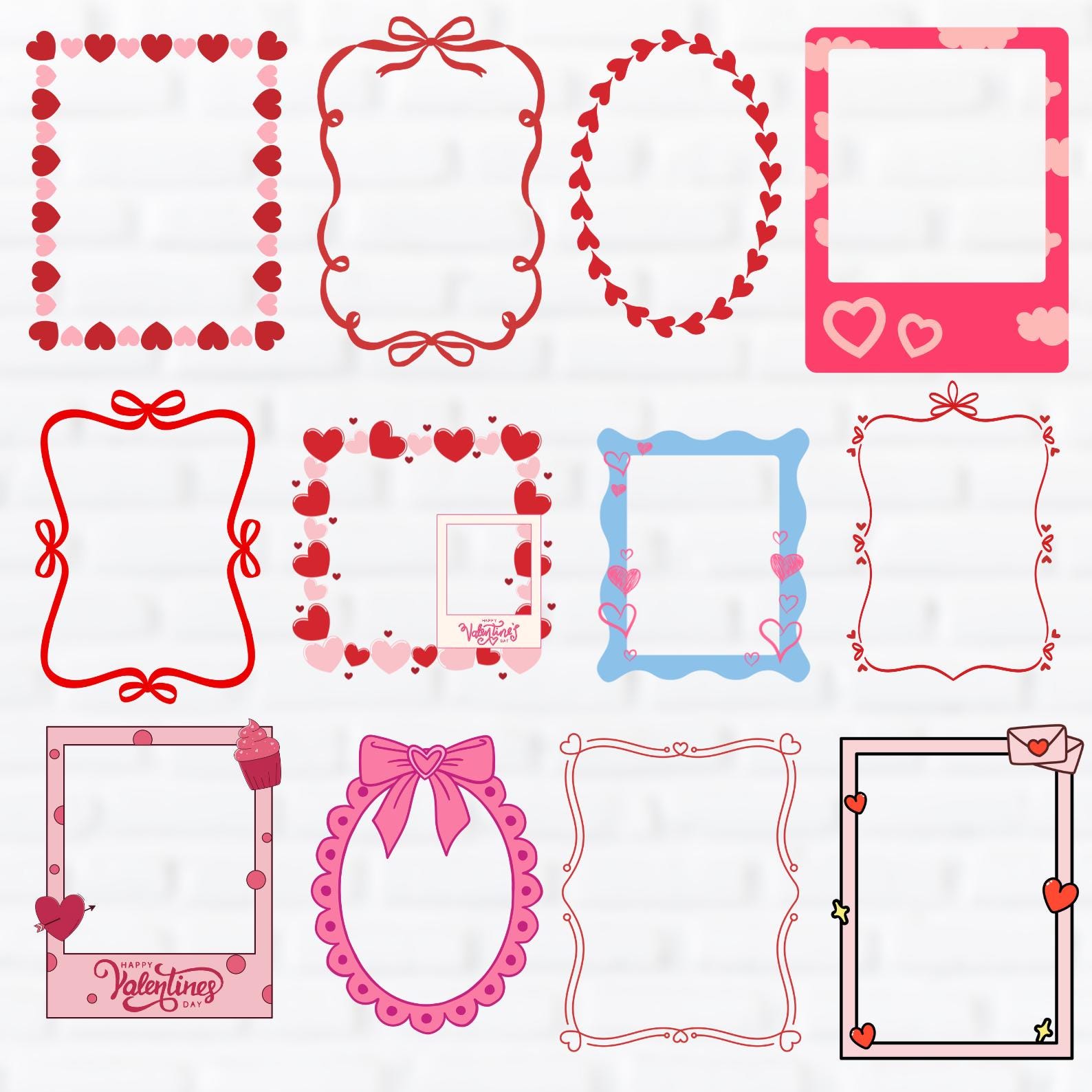 70 Valentines Frames Svg Bundle, Galentine Border Frames DXF, Coquette Bow Frames Clipart, Heart Frames with Bows, Wedding Baby Shower