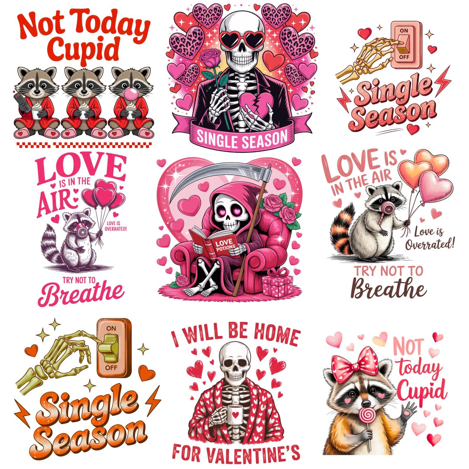 10 Valentine’s Day Quotes Clipart Bundle, Single Season Skeleton Love Quotes PNG, Cute Gothic Anti Valentine Sticker, Funny Valentine Png