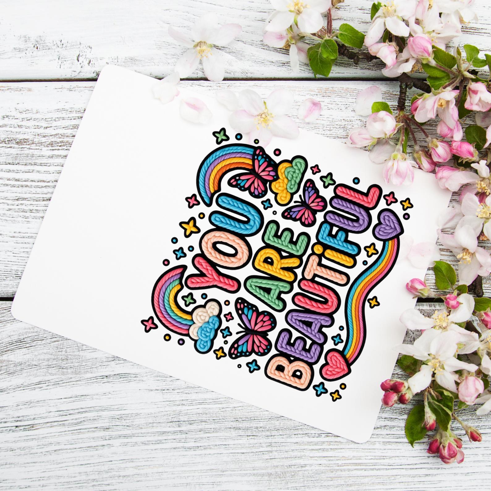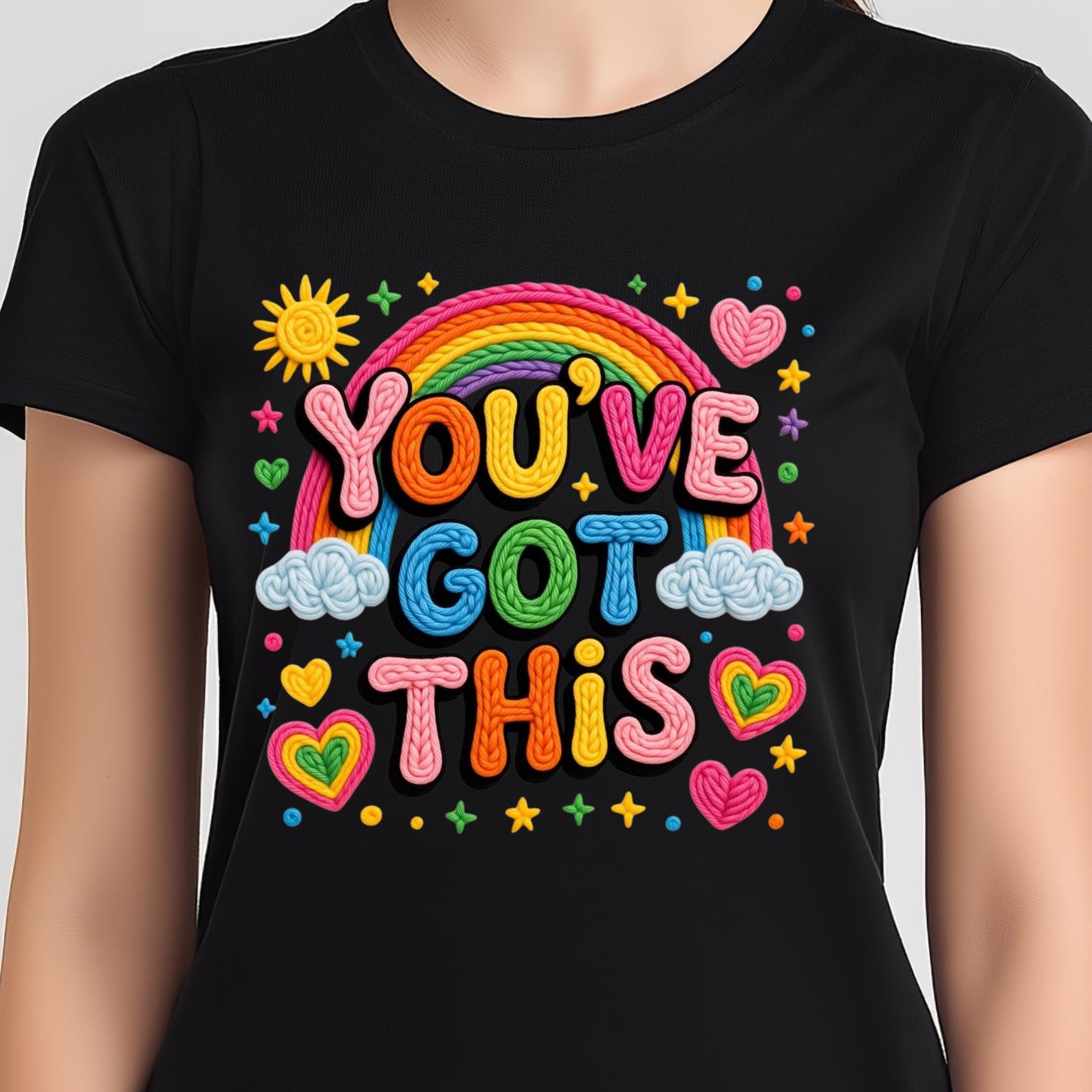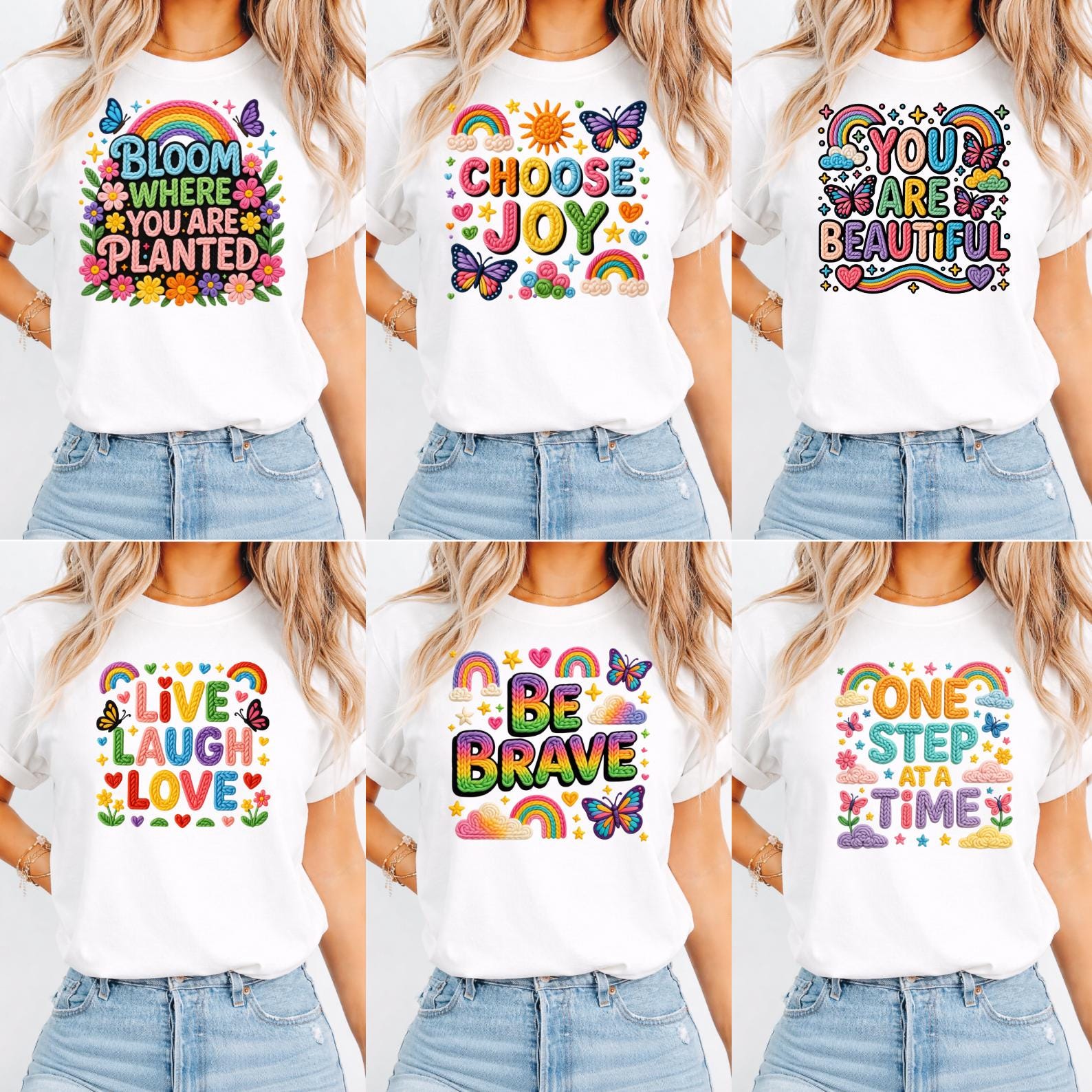 23 Pastel Rainbow Faux Yarn PNG Bundle, Groovy Motivational Quotes, Colorful Floral Positive Affirmations, Good Vibes Inspirational Sayings