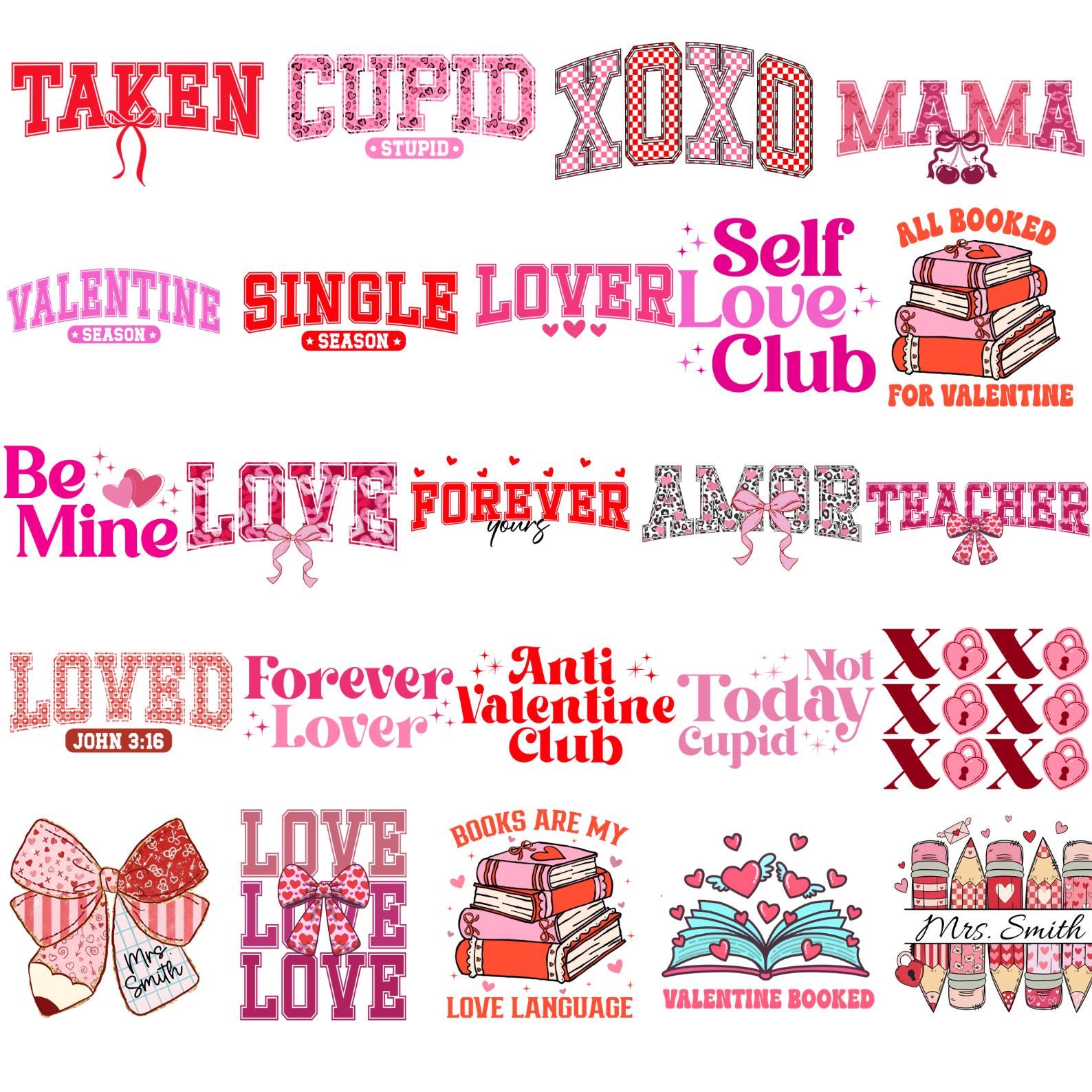 50 Valentines Day PNG Bundle, XOXO Valentines Day Heart, Coquette Valentine Png, Valentine Shirt Png, Love Graphics, Digital Download