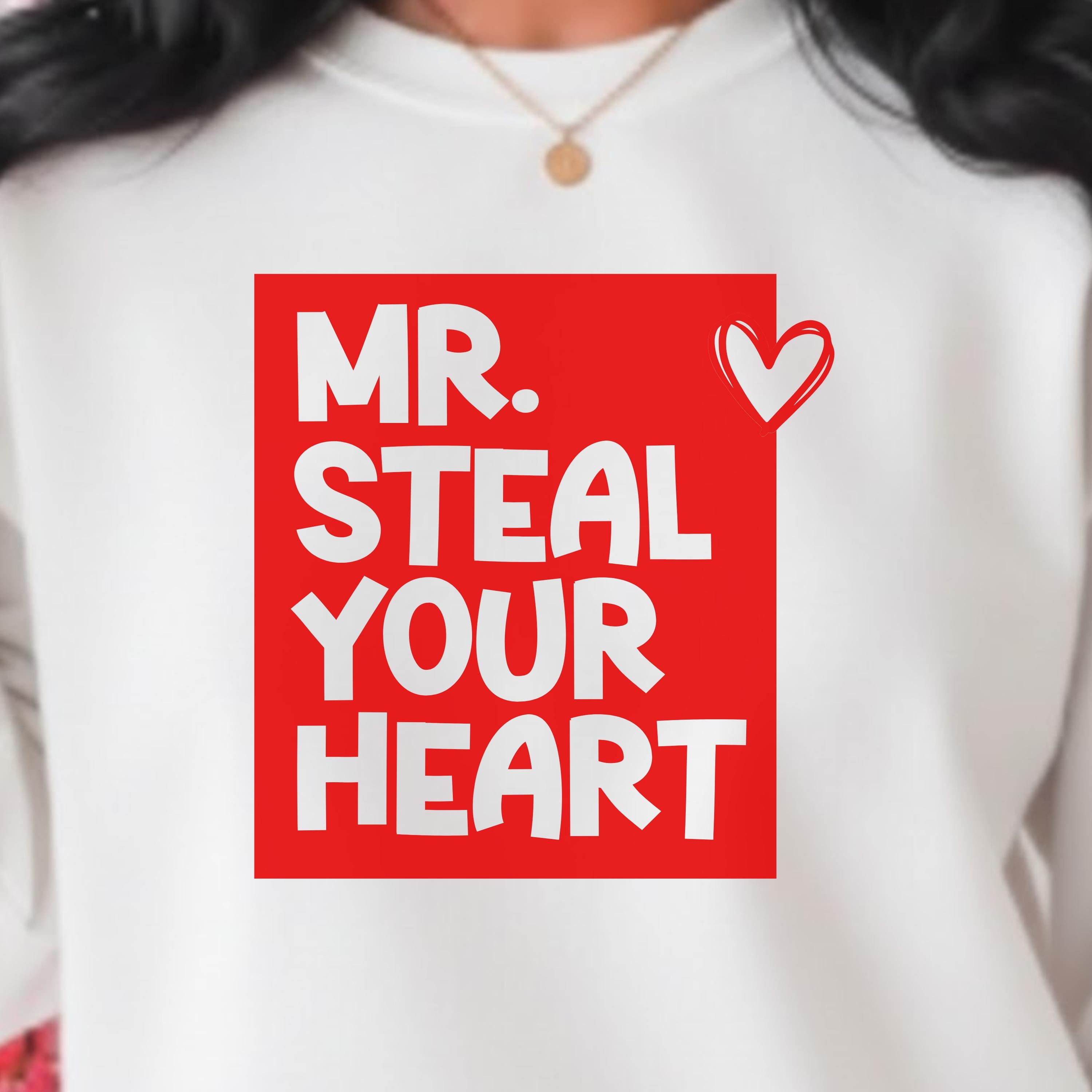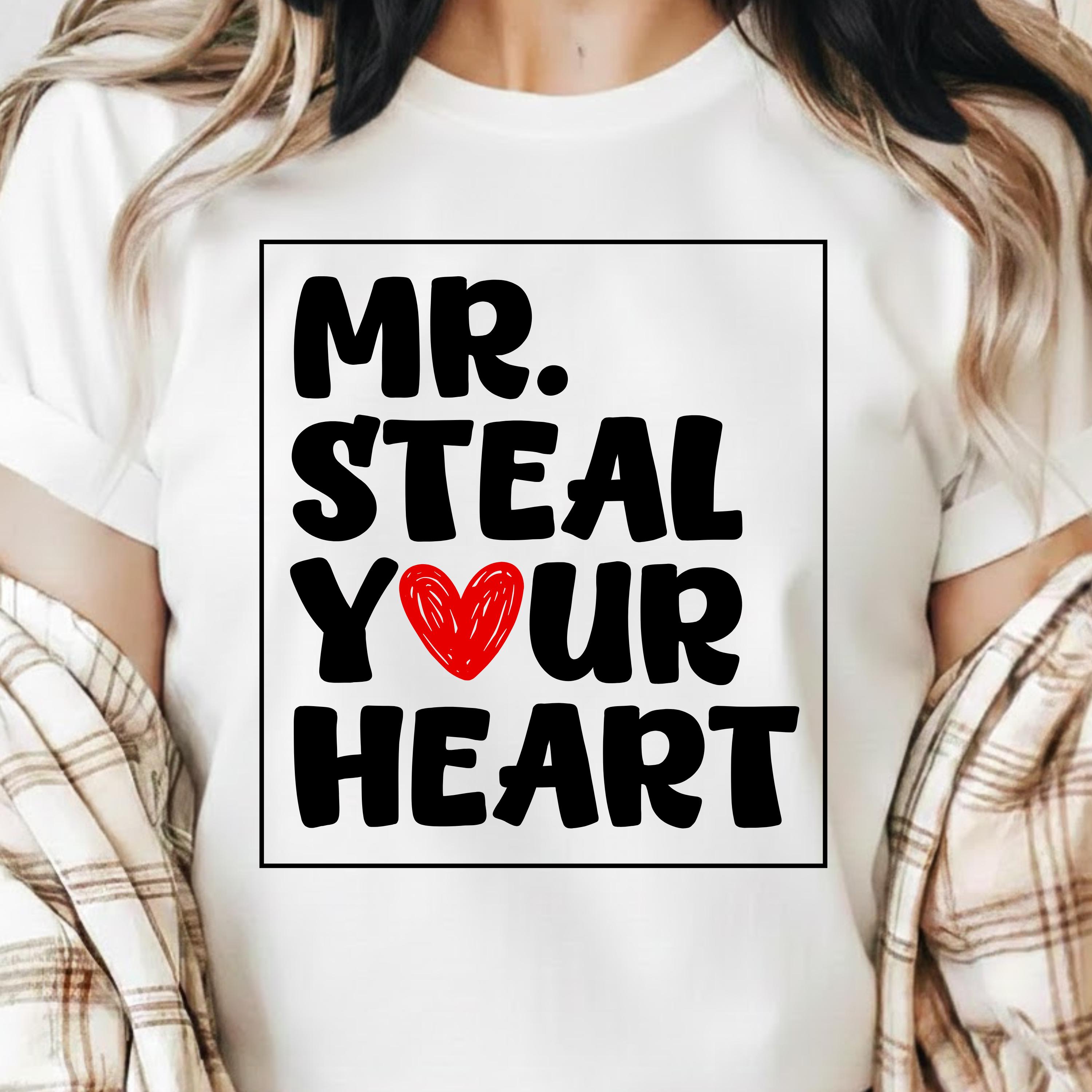 Mr Steal Your Heart SVG, Valentine’s Day Shirt Design, Retro Love Quote SVG, Boy Valentines Shirt, Cute Heart Typography, Cricut Cut File