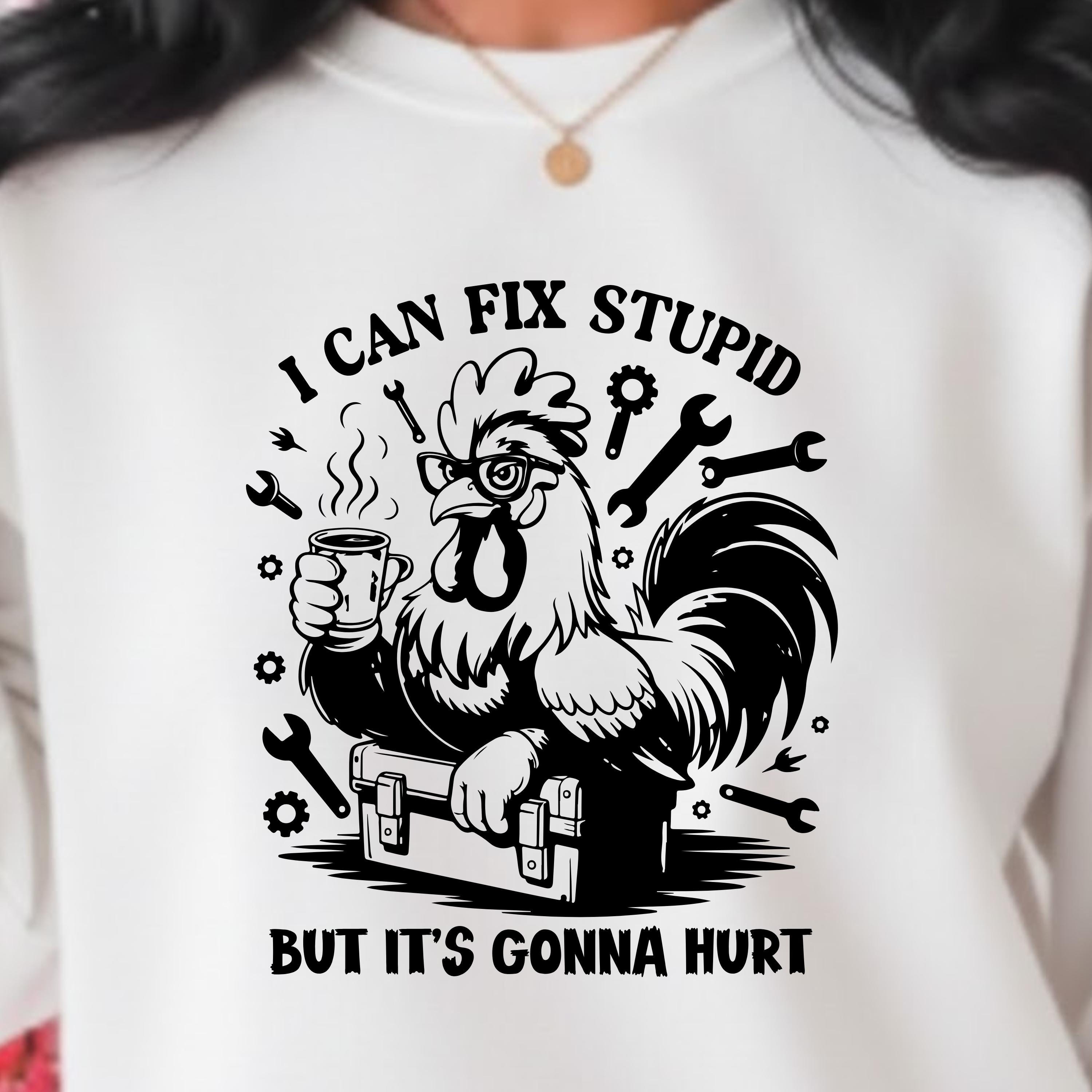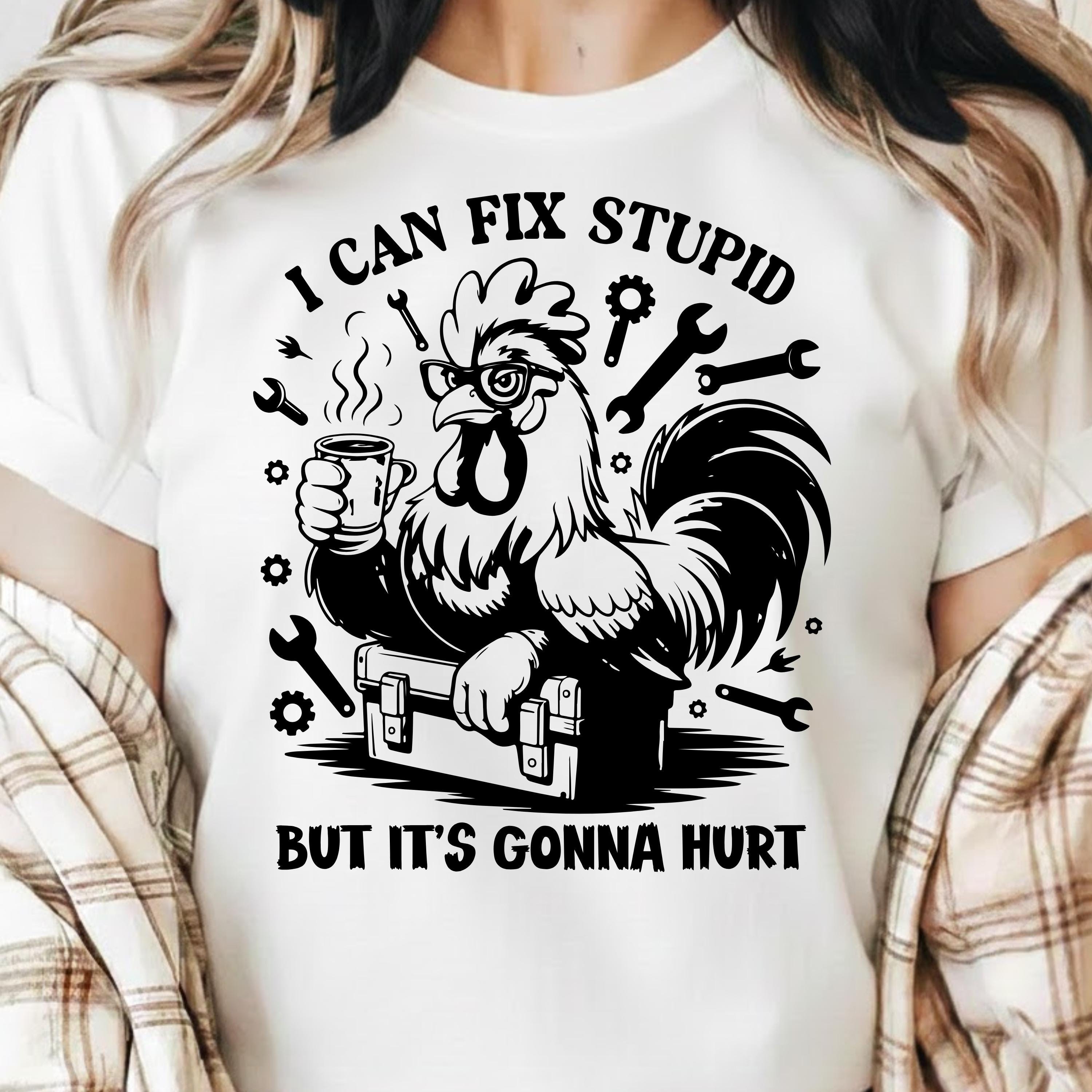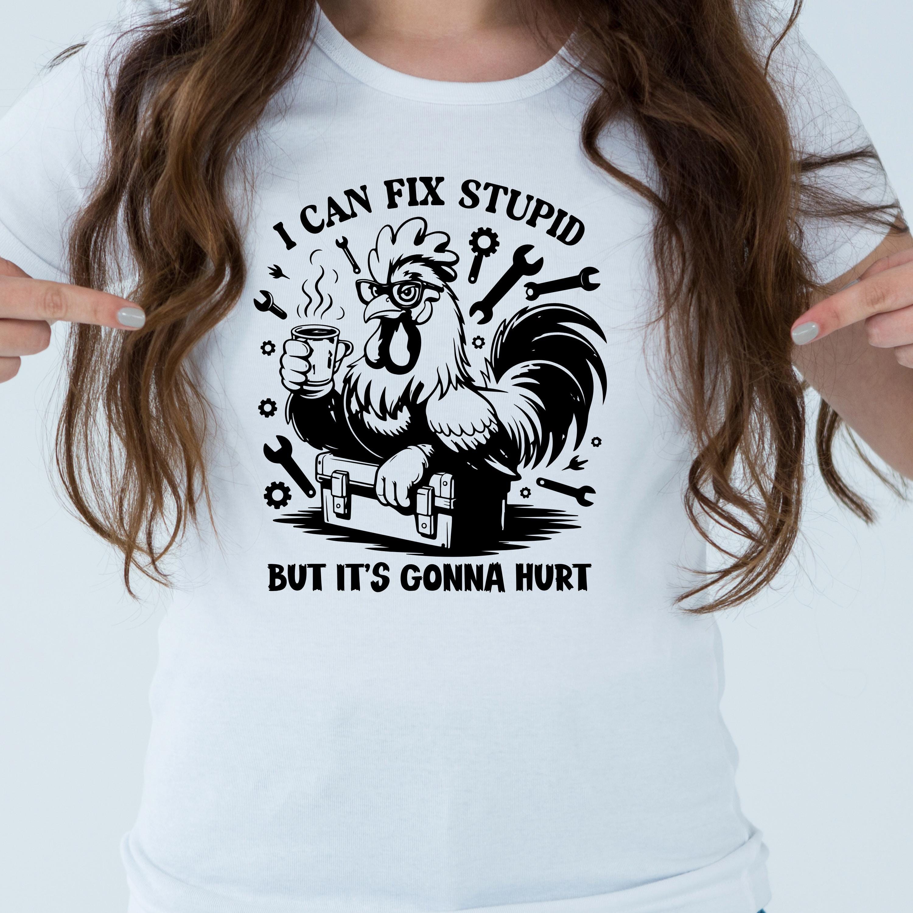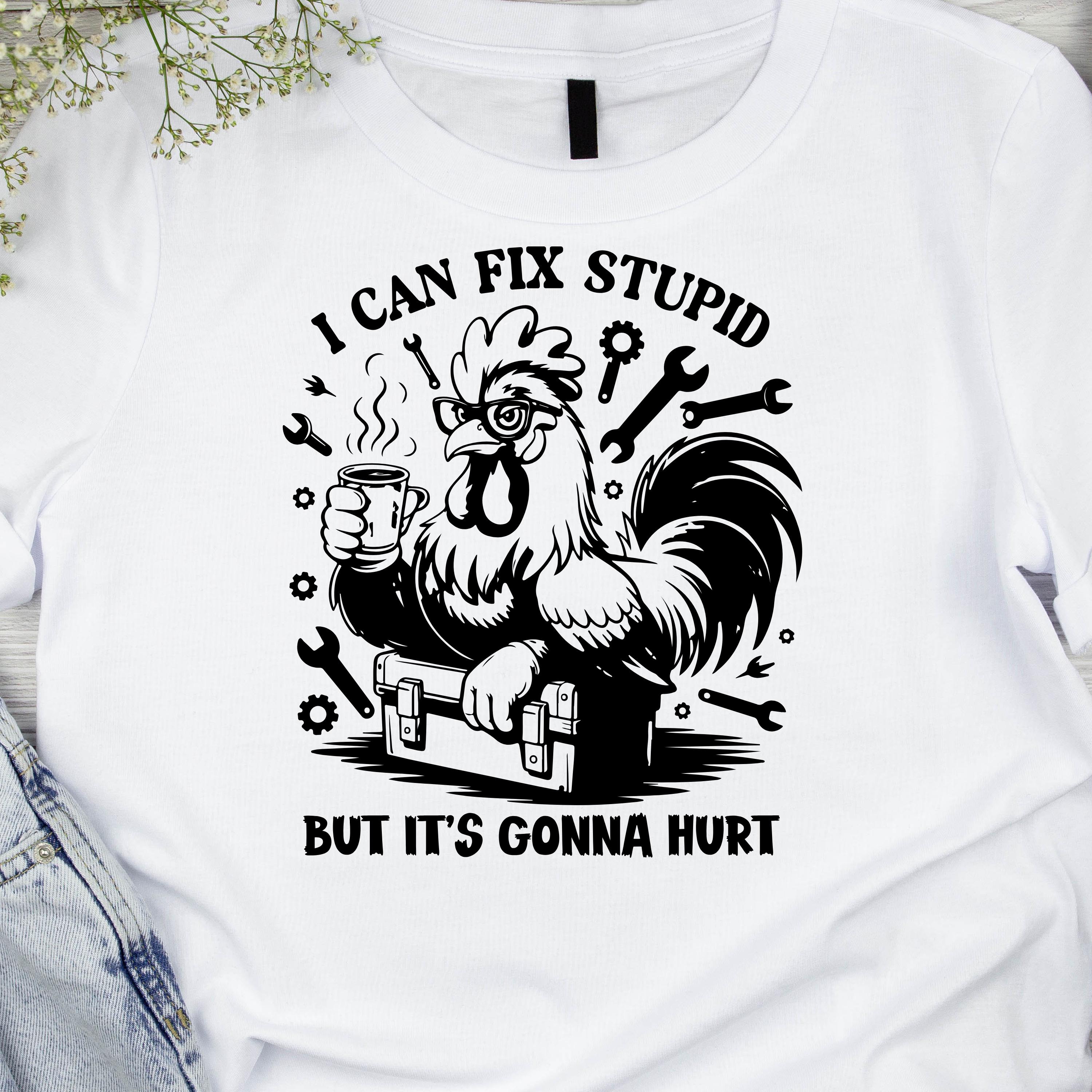 I Can Fix Stupid PNG, Funny Mechanic Rooster Clipart, Sarcastic Quote Design, Wrench Chicken Graphic, Adult Humor Shirt PNG, Digital Download