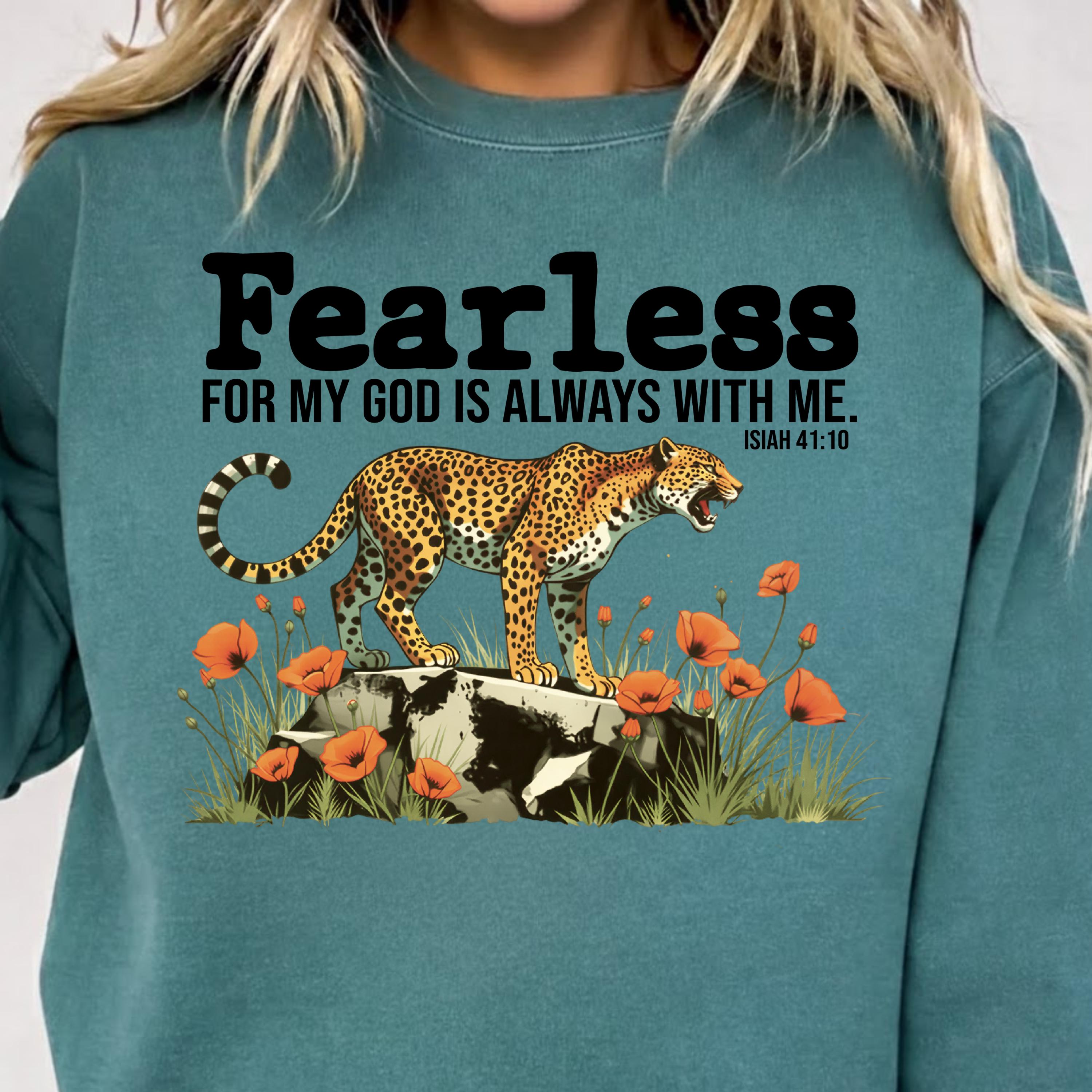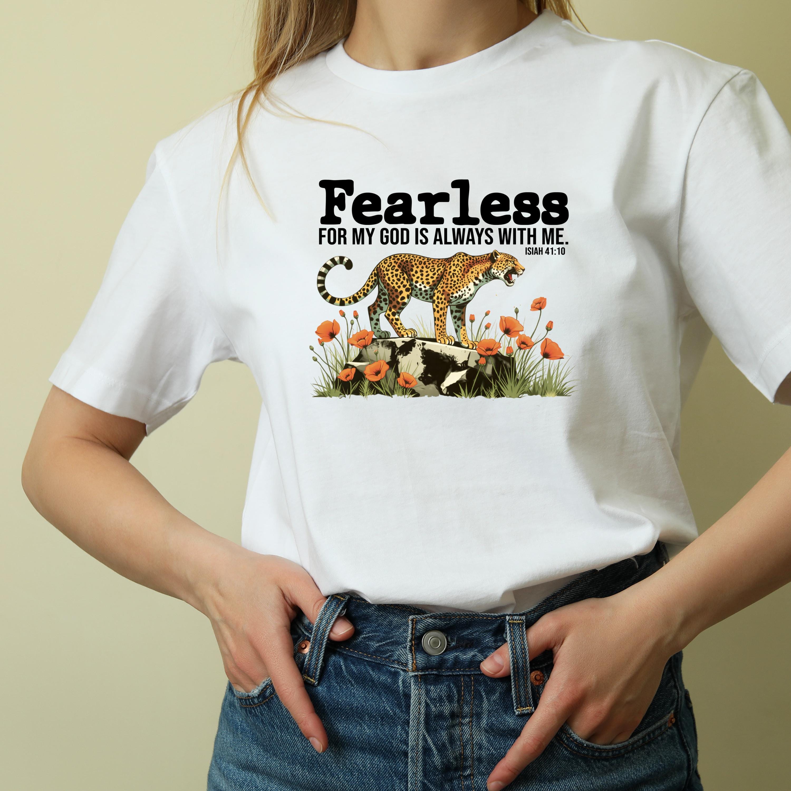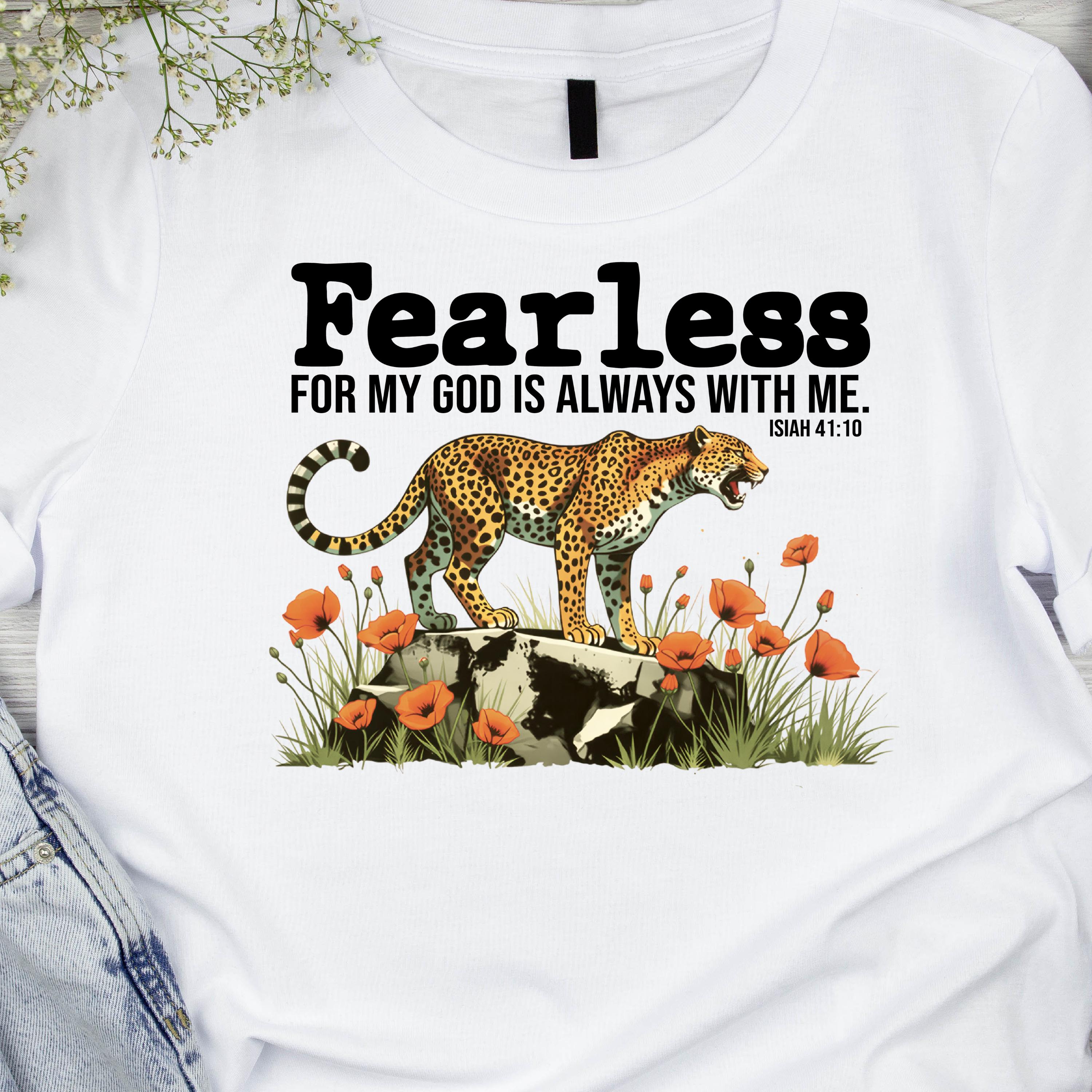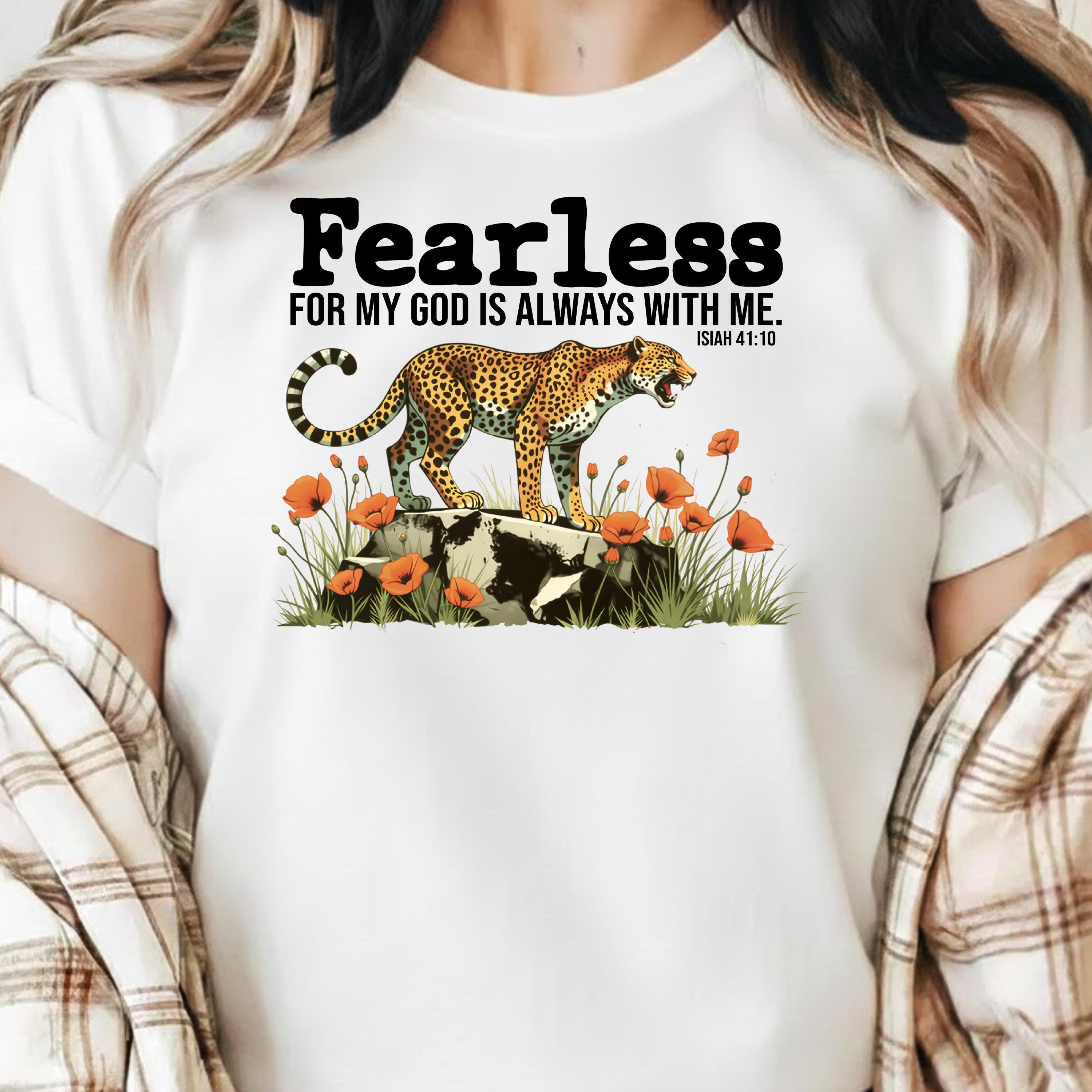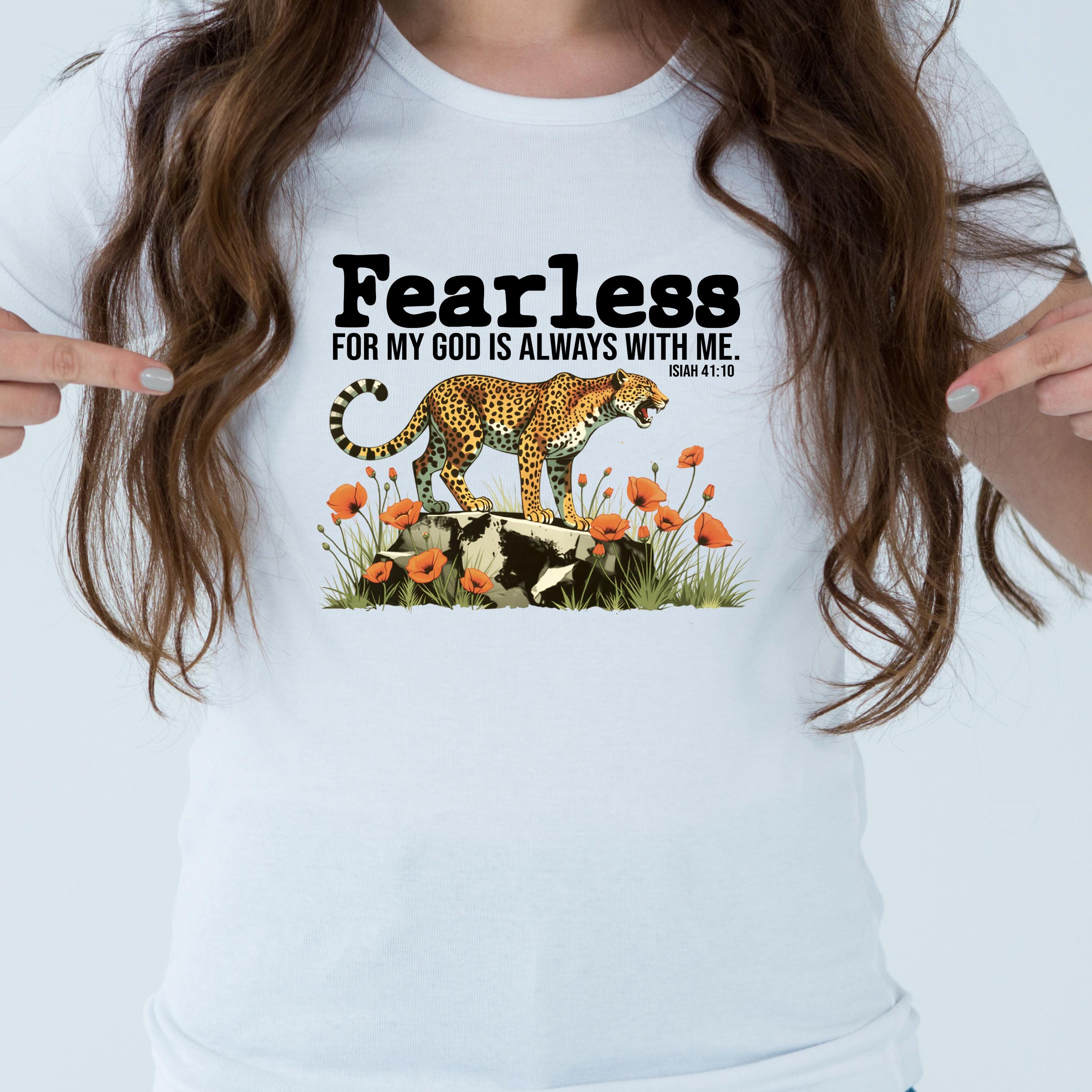 Fearless Christian PNG, For My God Is Always With Me Isaiah 41:10 Shirt Design, Cheetah Floral Bible Verse Sublimation, Digital Download