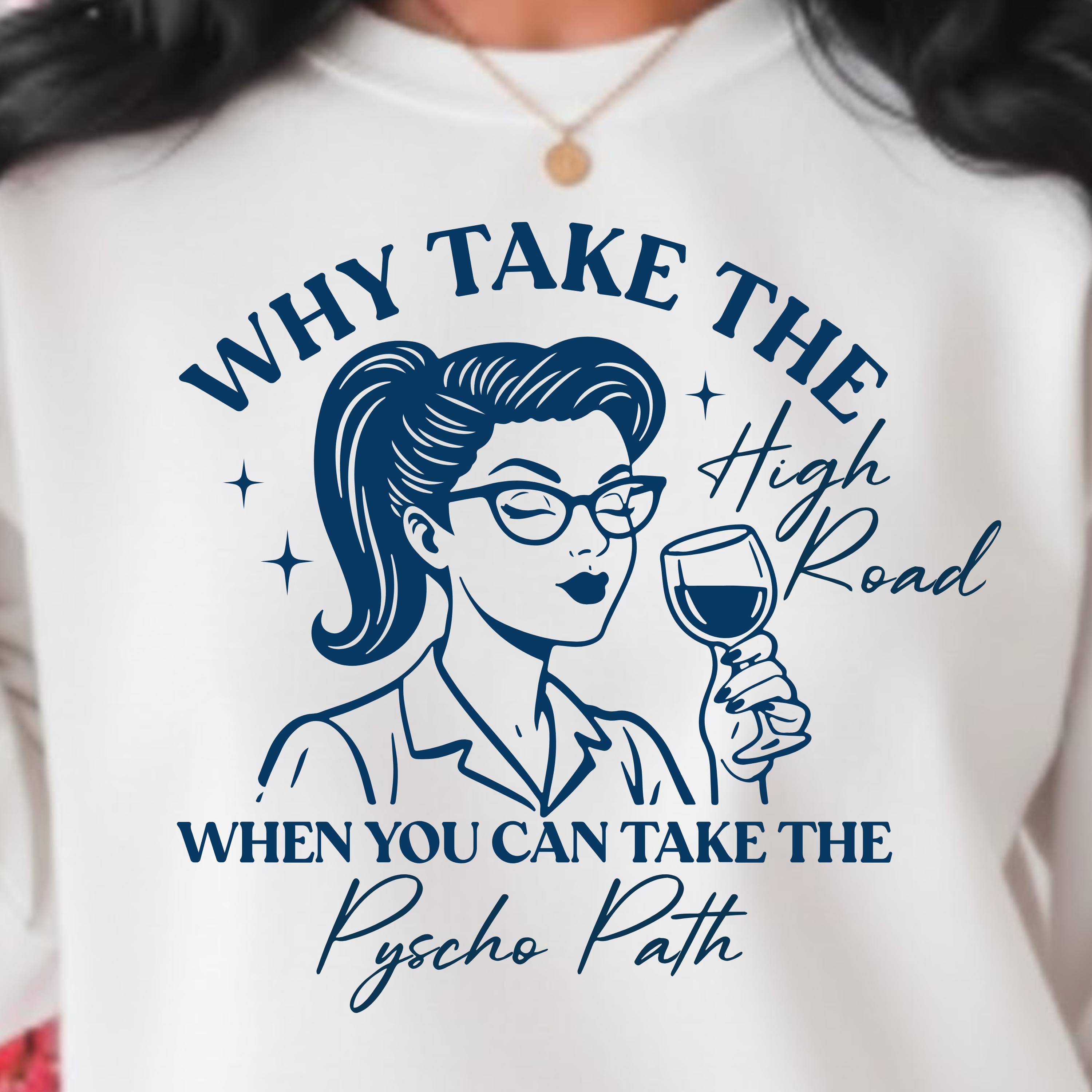 Why Take The High Road When You Can Take The Psycho Path PNG SVG, Sassy Woman Sarcastic Quote, Vintage Retro Funny Shirt Design, Adult Humor, Digital Download