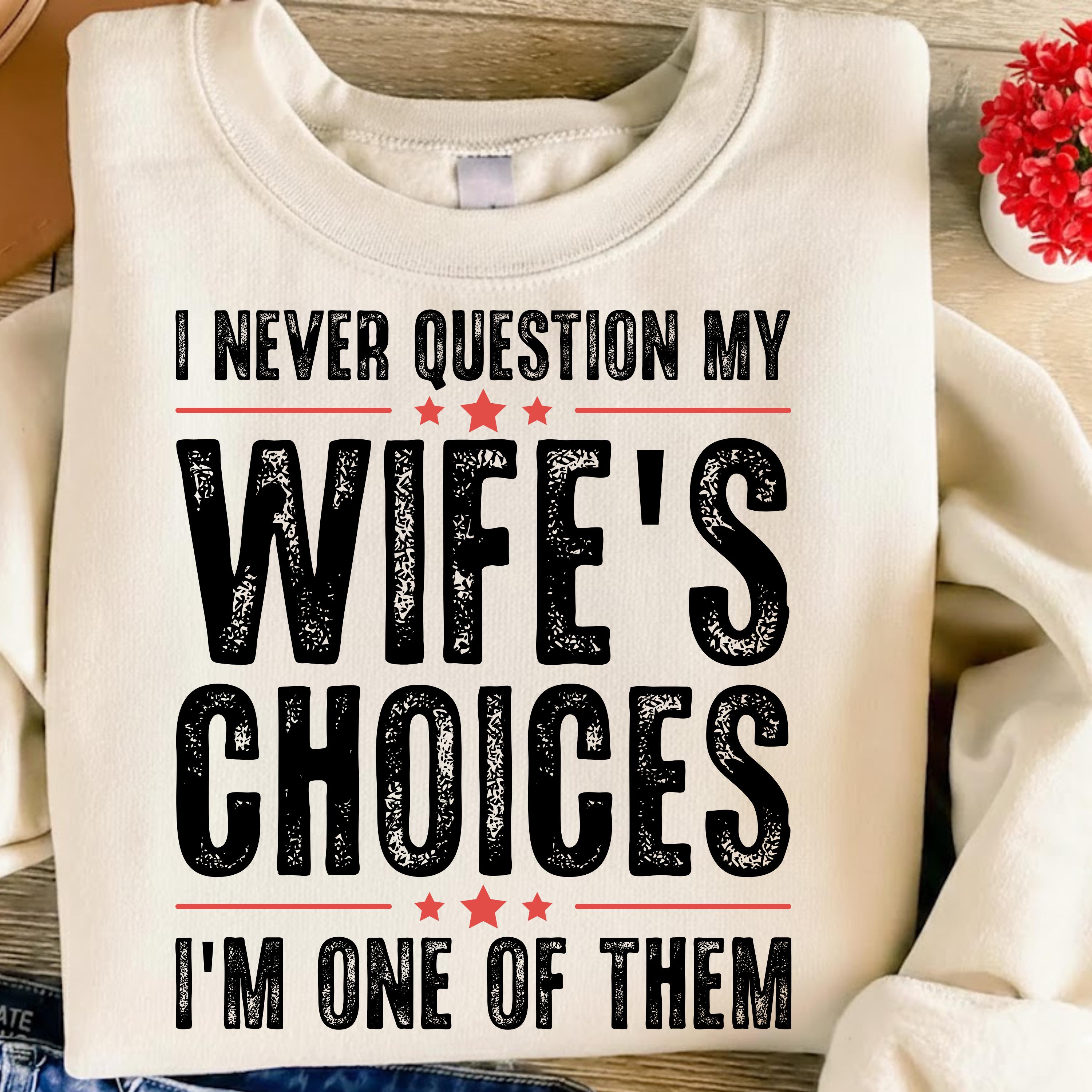 I Never Question My Wife’s Choices SVG PNG, Funny Husband Dad Joke Shirt Design, Sarcastic Marriage Quote, Father’s Day Gift Cricut Cut File