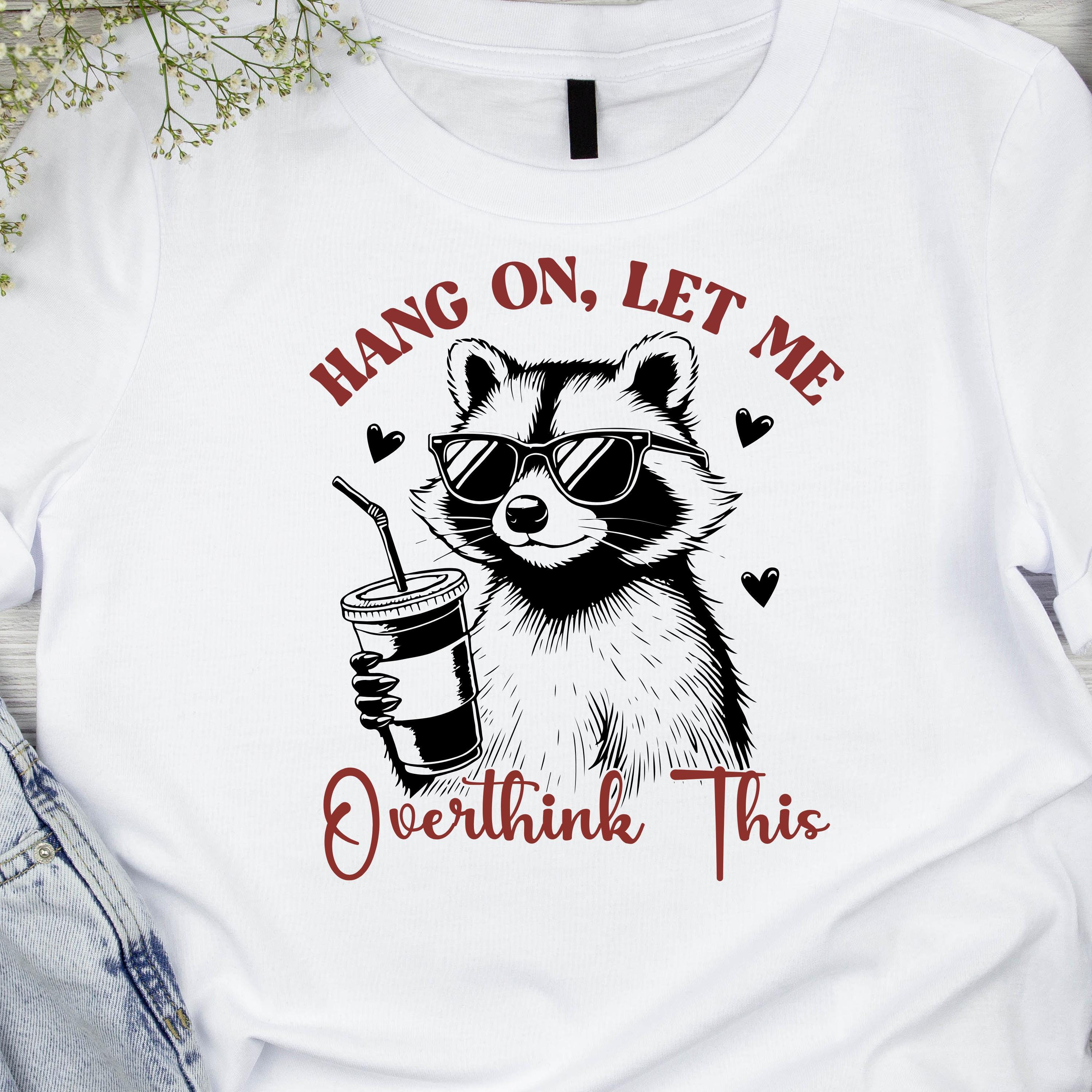 Hang On Let Me Overthink This Svg, Funny Humor Shirt Png Sublimation, Racoon Lover Shirt, Sarcastic Png, Digital Download