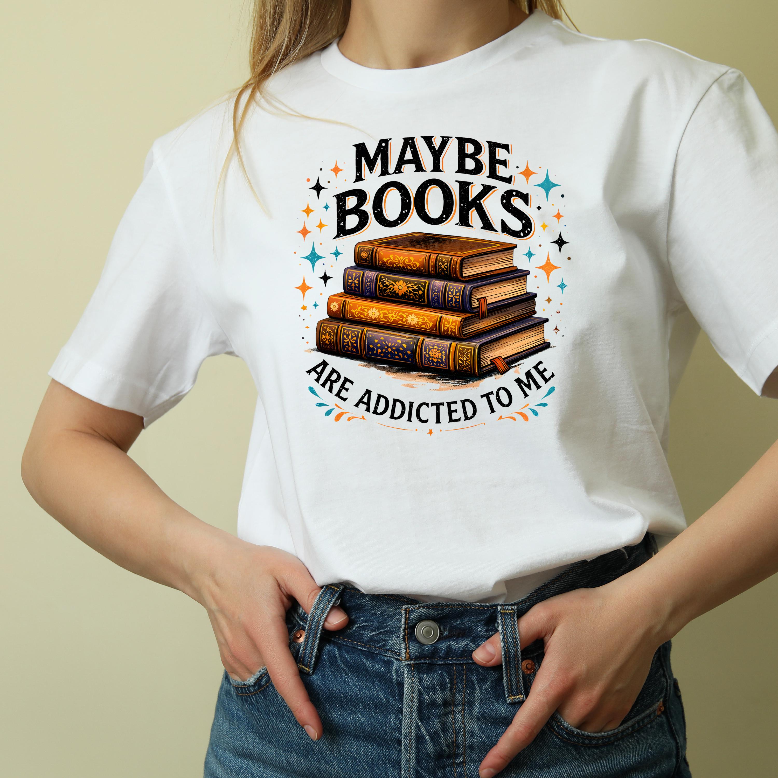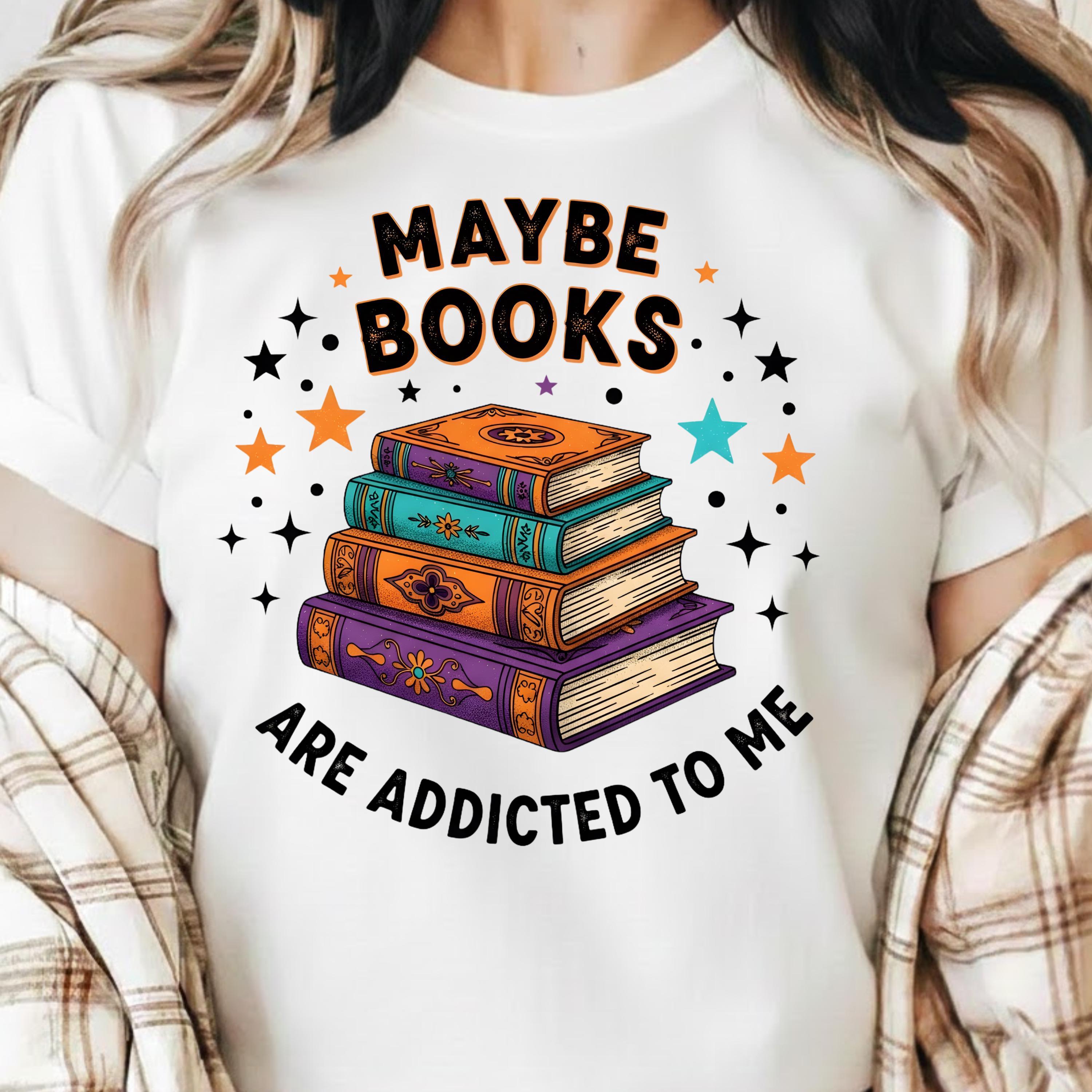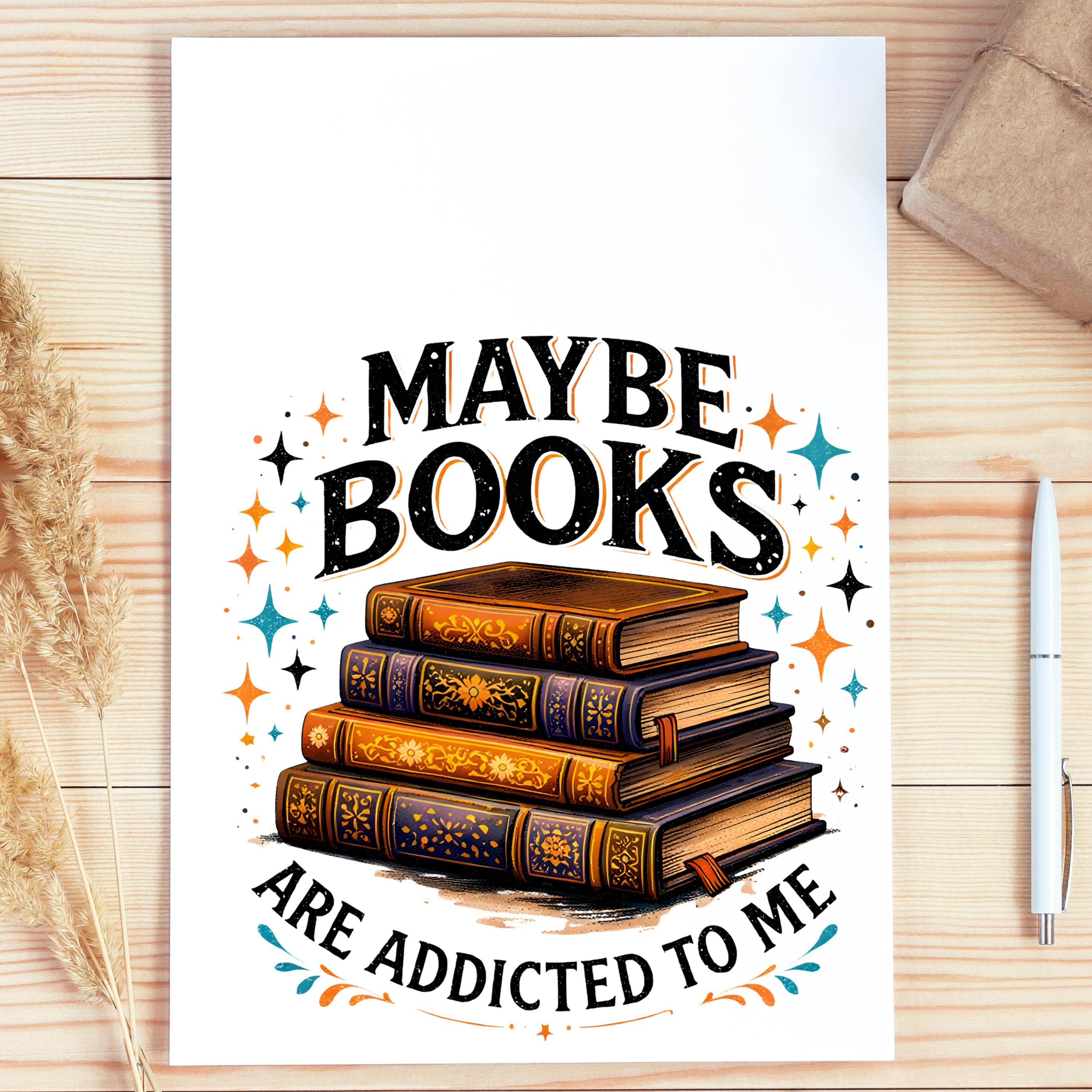Maybe Books Are Addicted To Me PNG, Funny Book Lover Frog Design, Retro Shirt Graphic, Vintage Reading Humor, Stacked Books Sublimation