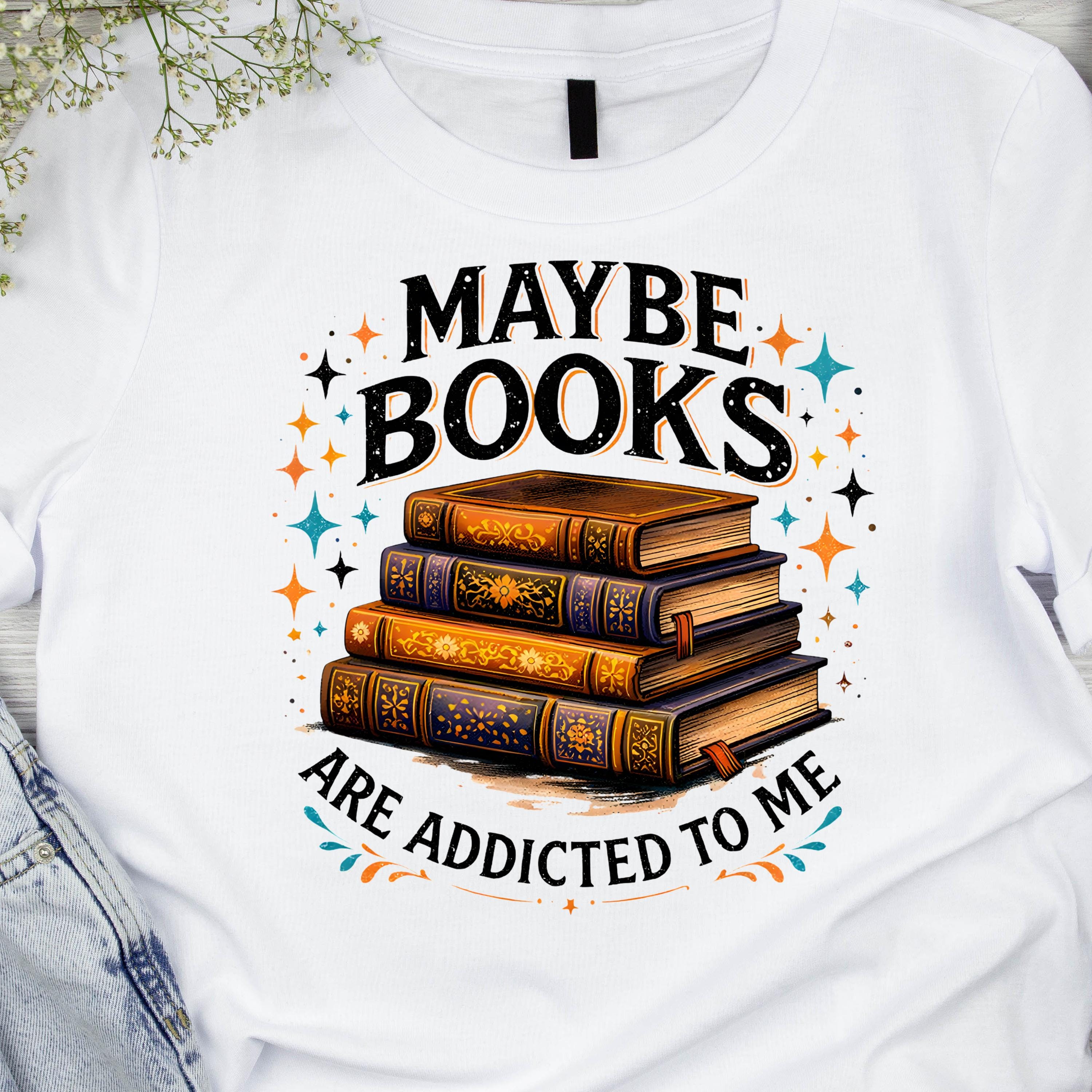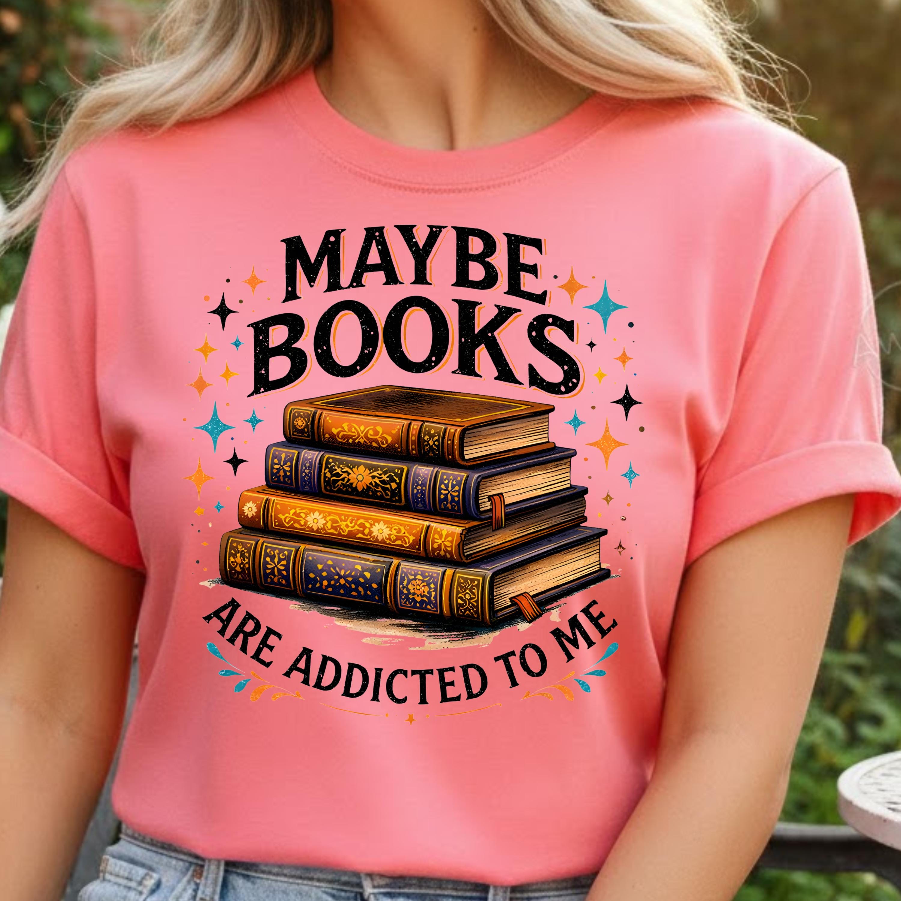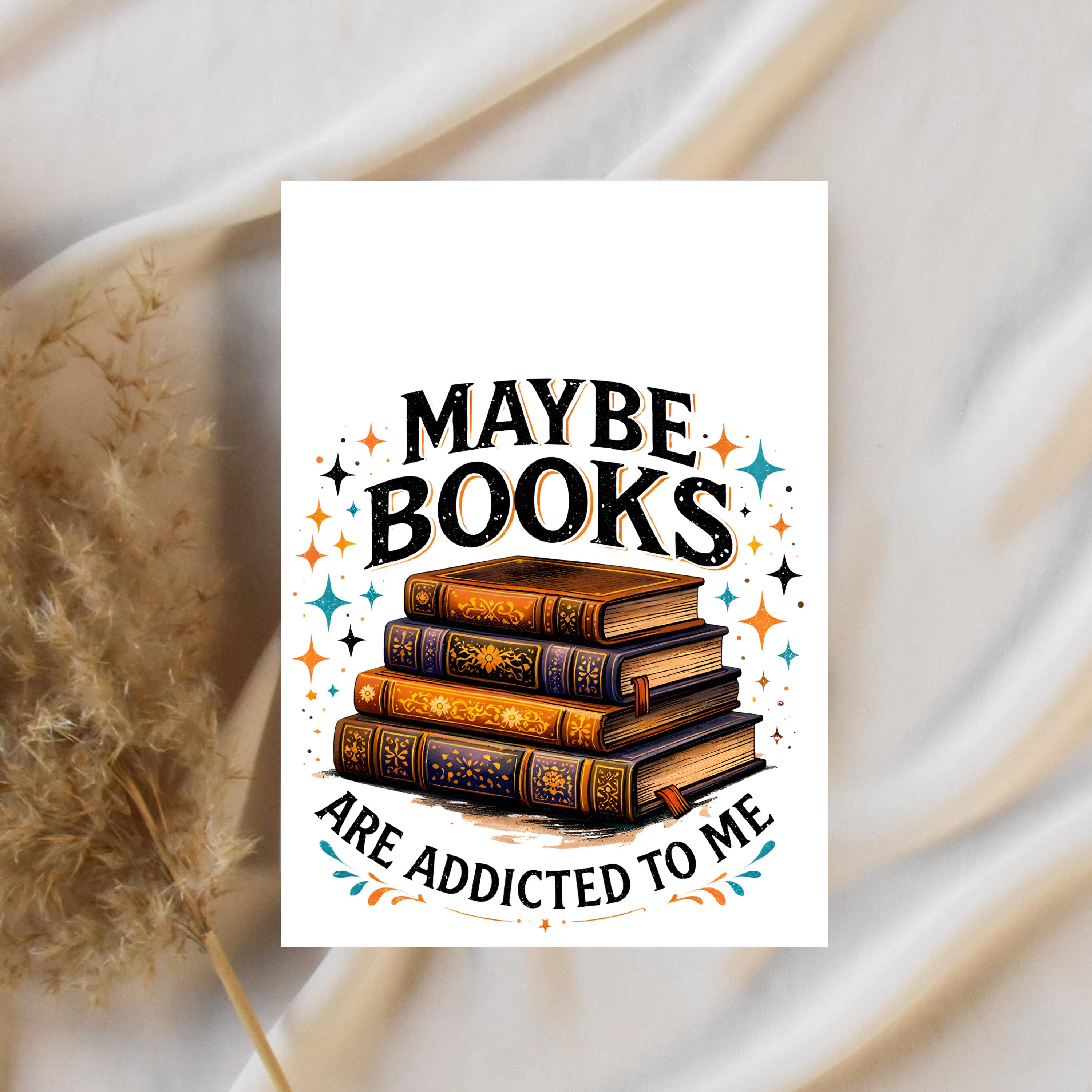 Maybe Books Are Addicted To Me PNG, Funny Book Lover Frog Design, Retro Shirt Graphic, Vintage Reading Humor, Stacked Books Sublimation