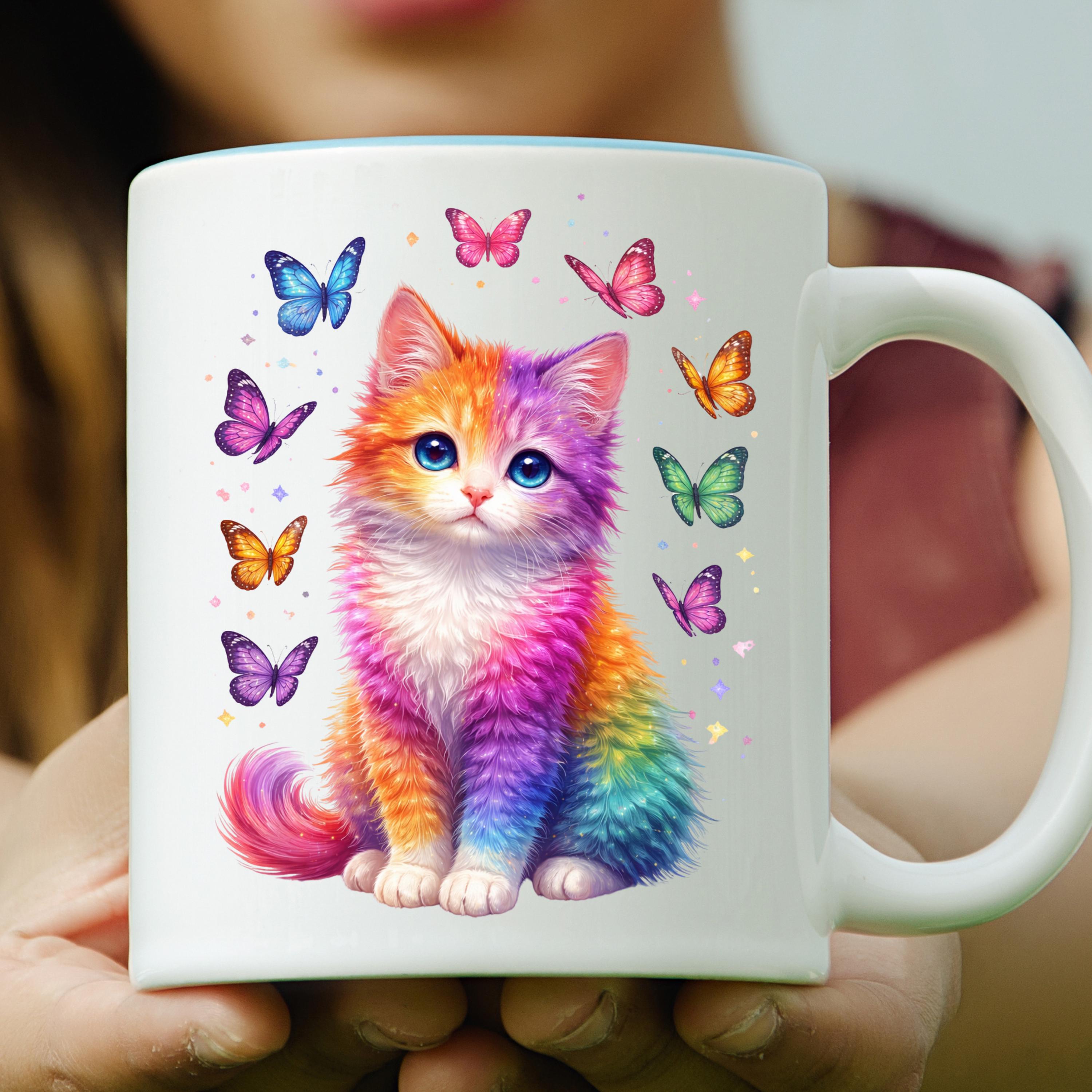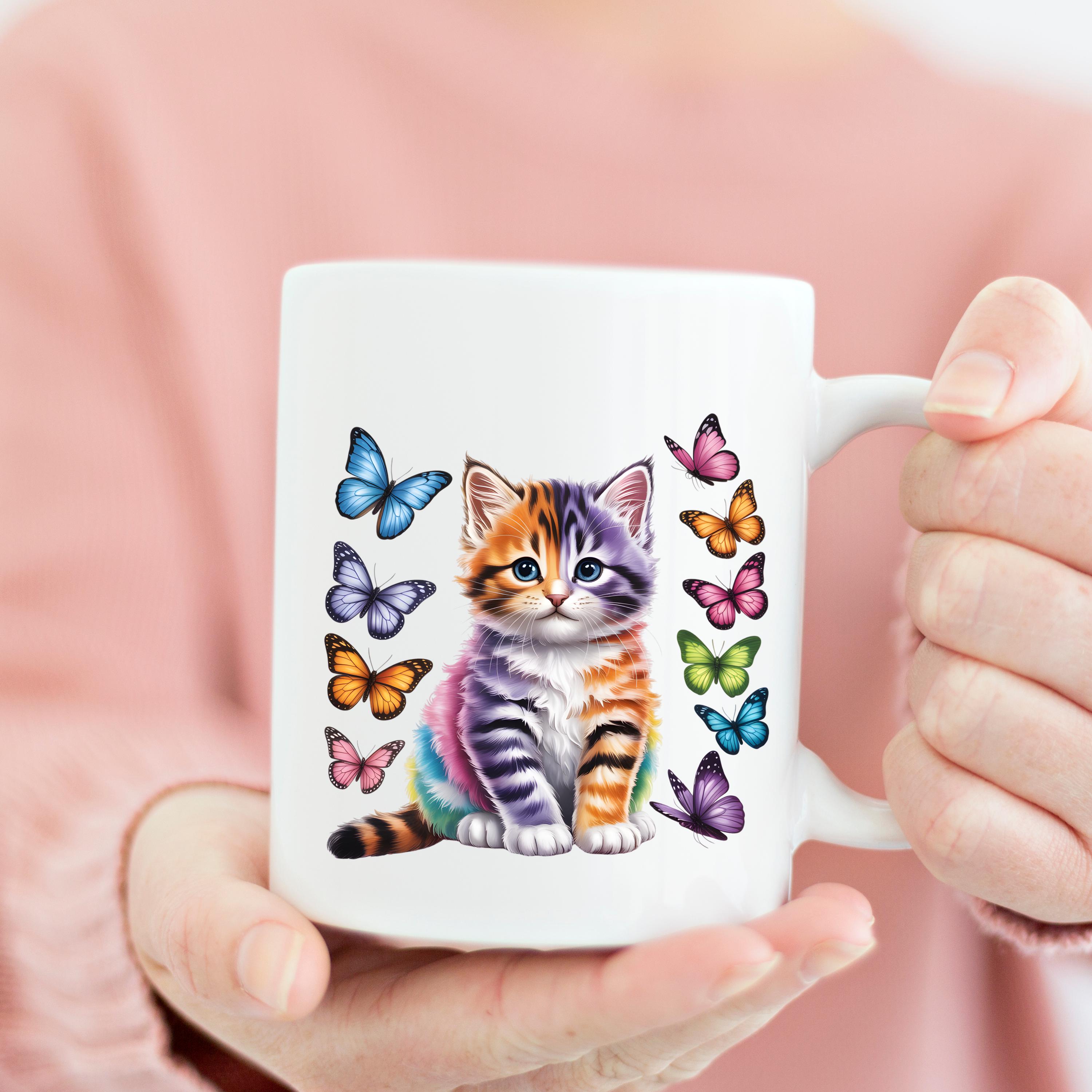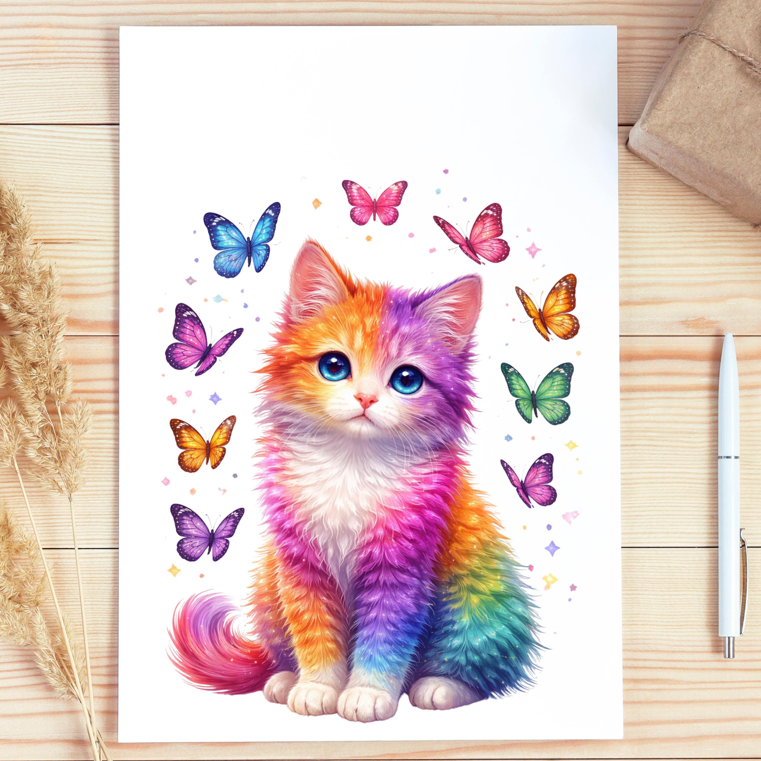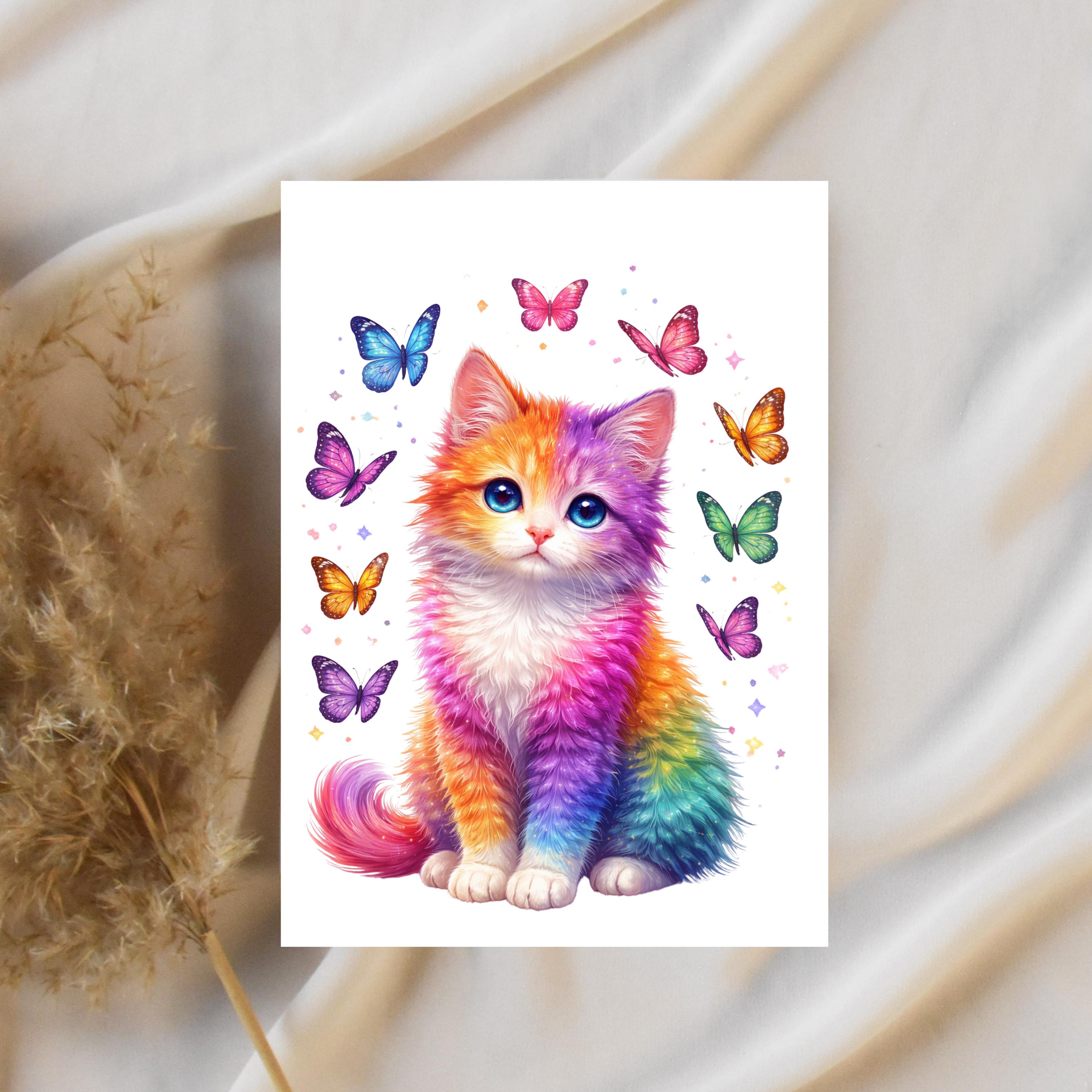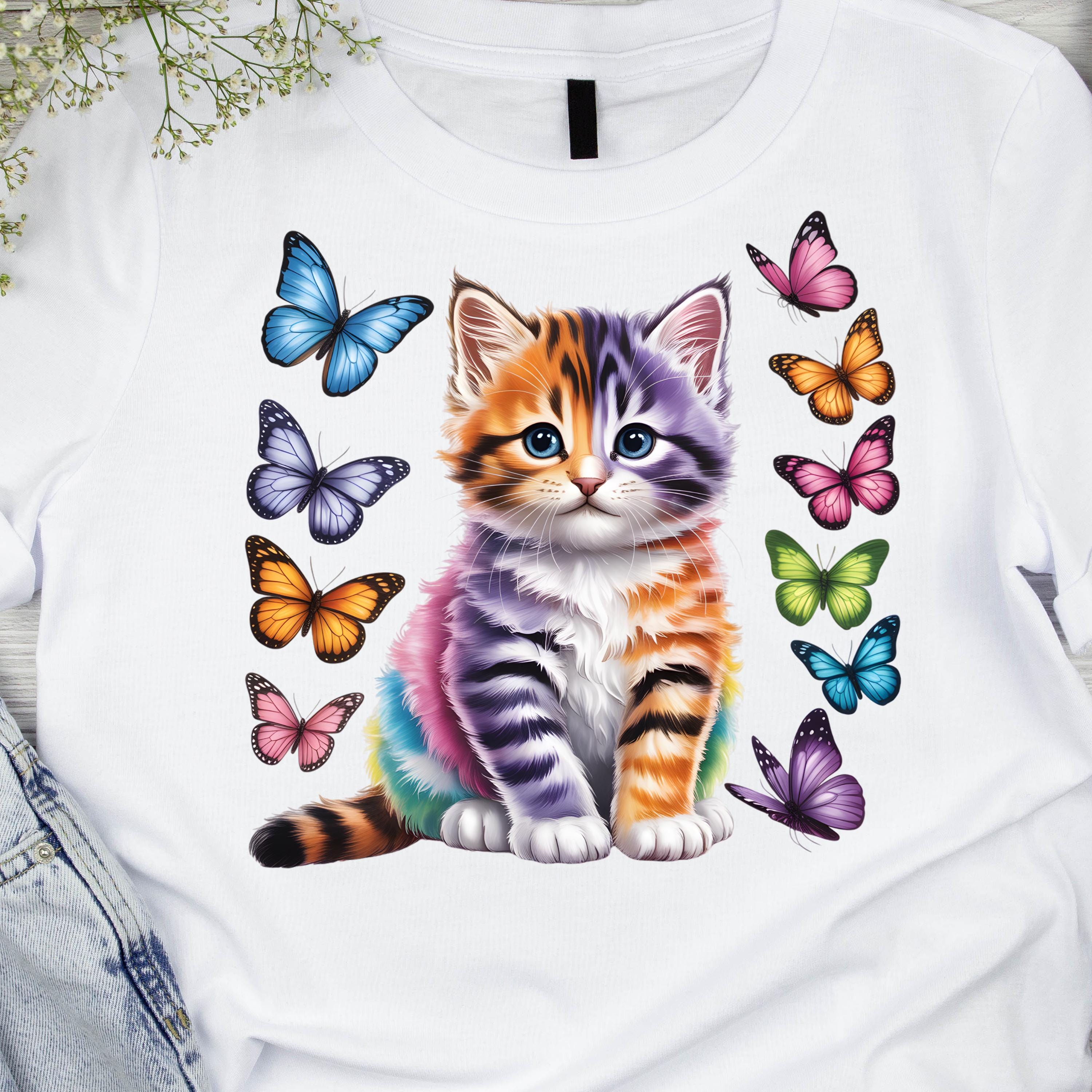 Rainbow Kitten PNG, Colorful Cat Butterfly Design, Cute Kitten Sublimation, T Shirt Graphic, Sweatshirt Art, Vibrant Animal Clipart, Digital Download