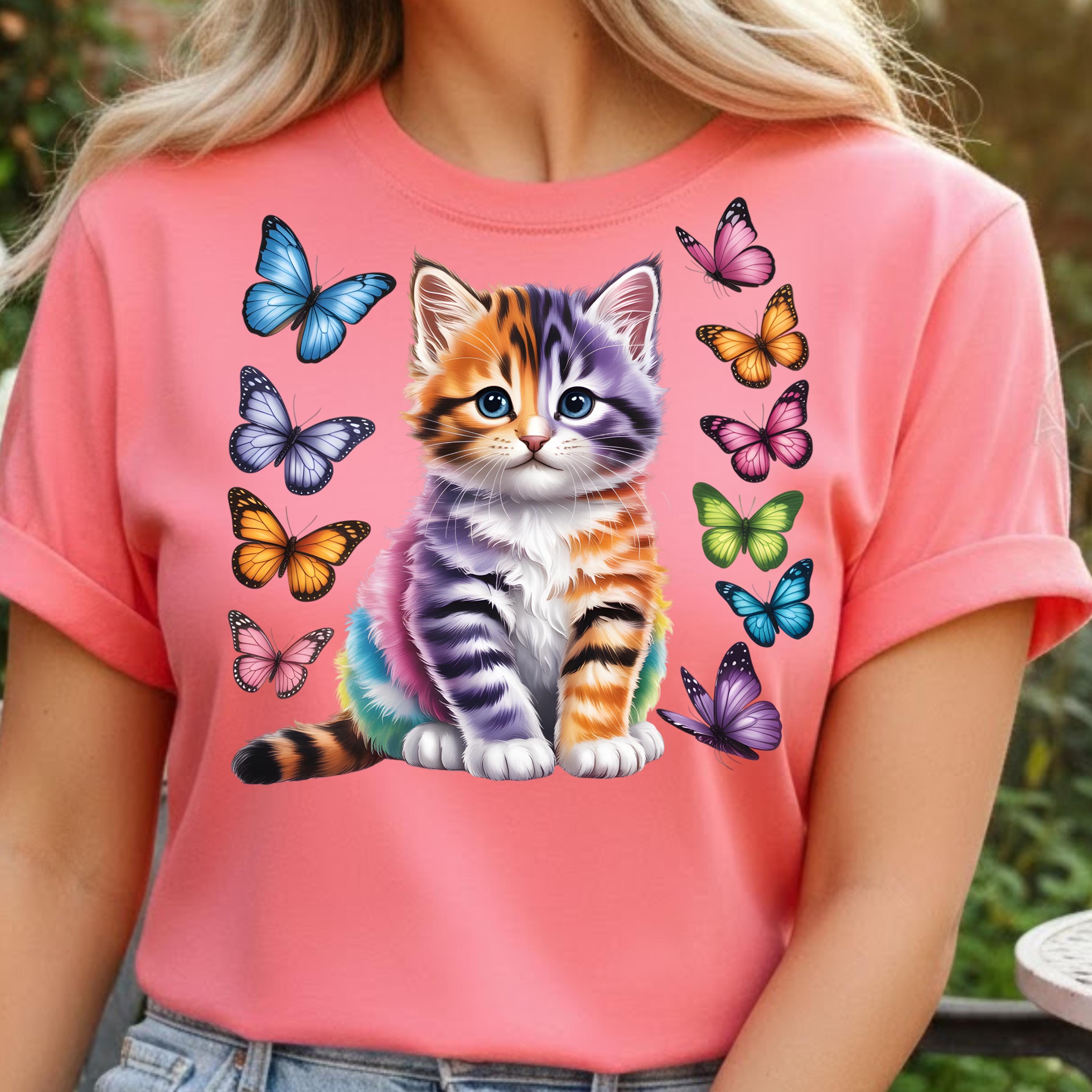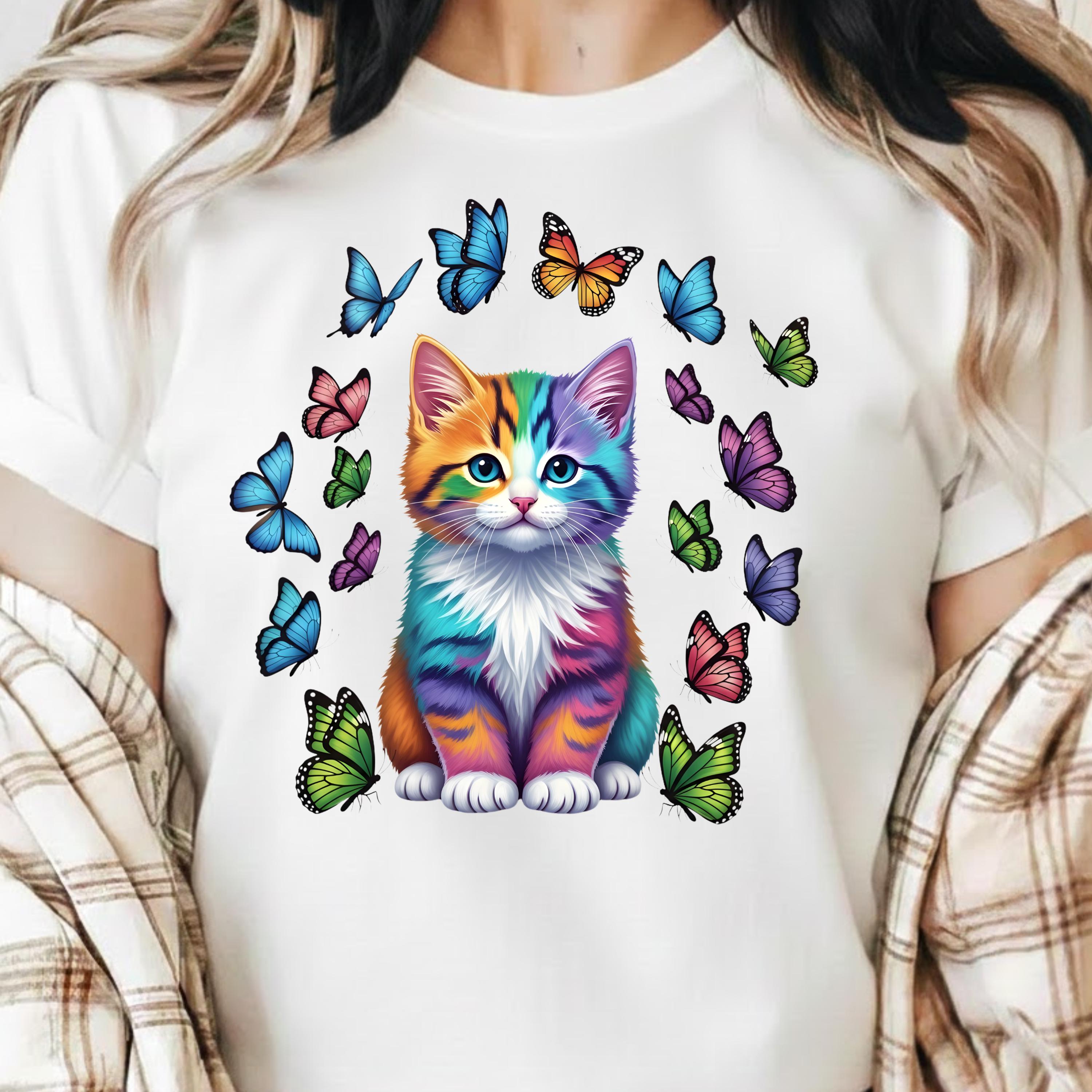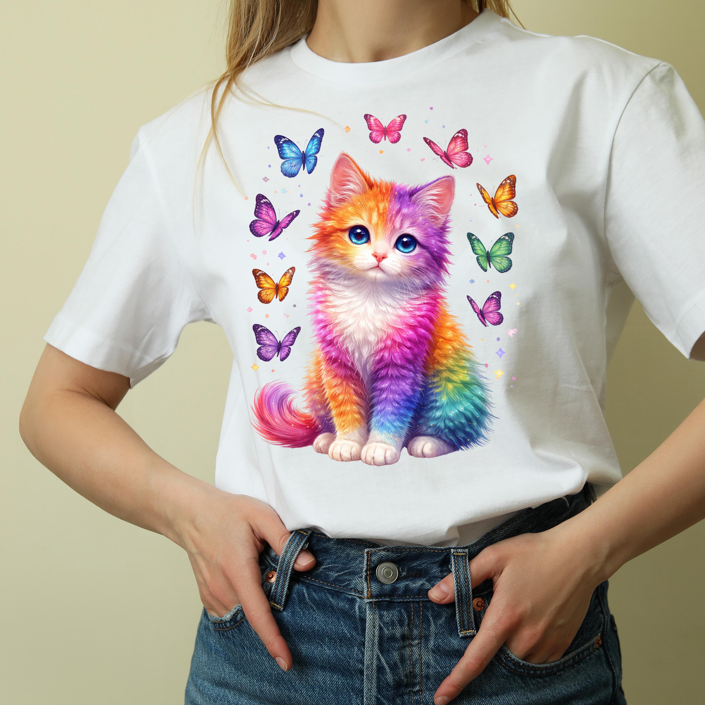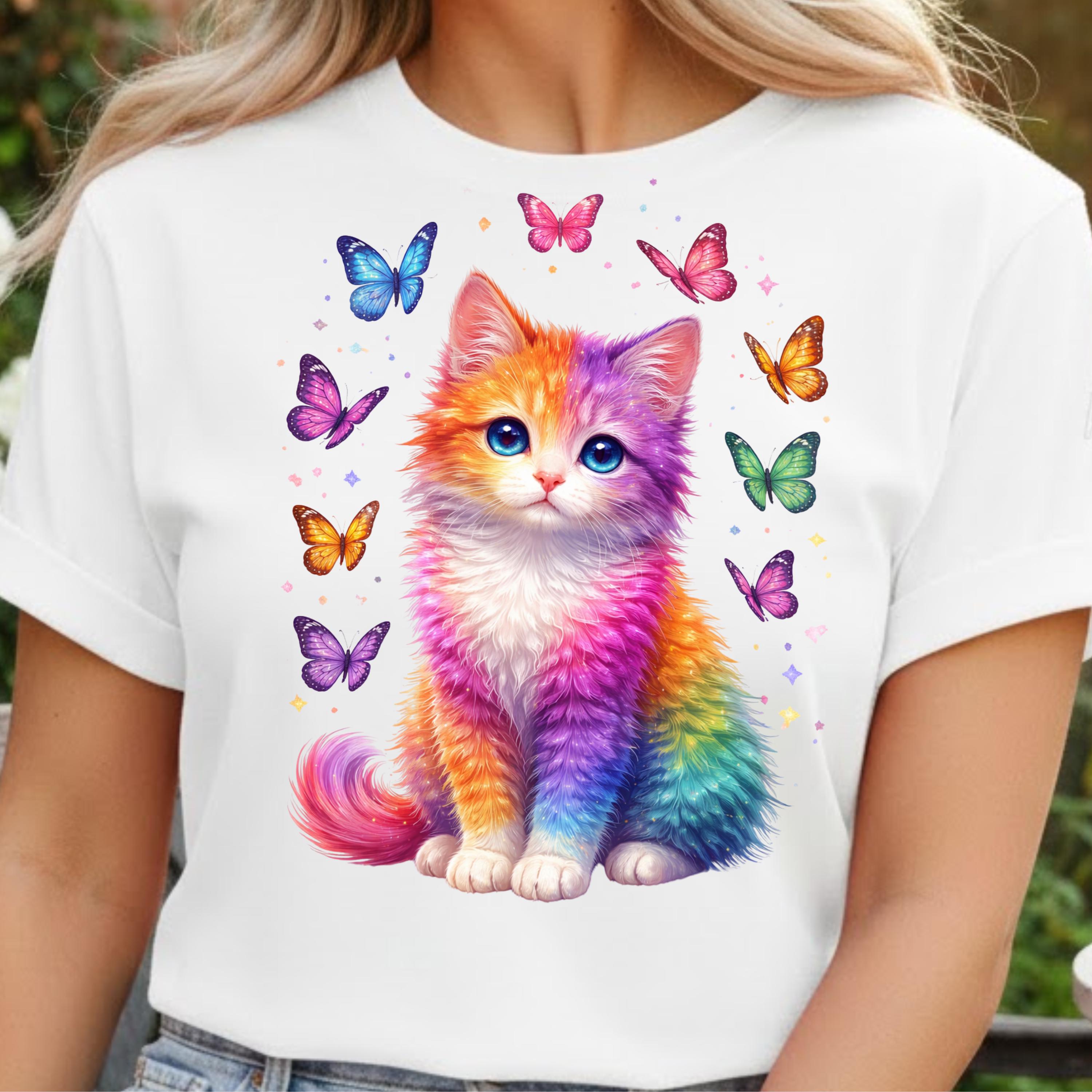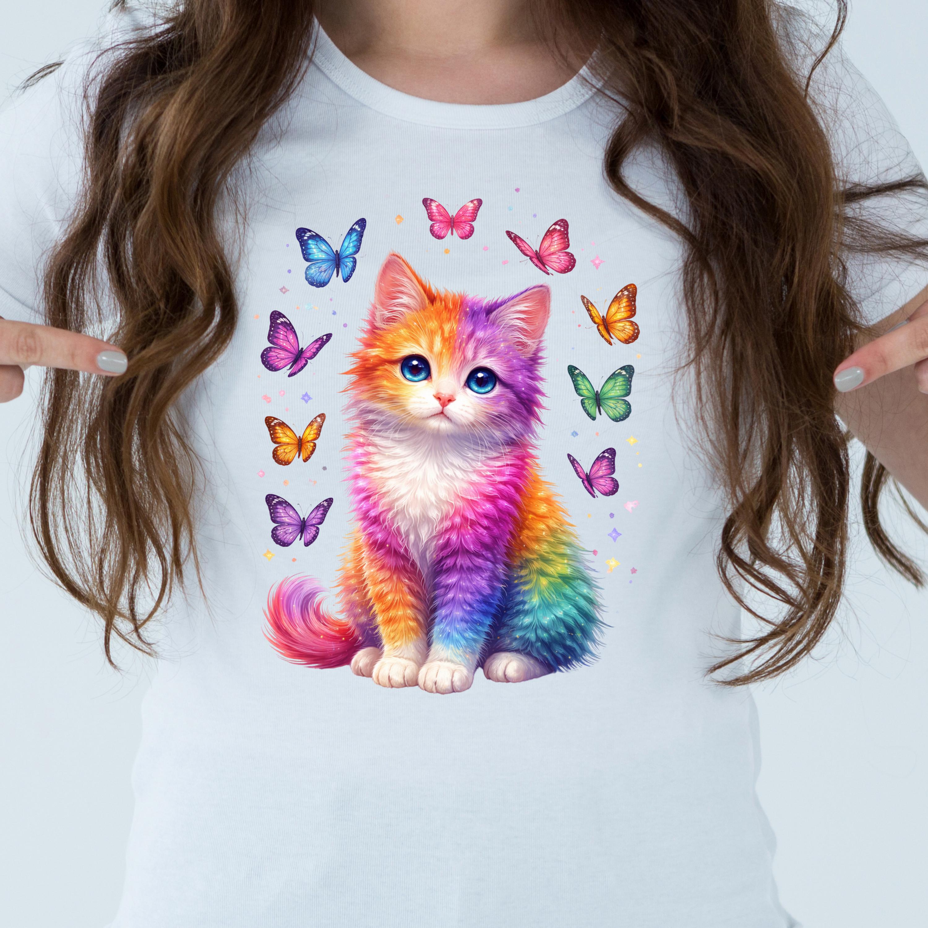 Rainbow Kitten PNG, Colorful Cat Butterfly Design, Cute Kitten Sublimation, T Shirt Graphic, Sweatshirt Art, Vibrant Animal Clipart