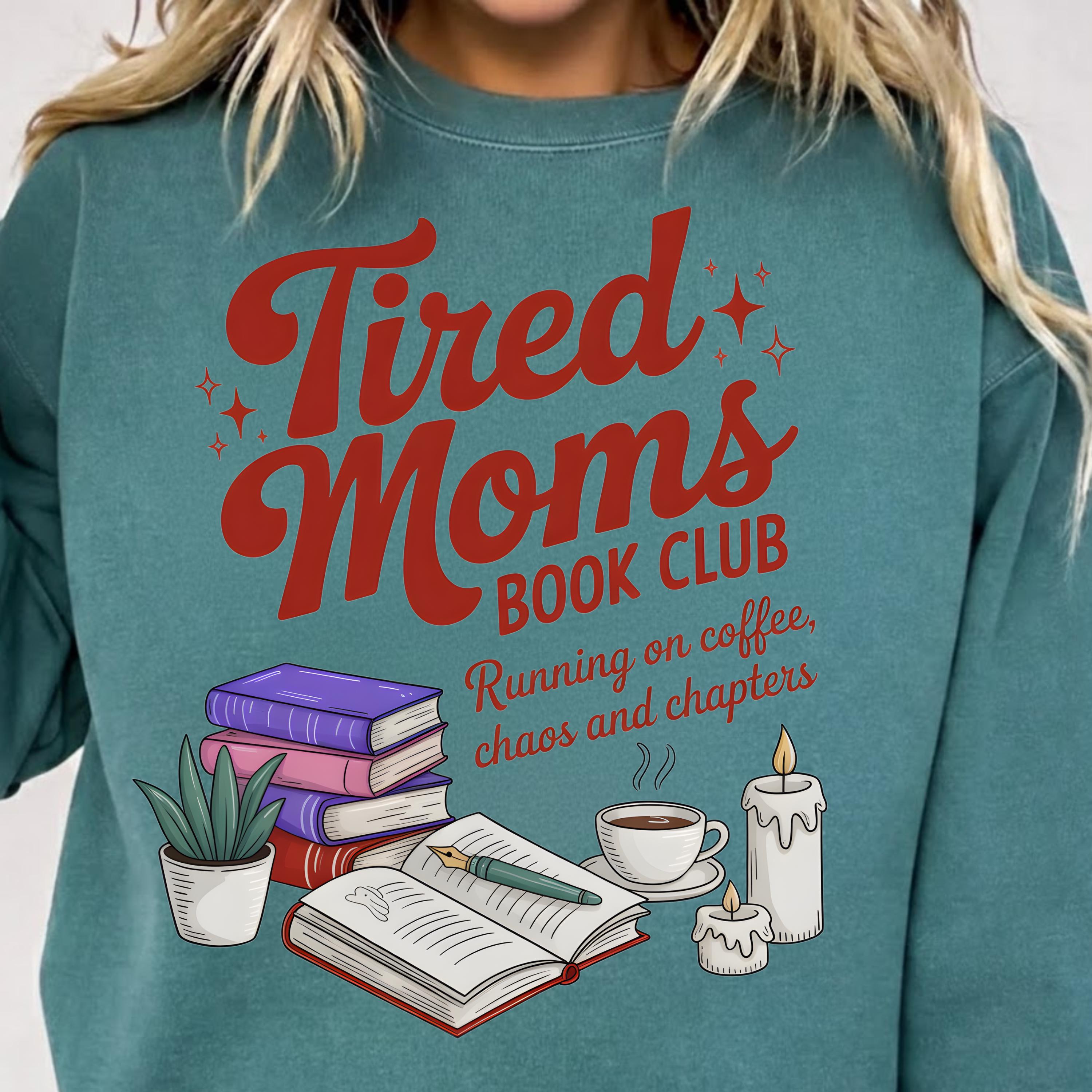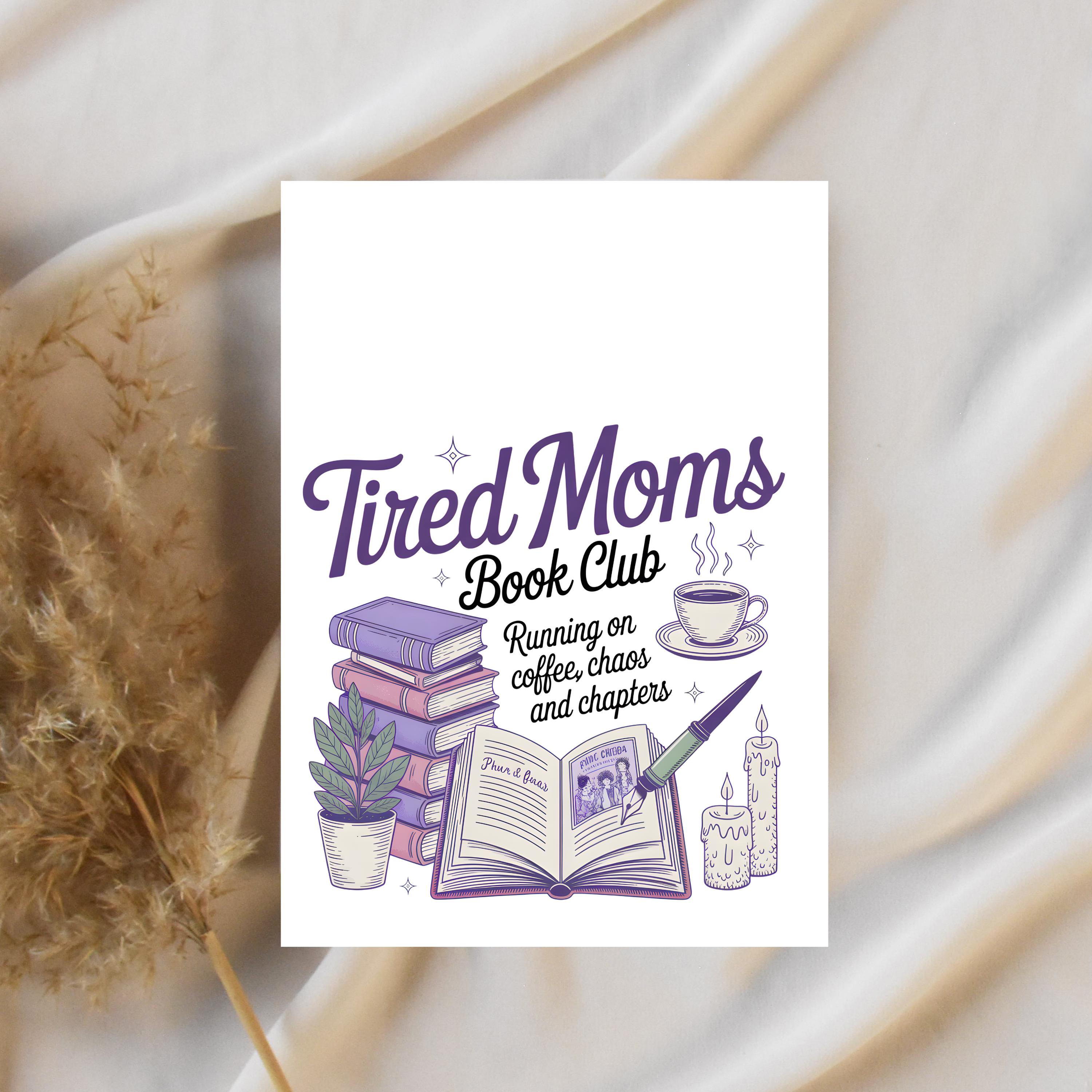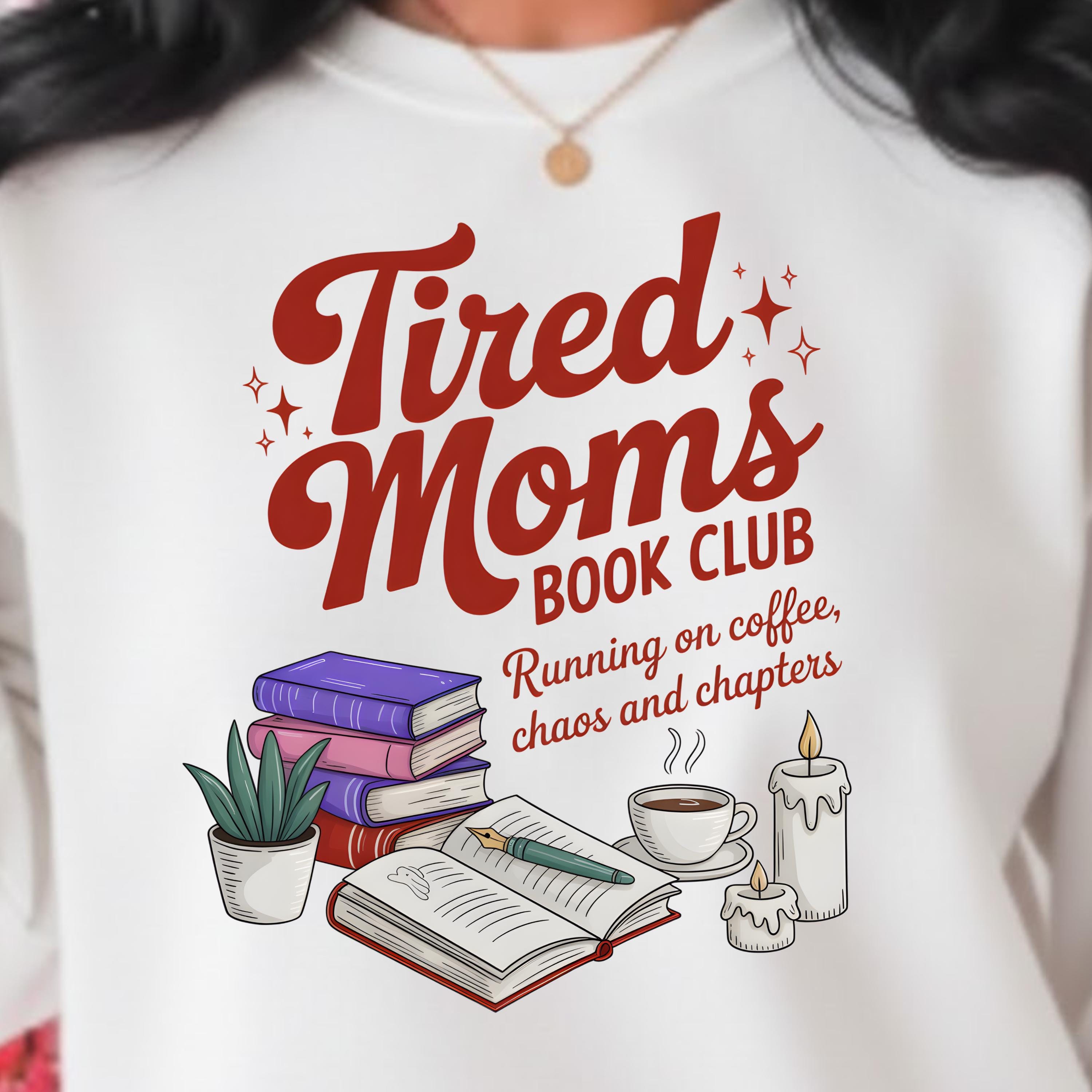Tired Moms Book Club PNG, Funny Coffee Chaos Reading Momlife Design, Retro Book Lover Graphic, Trendy Mom Shirt,Sublimation,Digital Download