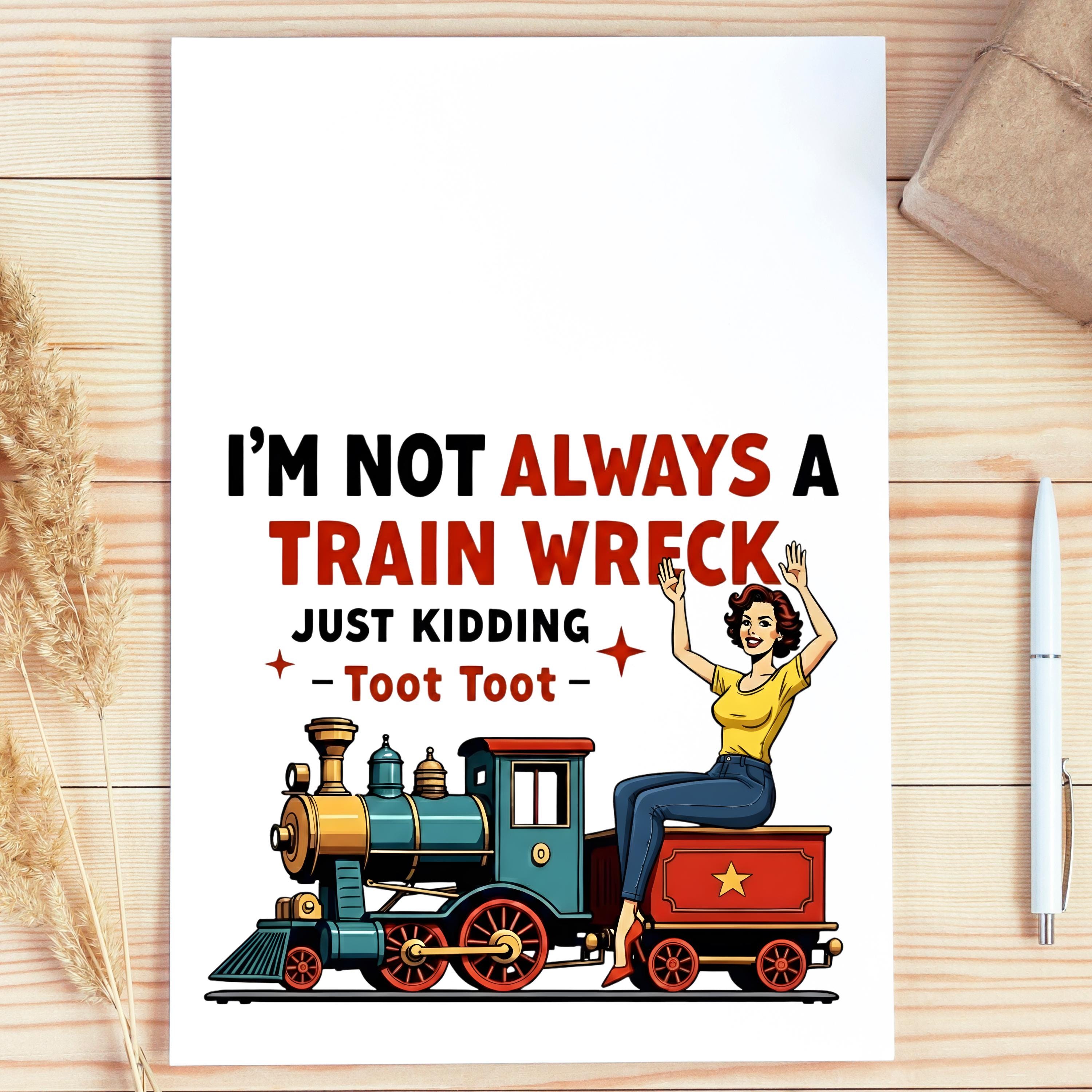 Funny Train Wreck Shirt, Sarcastic Quote Tee, Toot Toot Graphic Shirt, Vintage Locomotive Humor T Shirt, Gift for Train Lovers