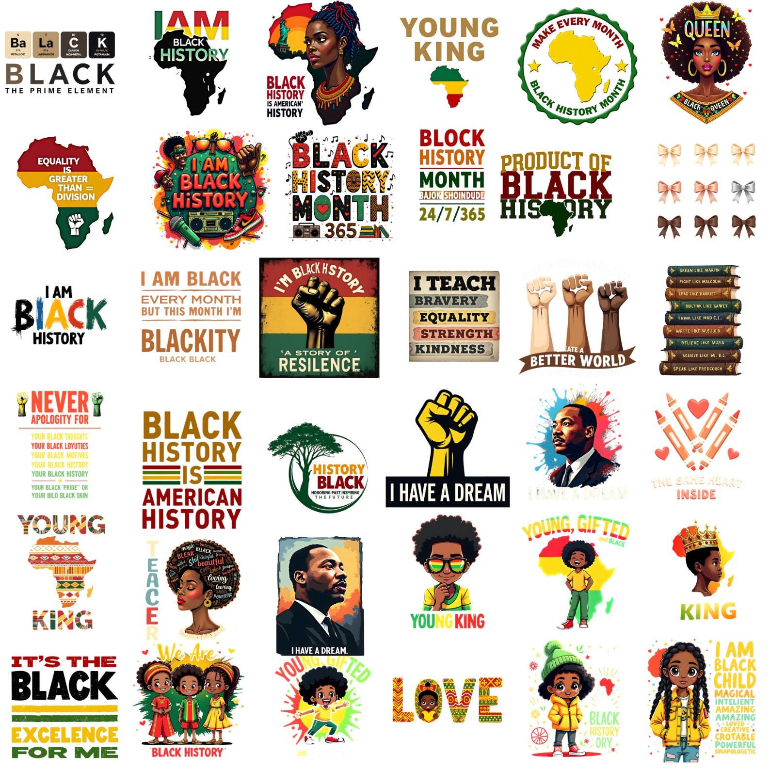 Create meaningful and inspiring projects with this Black History Month PNG Bundle featuring powerful symbols, uplifting messages, and freedom-themed designs inspired by history, unity, and equality. These designs are perfect for educational projects, apparel, gifts, posters, and awareness creations.