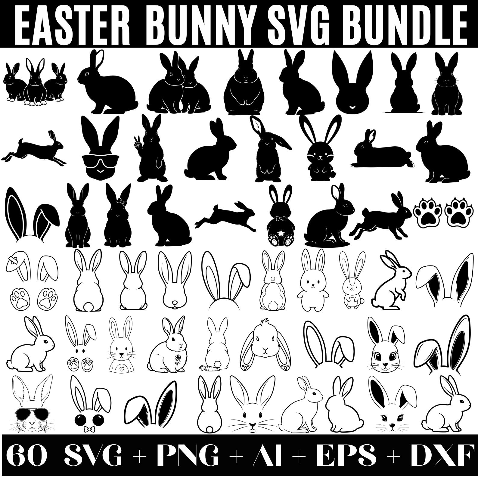60 Easter Bunny SVG Bundle, Bunny Shape SVG, Peeking Bunny Svg, Bunny Face SVG, Rabbit Svg, Spring Bunny Svg, Bunny Silhouette Outline