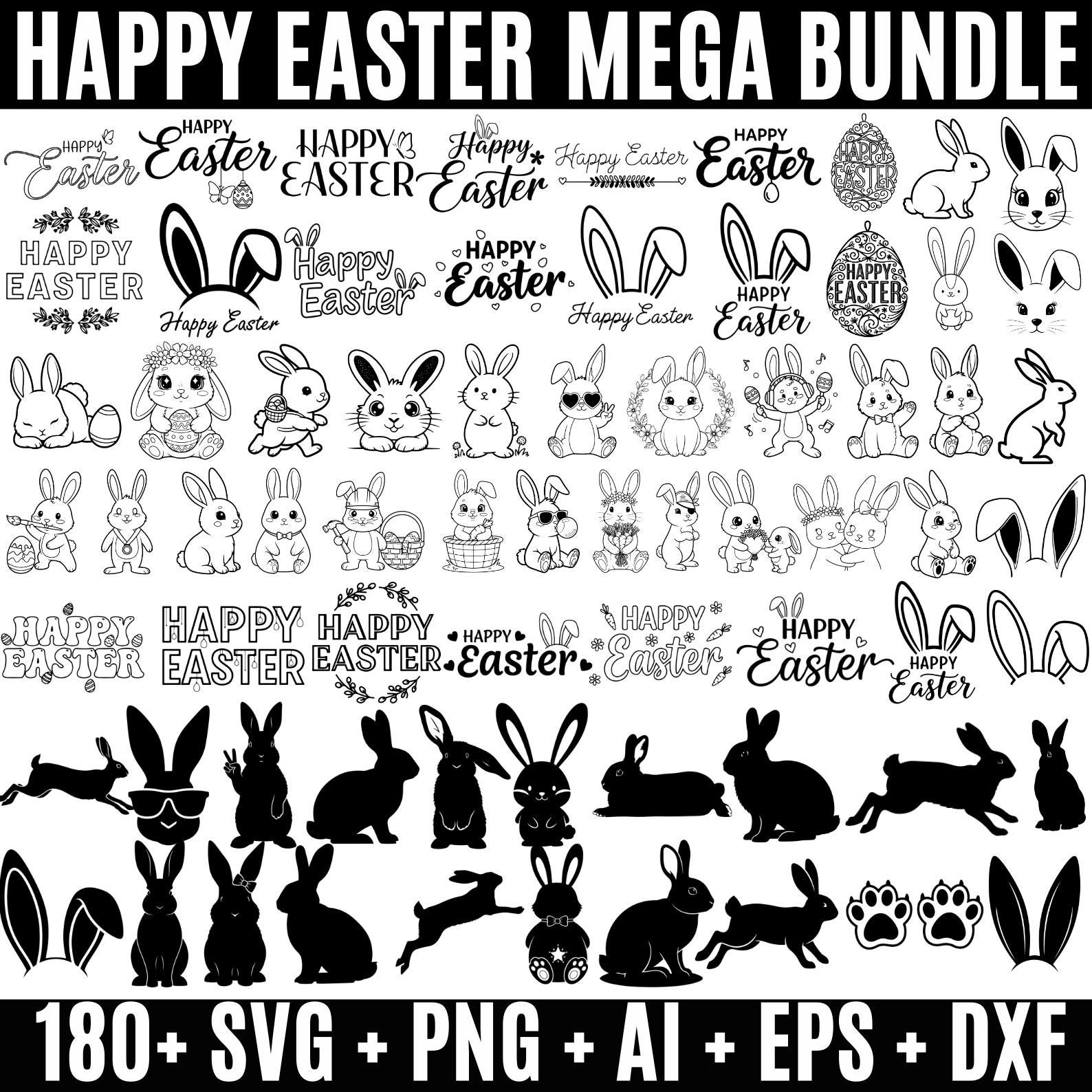 180+ Easter Svg Mega Bundle, Happy Easter SVG, Easter Bunny Svg, Easter Kids SVG, Rabbit PNG, Spring Svg Designs, Cricut Silhouette Svg