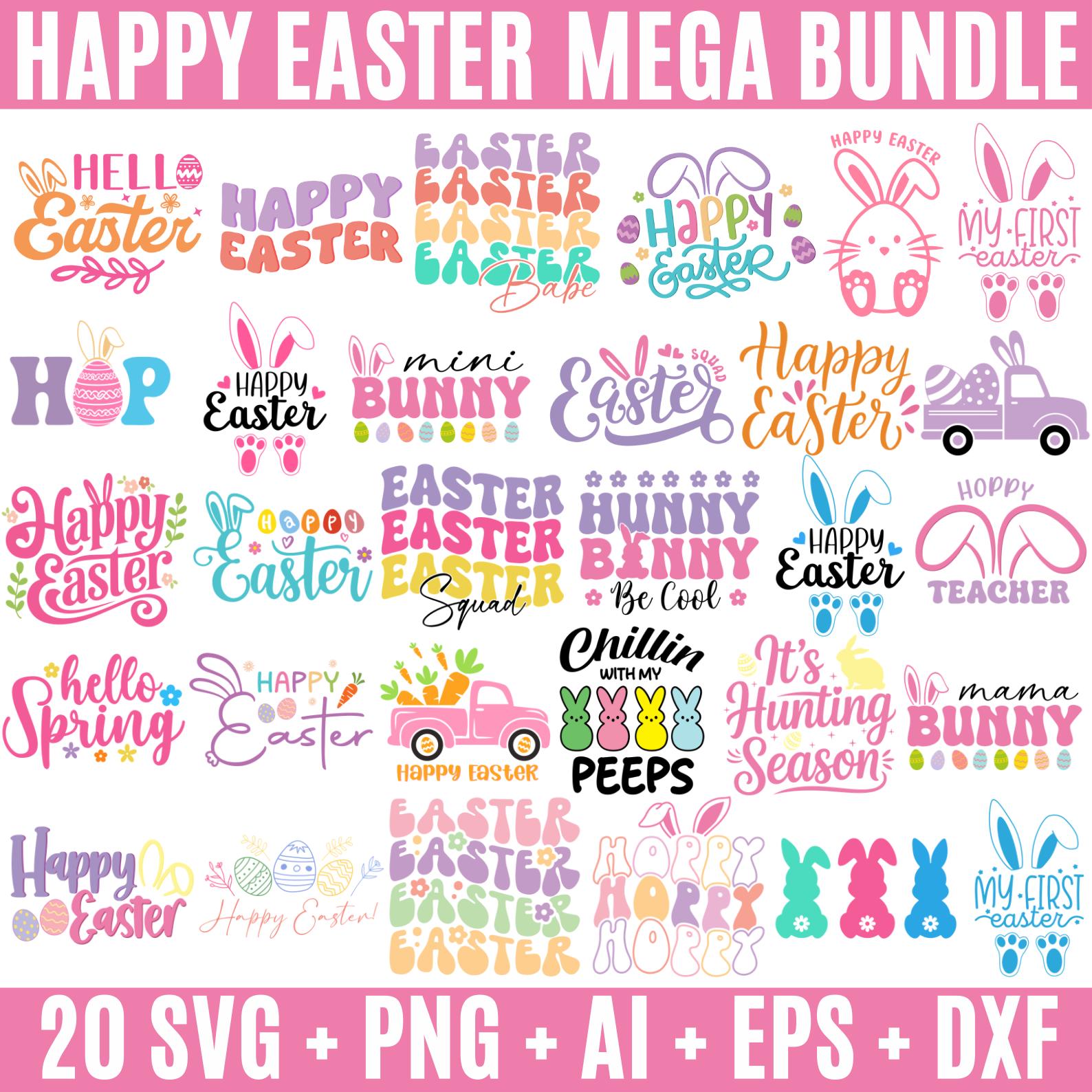 20 Happy Easter SVG Bundle, Spring Bunny, Easter Quotes Png, Easter Kids Svg, Hello Easter JPG, Easter Egg Svg, SVG Files for Cricut