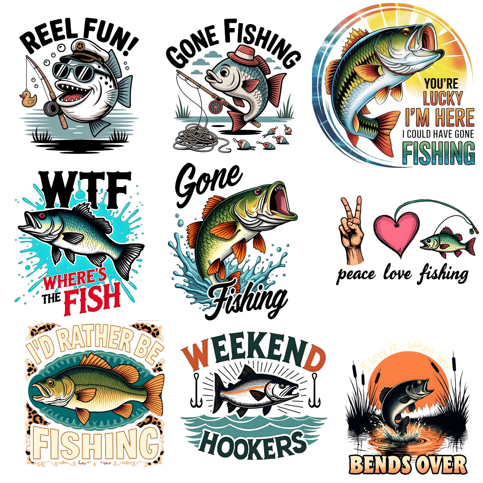 Funny Fishing Quotes PNG Bundle, Fishing Humor Sayings, Fisherman Quote Designs, Vintage Fishing Badges, Bass Trout Art, T-Shirt & Sticker Graphics, Transparent PNG, Digital Download