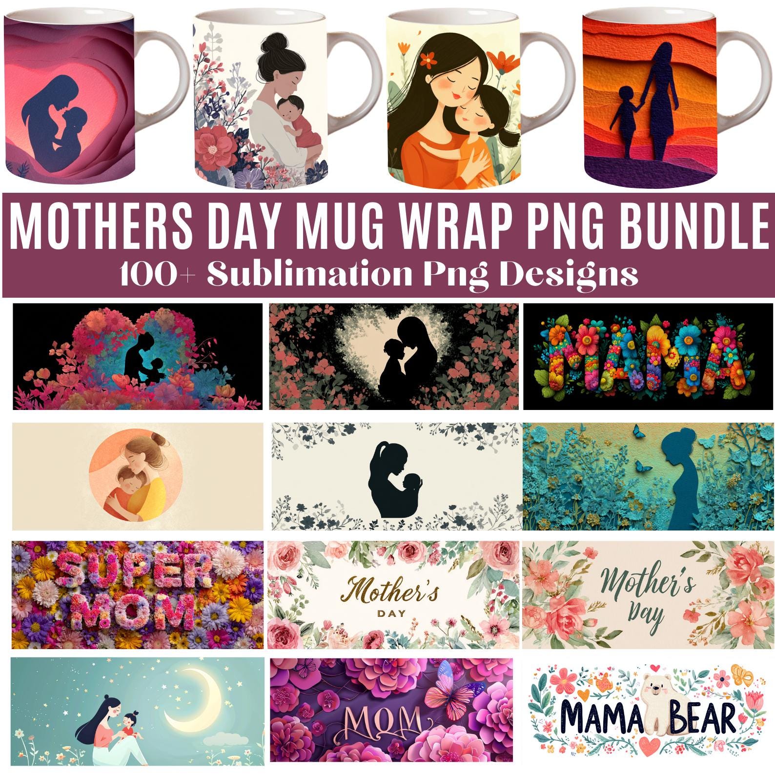 100+ Mothers Day Mug Wrap Bundle, Mom Sublimation PNG, 11oz Mug Wrap Designs, Floral Mom Mug, Best Mom Ever Mug PNG, Coffee Cup Wrap Bundle