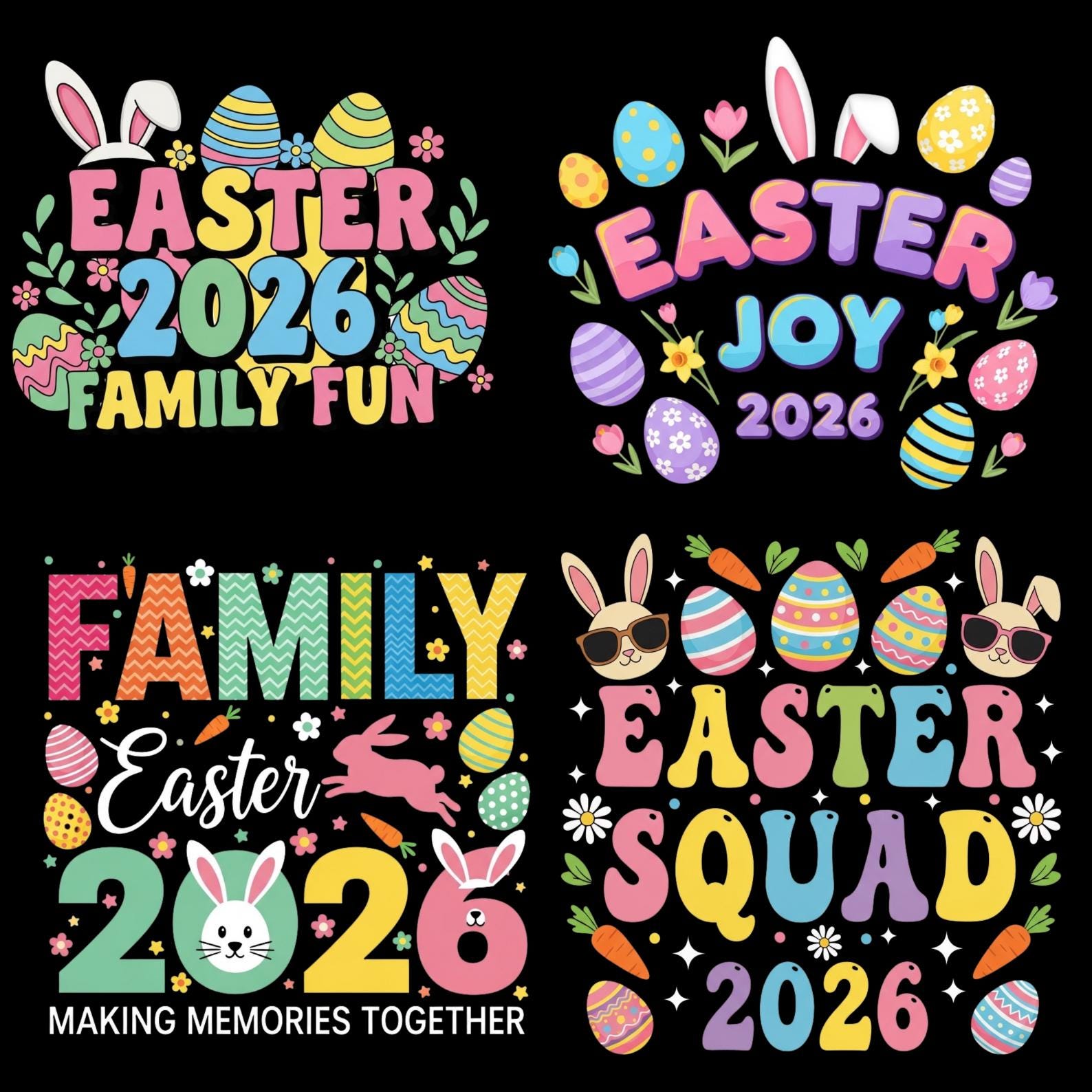Celebrate the joy of Easter with this Easter 2026 PNG Bundle. This collection includes cute bunny designs, Easter egg hunt graphics, and funny Easter quotes perfect for family celebrations and matching outfits.