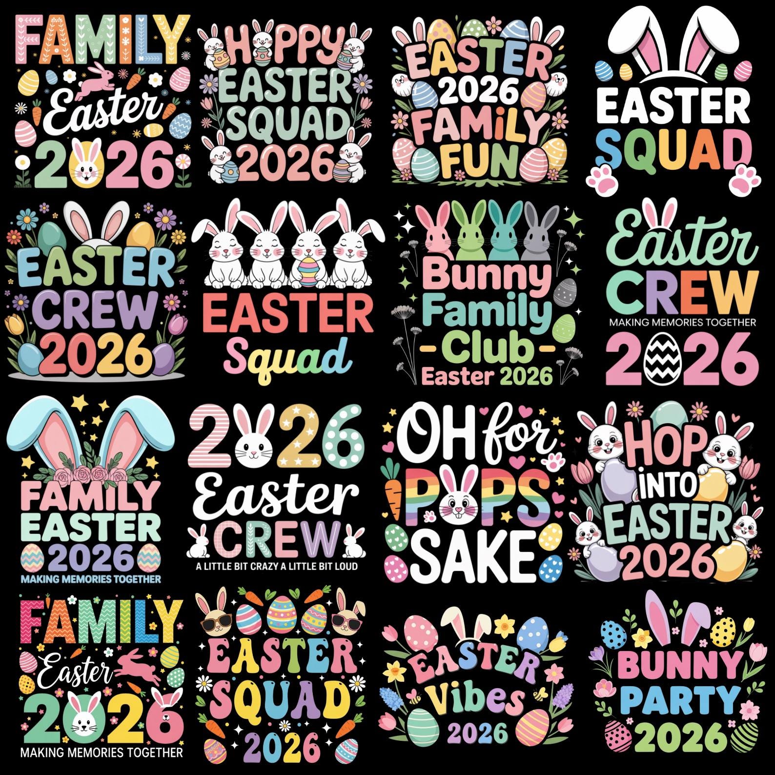 15+ Easter 2026 PNG Bundle, Family Easter Bunny PNG, Easter Squad Shirt Designs,Cute Bunny Egg Hunt, Funny Easter Quotes, Spring Sublimation