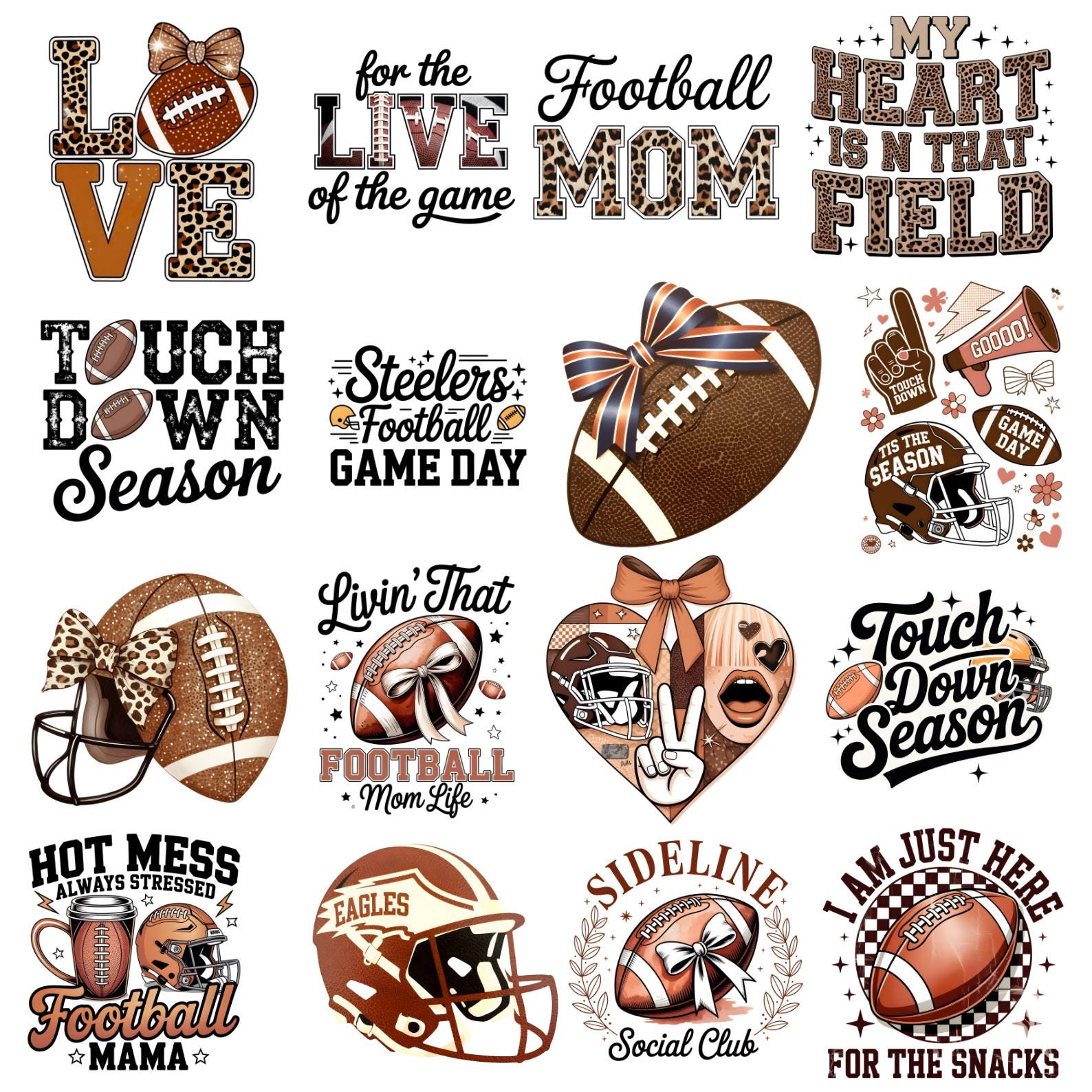 Get ready for game day with this Football PNG Bundle. This collection includes 15+ retro-style football designs, game day graphics, and football mom quotes perfect for sports lovers and football season.