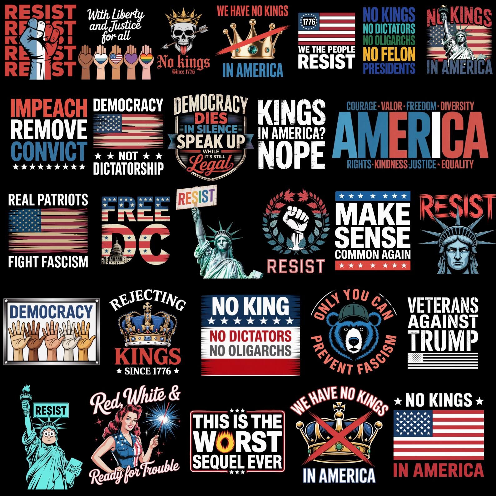 30+Anti-Trump No Kings Protest Sign PNG Bundle, Protect Democracy Printable Signs, True Patriots Resistance Digital Download, T-Shirt Design
