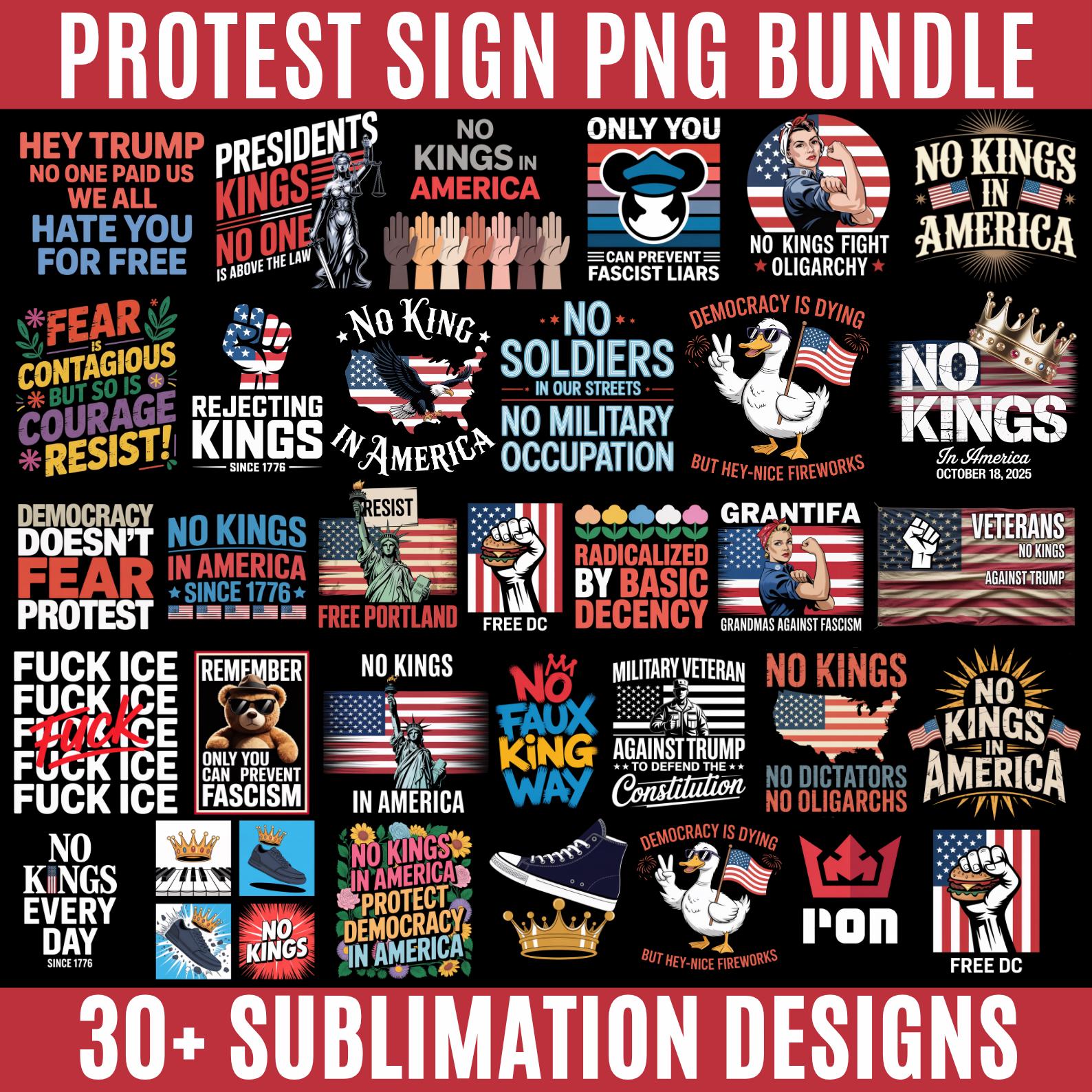Anti-Trump No Kings Protest Sign PNG Bundle, Protect Democracy Printable Signs, True Patriots Resistance Digital Download, T-Shirt Design