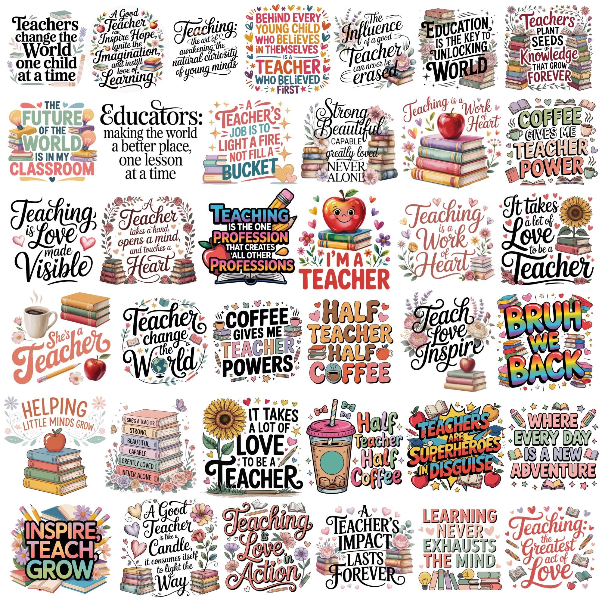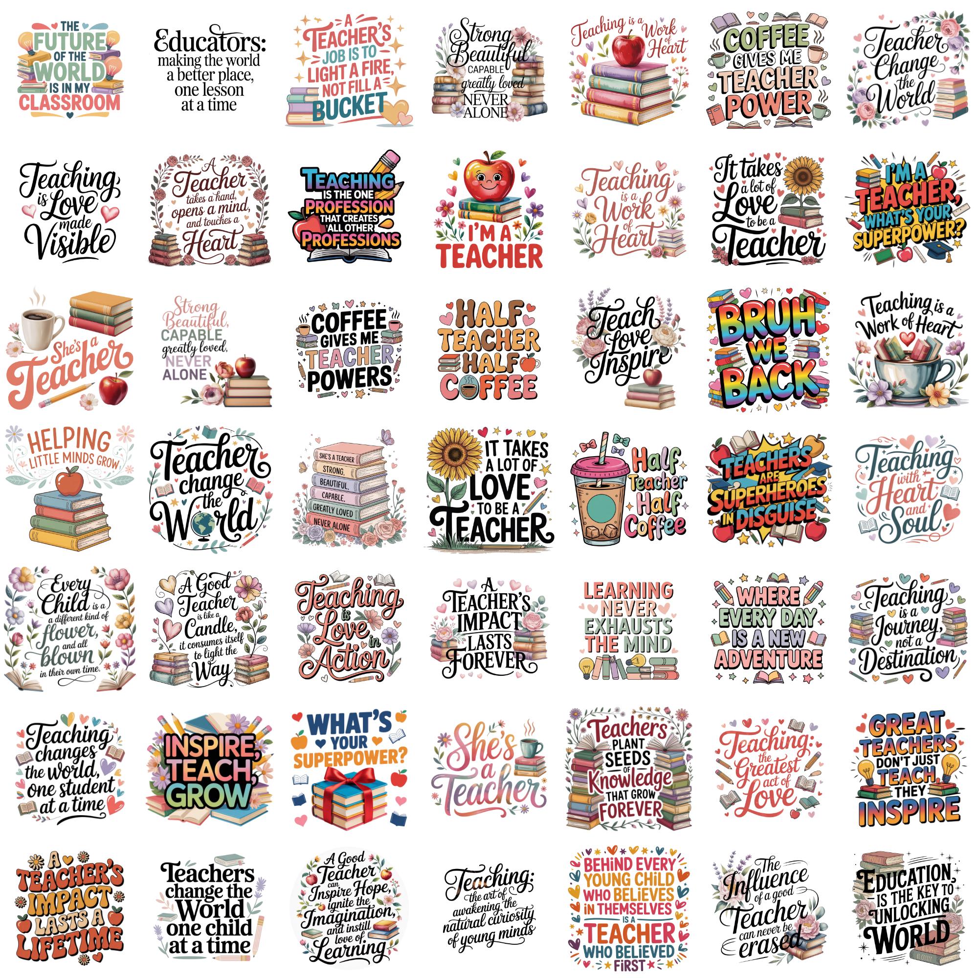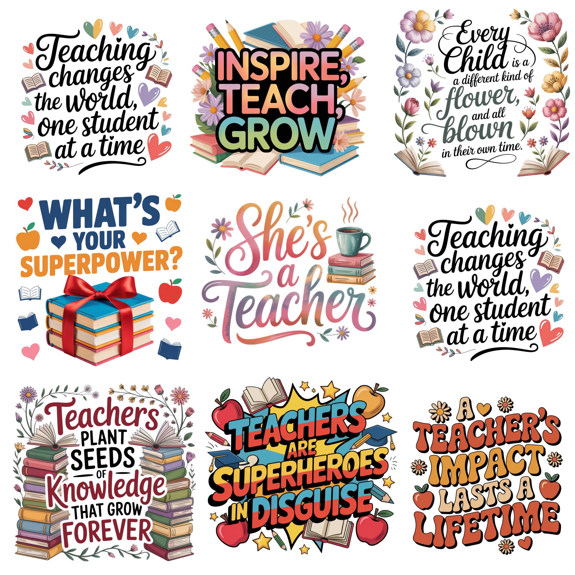 Teacher Quotes PNG Bundle, Teacher Appreciation PNG, Back to School Clipart, Teacher Sublimation Designs, Educator PNG, Teacher Gift, School