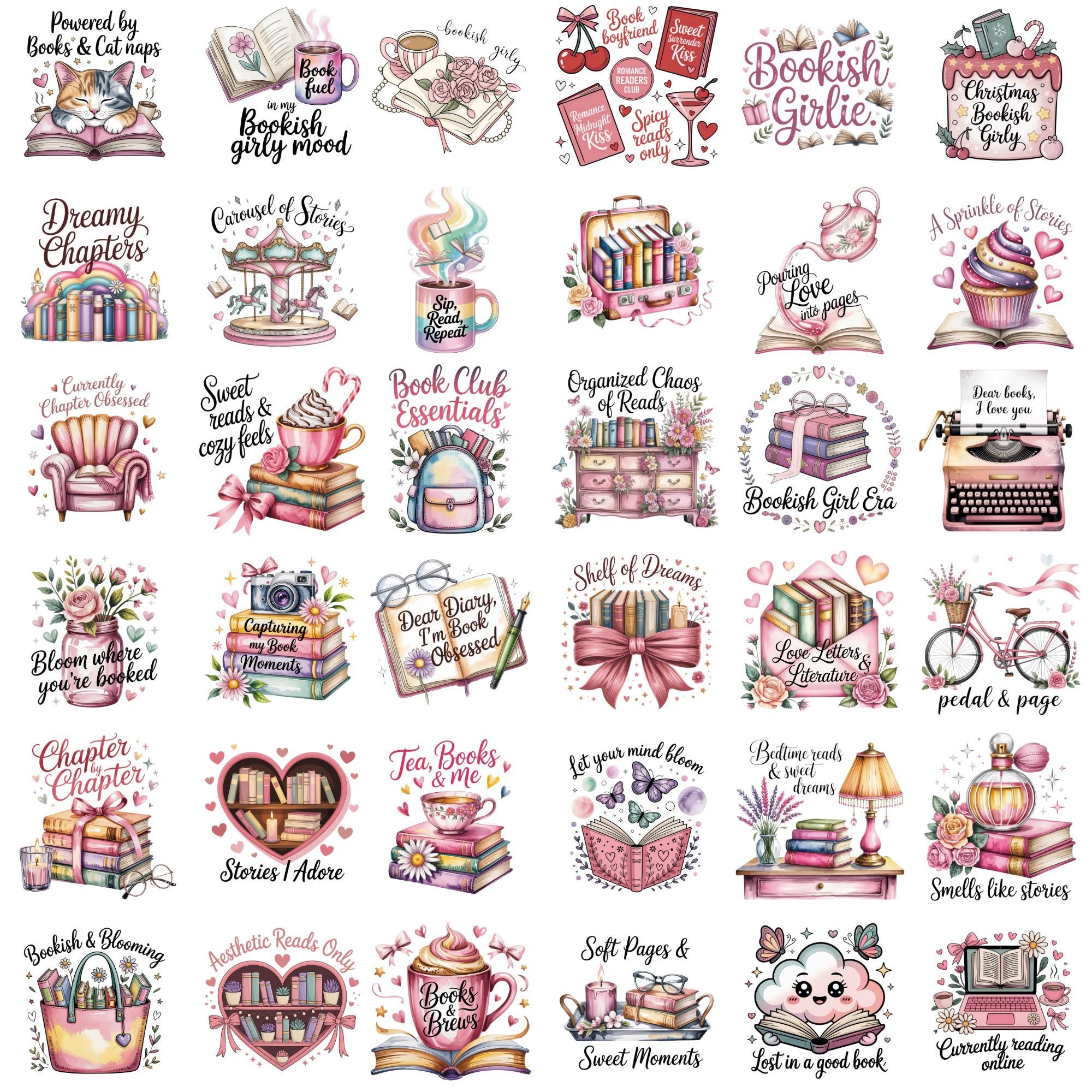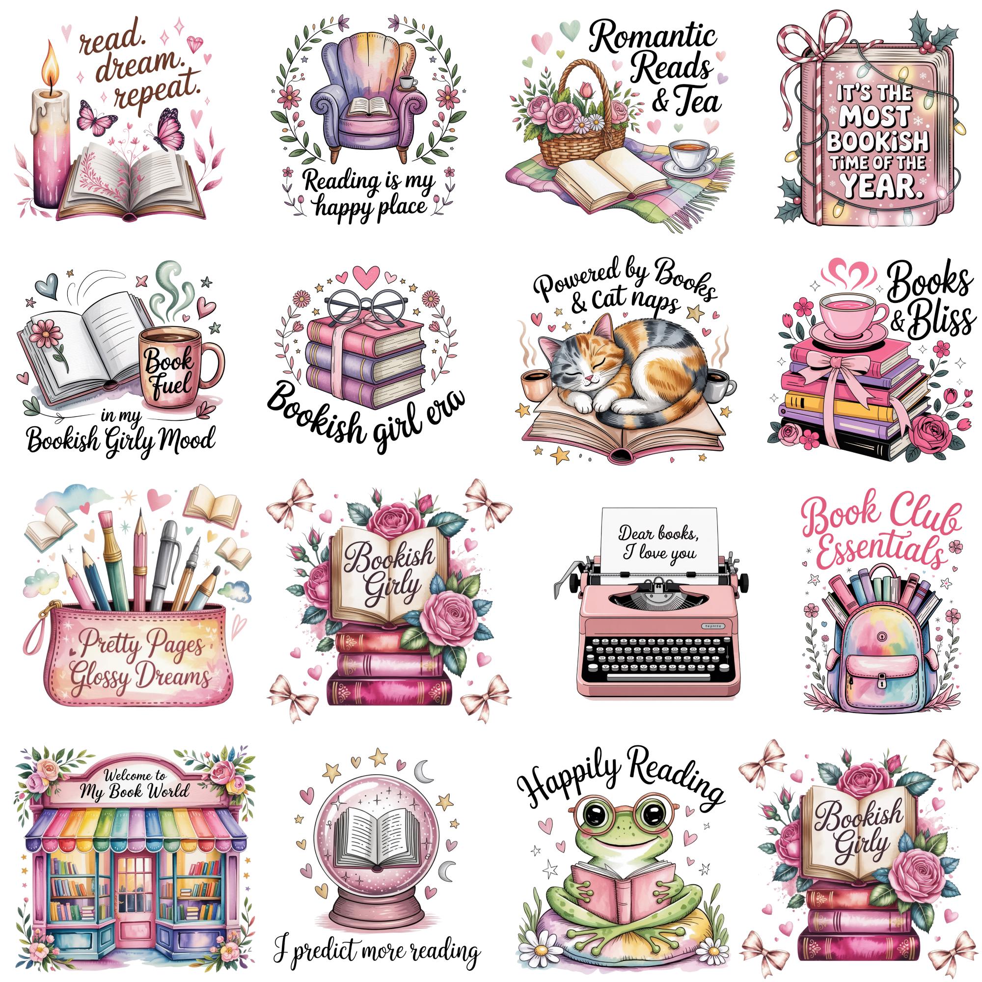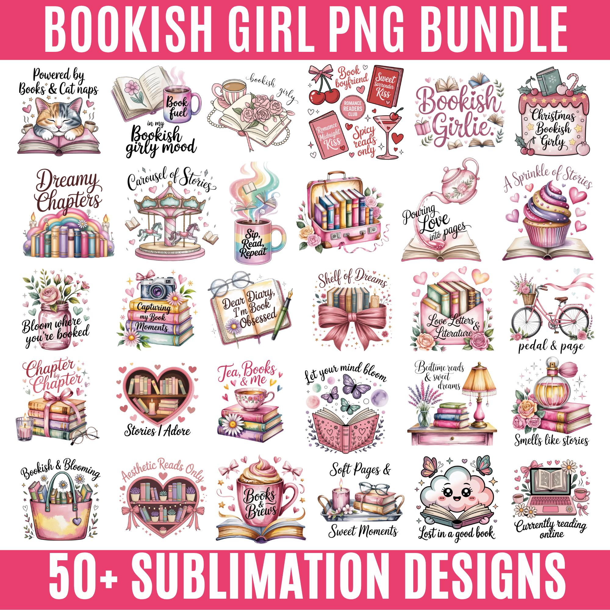 Bookish Girlie PNG Bundle, Book Lover Quotes, Cute Reader Clipart, Bookworm Sayings, Trendy Sticker Sublimation T-Shirt Design