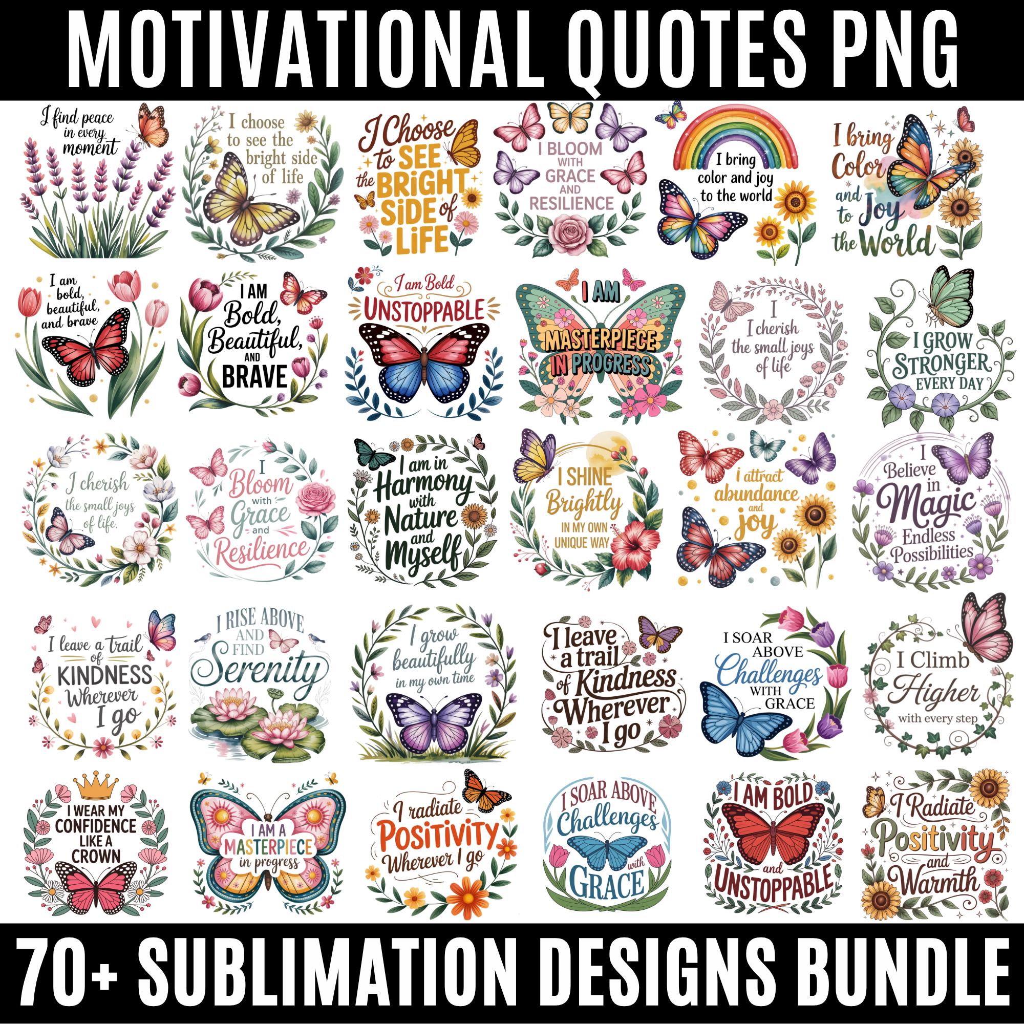 Inspirational Quotes PNG Bundle, Motivational Sayings, Positive Affirmations Clipart, Rainbow Quote PNG for T-Shirt, Mug, Sticker
