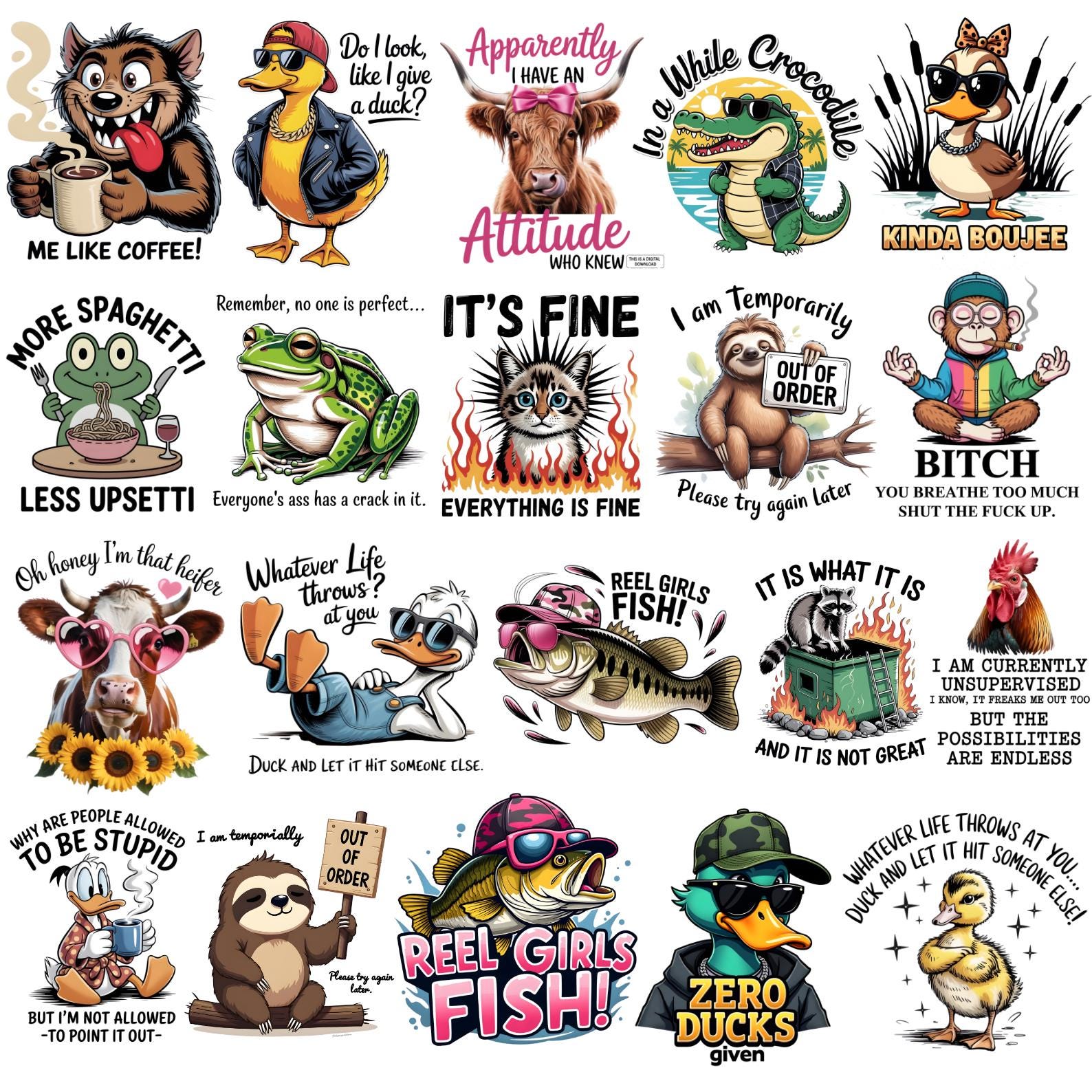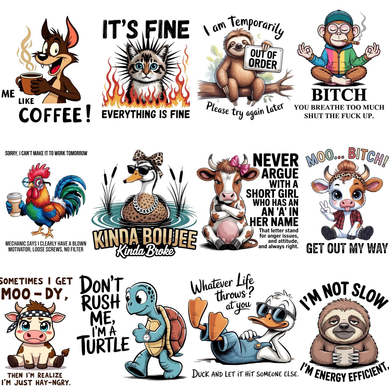 30+ Sarcastic PNG Bundle, Funny Animal Quotes PNG, Humor T Shirt Design, Sarcasm Quotes PNG, Funny Raccoon Saying, Trendy Sublimation Design