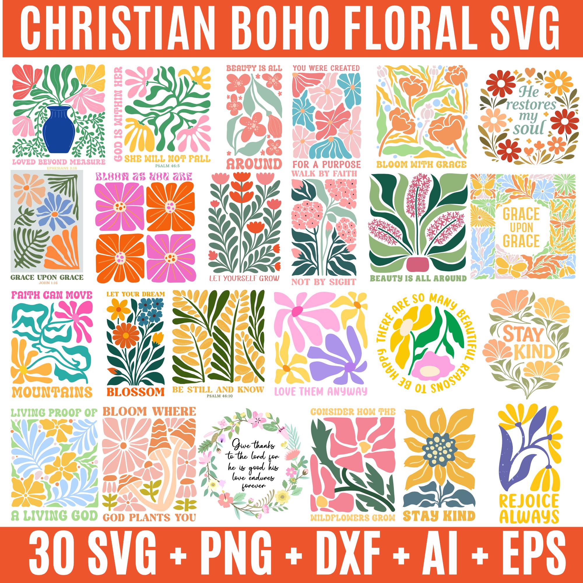 Christian SVG PNG Bundle, Boho Floral Bible Verse, Retro Faith Christian Design, Religious SVG, Christian Floral Quotes, Faith Shirt Design