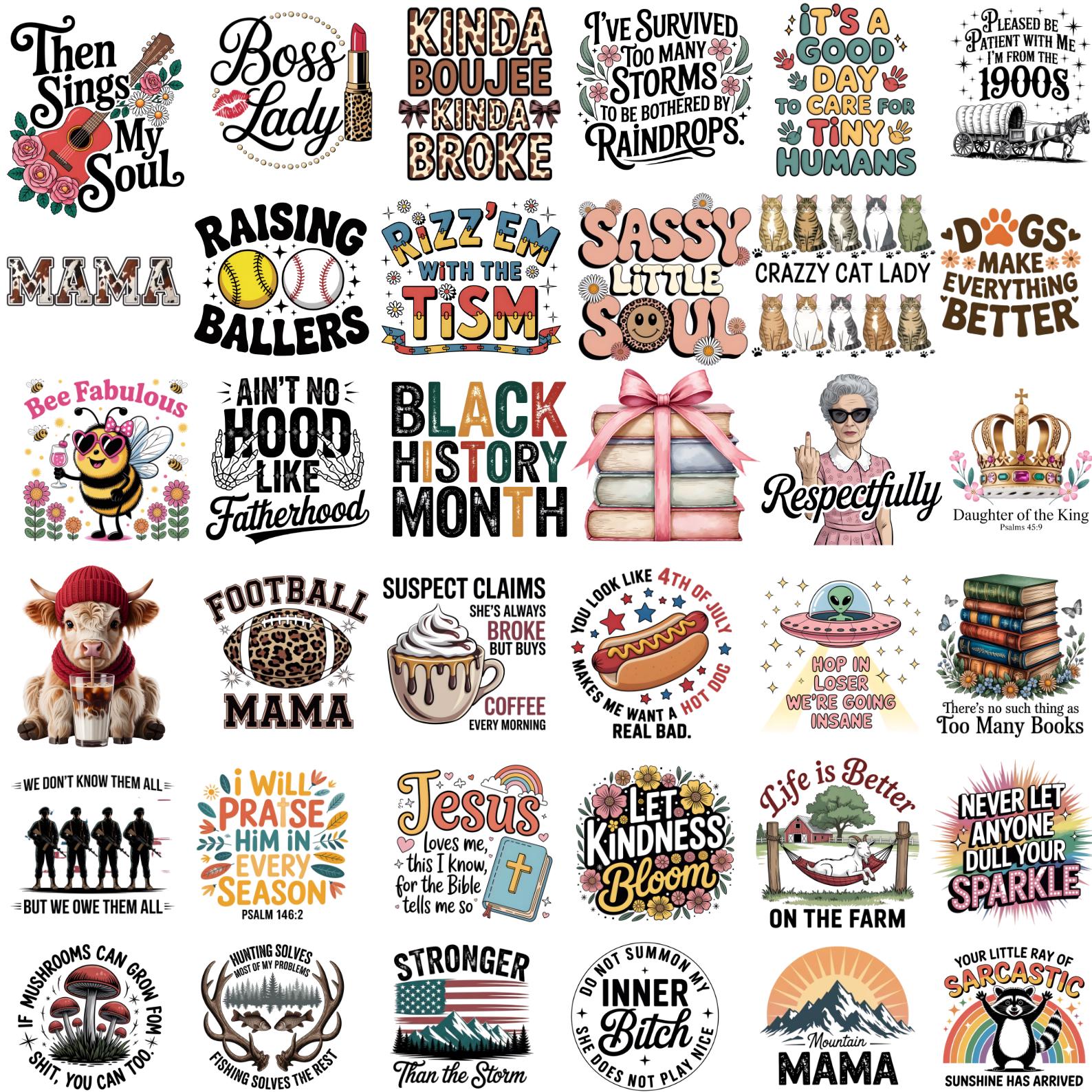 30+ Funny Sarcastic Quotes, Mom Life Christian Faith, Animal Humor, Patriotic USA, Trendy Sublimation, T Shirt PNG, Digital Download