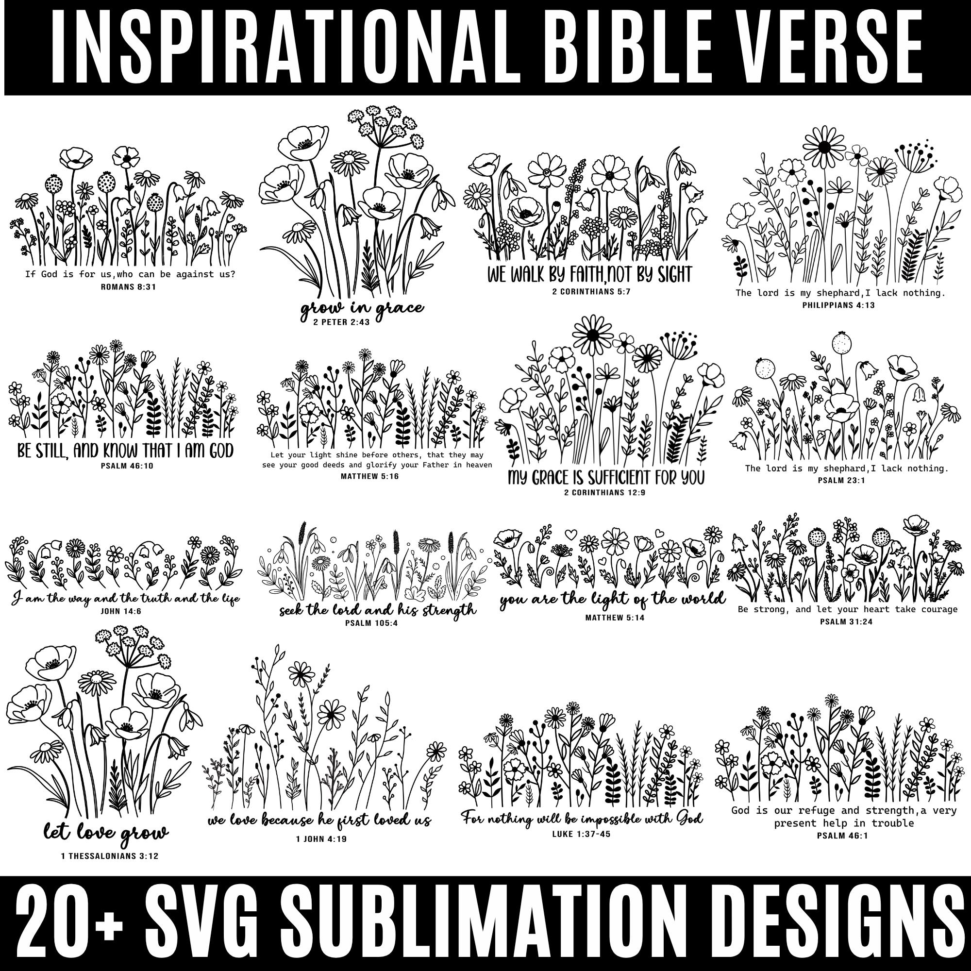 20+Inspirational Bible Verse SVG Bundle, Christian SVG PNG, Wildflower Scripture Designs, Floral Faith Quotes, She Is Strong Christian Shirt
